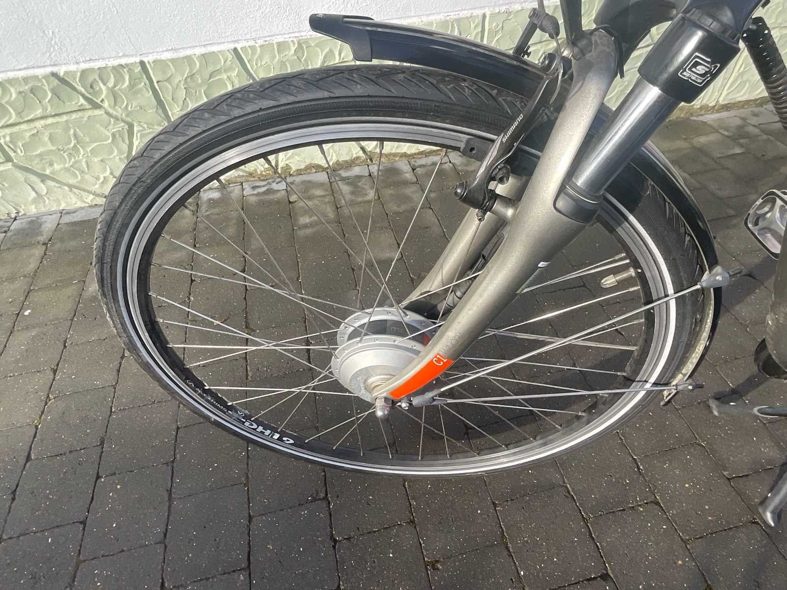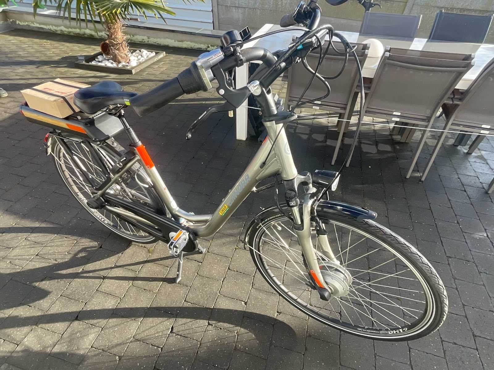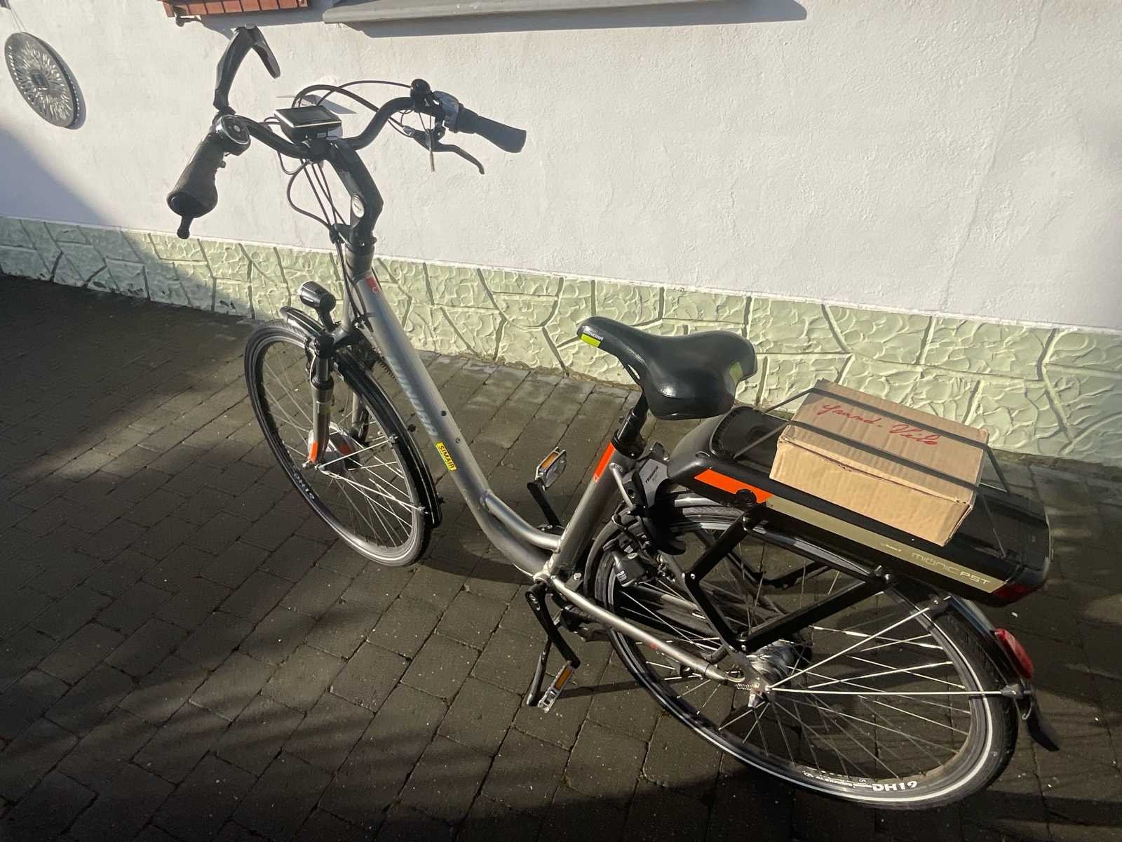 Winora C1 stadselektrische fiets met laag aluminium frame. Kilometerteller geeft 237 km aan Uitgerust met: Elektromotor geïntegreerd in de voornaaf 36V accu gemonteerd op achterdrager Winora LCD-scherm Trelock frame slot SR Suntour veringsvork V-remmen Voor- en achterverlichting Standaard Achterdrager Geleverd met TranzX 36V oplader en gebruikershandleiding. No Merk: Winora Model: Winora C1 Product type: Stadselektrische Fiets Frame type: Ganzennekframe Afgelezen kilometerstand: 237km Motorpositie: Voornaaf Oplader getest: Ja Accu getest: Ja Remsysteem: V-remmen Versnellingen: 7 Kleur: Grijs Materiaal: ALu