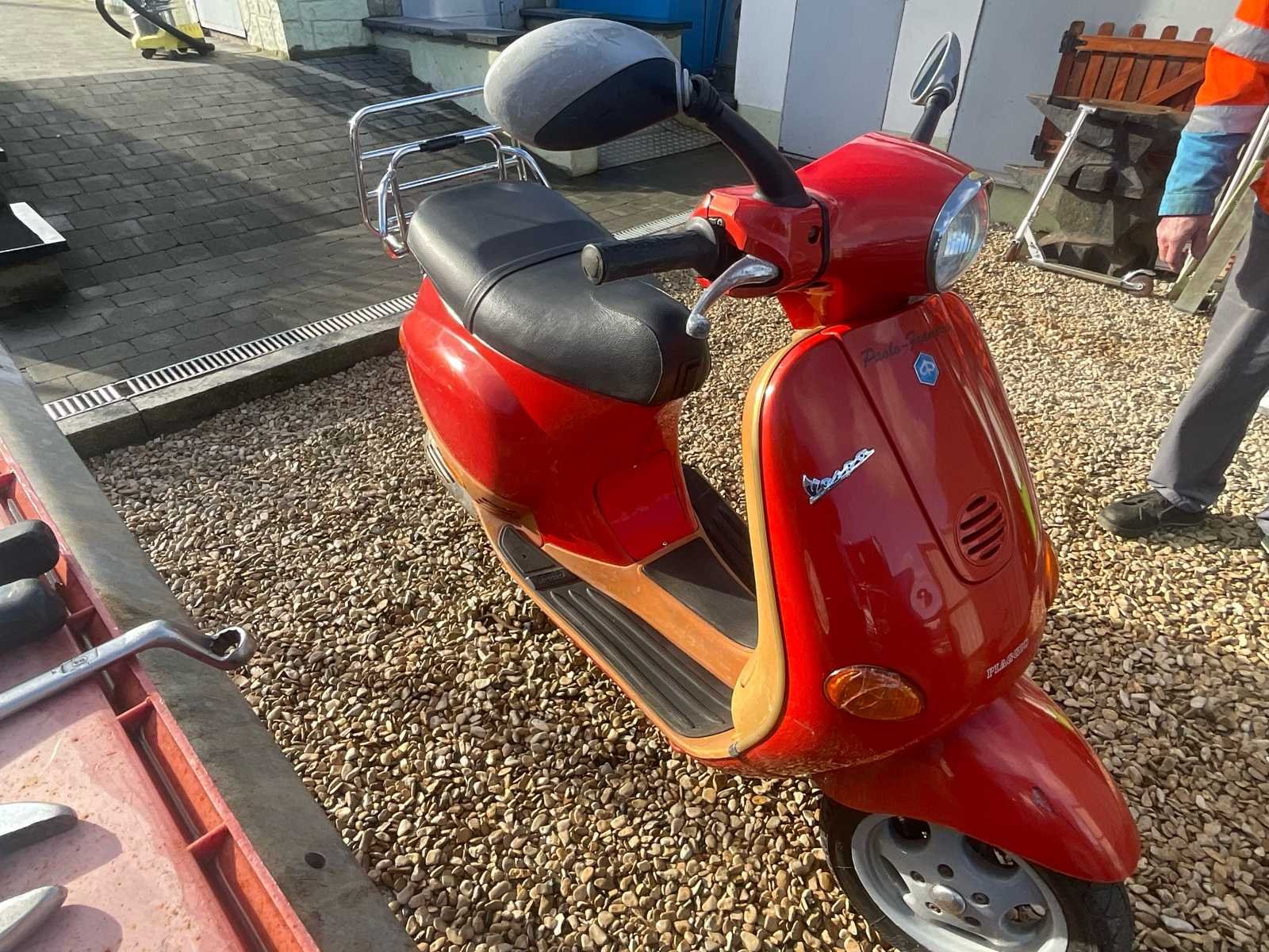 PIAGGIO VESPA ET2 – 50cc 2T – 4,274 km – Conformiteitscertificaat Merk: Piaggio Model: Vespa ET2 Type: Klasse B brommer Brandstof: Benzine (tweetaktmotor met aparte olietank – automatische menging) Kilometerstand: 4,274 km Chassisnummer: ZAPC1600000038590 Documenten: PIAGGIO Benelux certificaat van conformiteit aanwezig Algemene beschrijving Vespa ET2 50cc tweetakt scooter, een model dat gewild is vanwege zijn responsievere motor dan de 4-taktversies. Belgisch voertuig met conformiteitscertificaat. Volledige carrosserie. Aanwezigheid van een chromen achterdrager. Originele kilometerteller geeft 4,274 km aan. Esthetische gebruiksvoorwaarde met: Normale tekenen van slijtage Oppervlakkige krassen Aarde Lichte oxidatie op sommige onderdelen (vooral uitlaat) Werken/onderdelen vervangen De volgende onderdelen zijn vervangen: Piston en cilinder Ontstekingsspoel Carburateur Gasklepkabel Voorste binnenband Motorolieverversing uitgevoerd No Merk: Piaggio Model: Vespa ET2 Type: Scooter ancêtre Handelsbenaming: Piaggiao Vespa Chassisnummer: ZAPC1600000038590 Transmissie: Handboek Brandstof: 2-takt benzine Kleur: Rood Afgelezen kilometerstand: 4300km