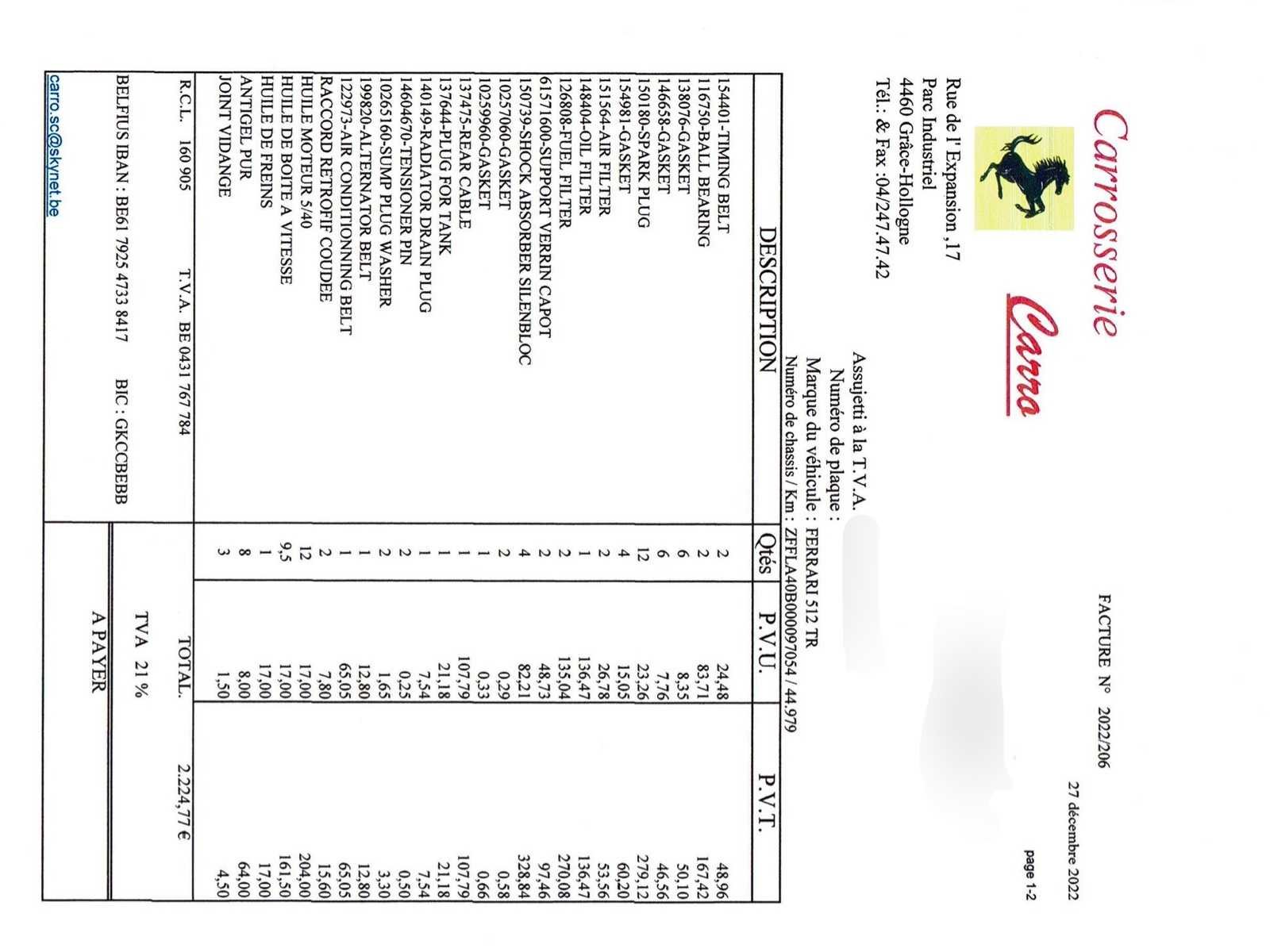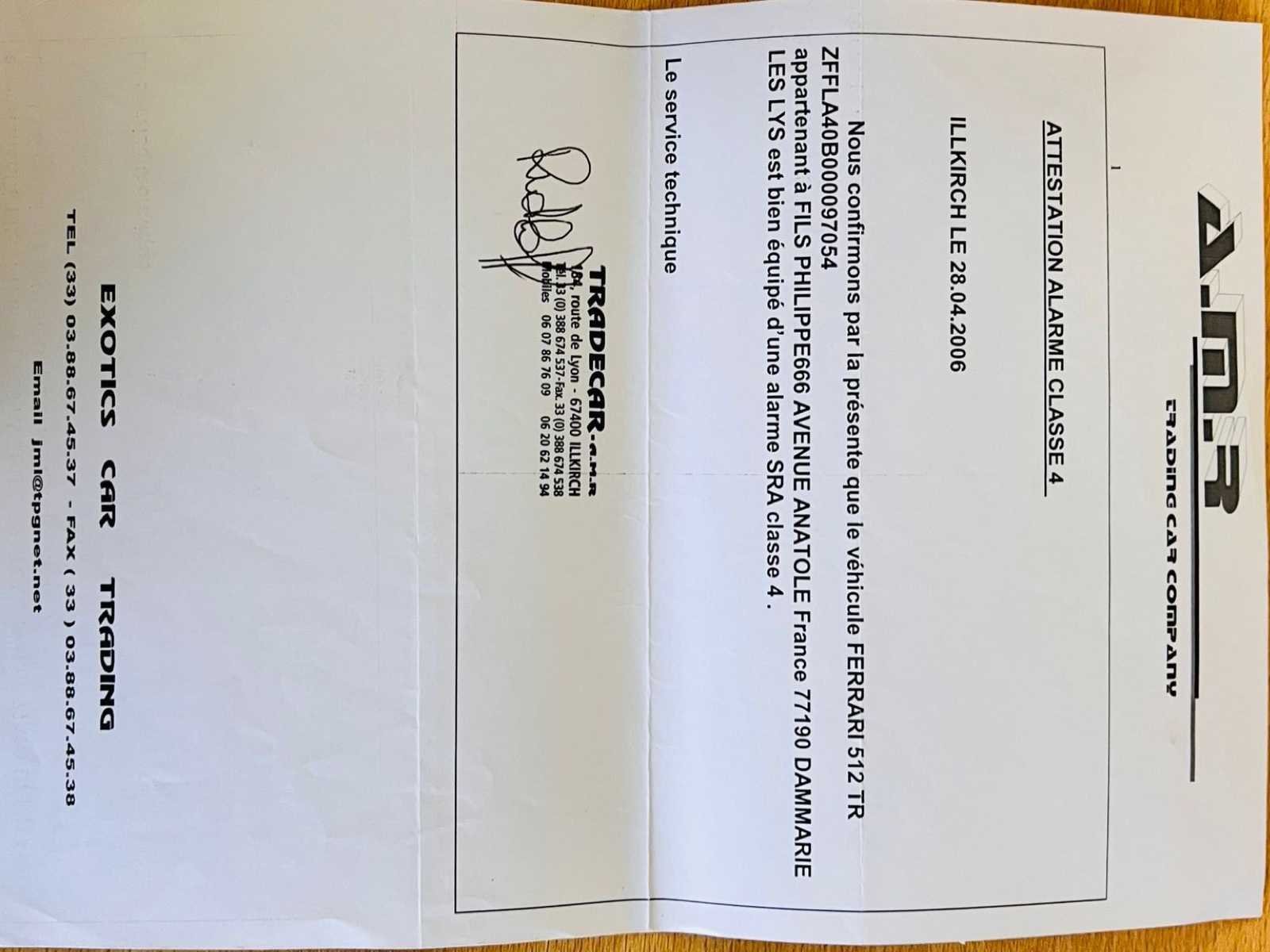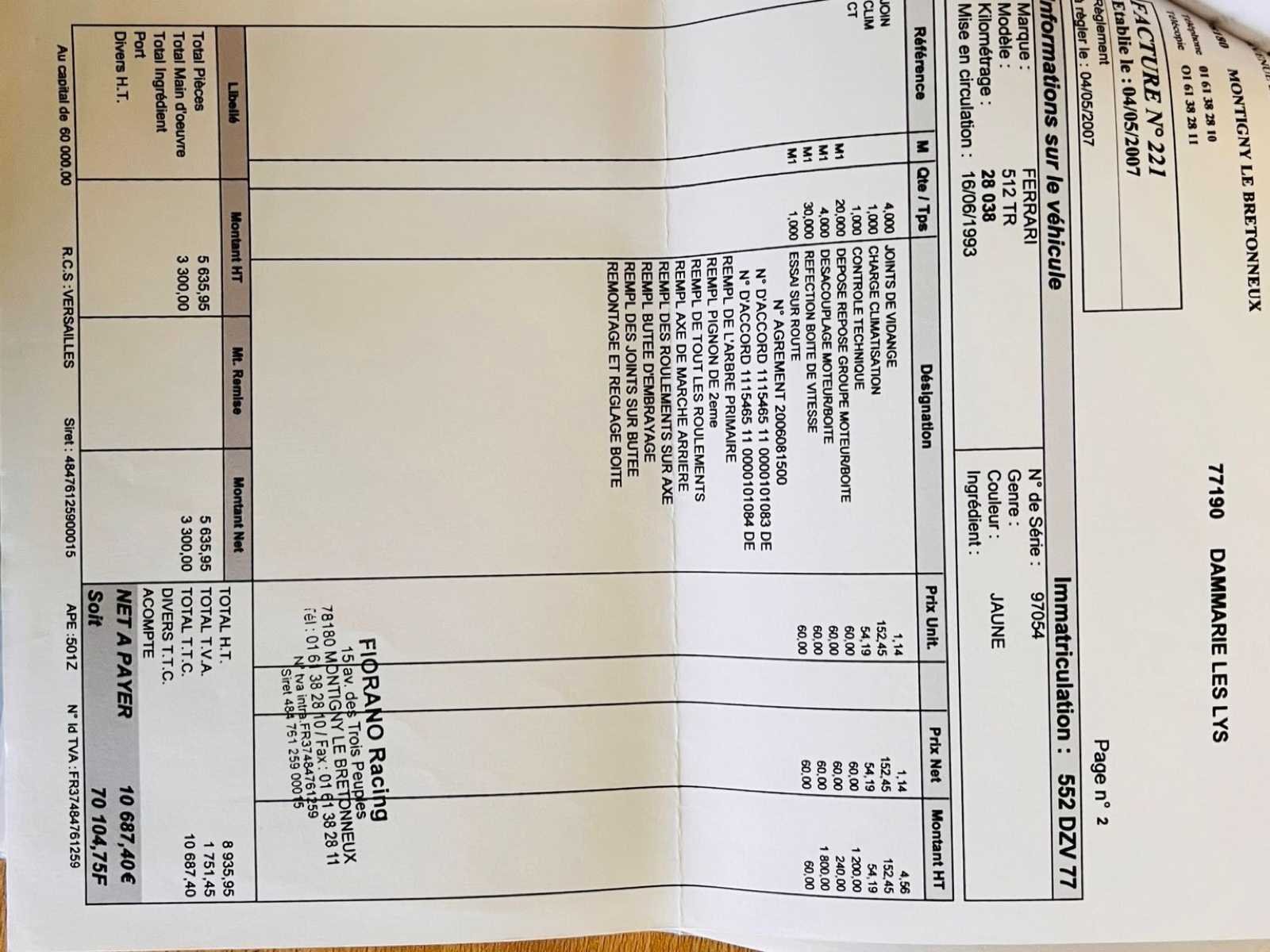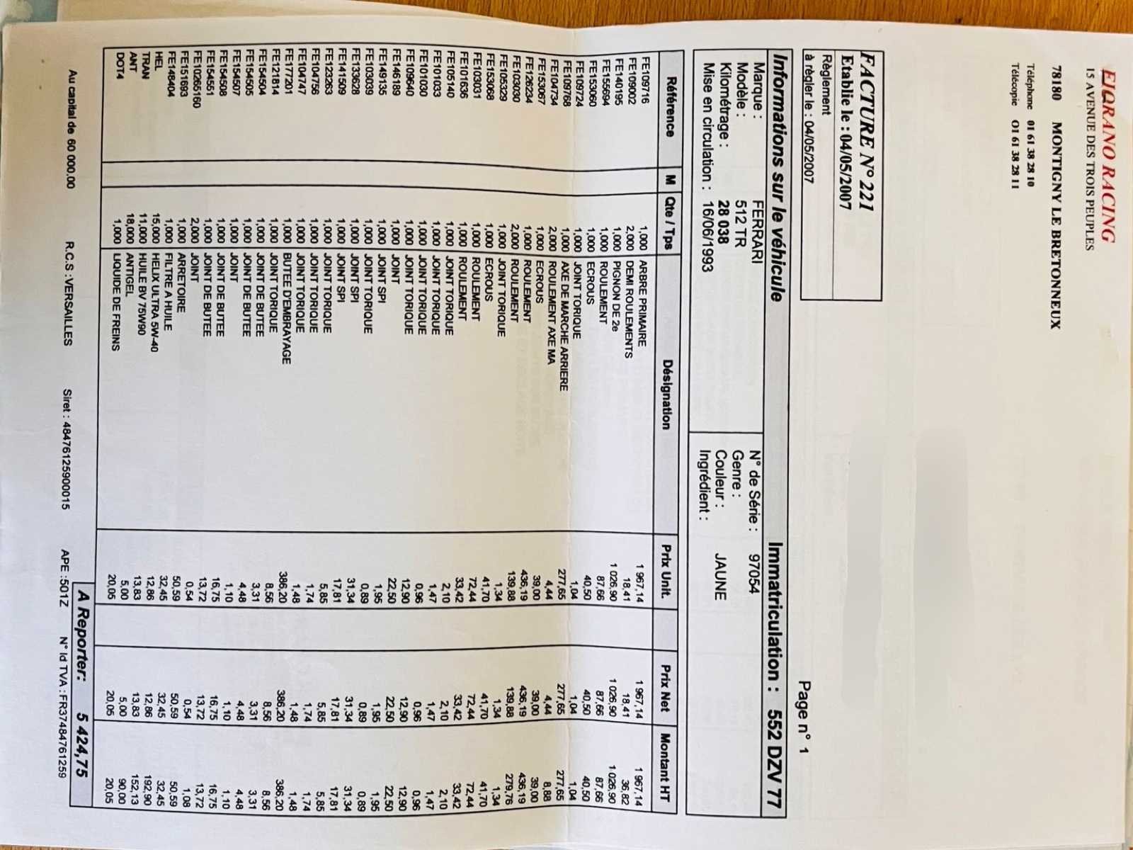 Het voertuig verkeert in onberispelijke staat: – Duidelijke geschiedenis – Volledig onderhoudslogboek met ondersteunende facturen – Zeer zeldzame Modena Yellow tint – Up-to-date onderhoud, distributieriem uitgevoerd – Vier nieuwe banden - kleine lichaamschip zichtbaar op foto – Geen kosten te verwachten No Merk: Ferrari Type: 512 TR Bouwjaar: 1993 Afgelezen kilometerstand: 45046km Vermogen (kW): 315kW Brandstof: Benzine Chassisnummer: ZFFLA40B000097054 Datum eerste toelating: 16/06/1993 Vermogen (pk): 428hp Aantal zitplaatsen: 2 Kleur: Geel Transmissie: Handboek Stuurwiel: Links Aantal deuren: 2 Aantal sleutels: 2 Aantal cilinders: 12 Carrosserie: Coupé Nationaliteit documenten: België Onderhoudshistorie: Oké startinformatie : Oké Vavato voert geen technische keuring uit.: waar Leder bekleed: true Inschrijvingsbewijs - deel 1 : Oké Inschrijvingsbewijs - deel 2: Oké
