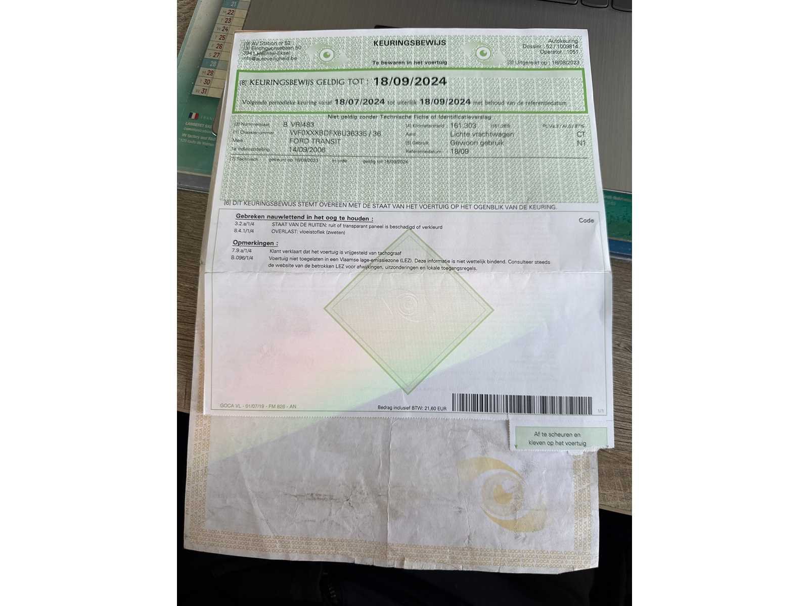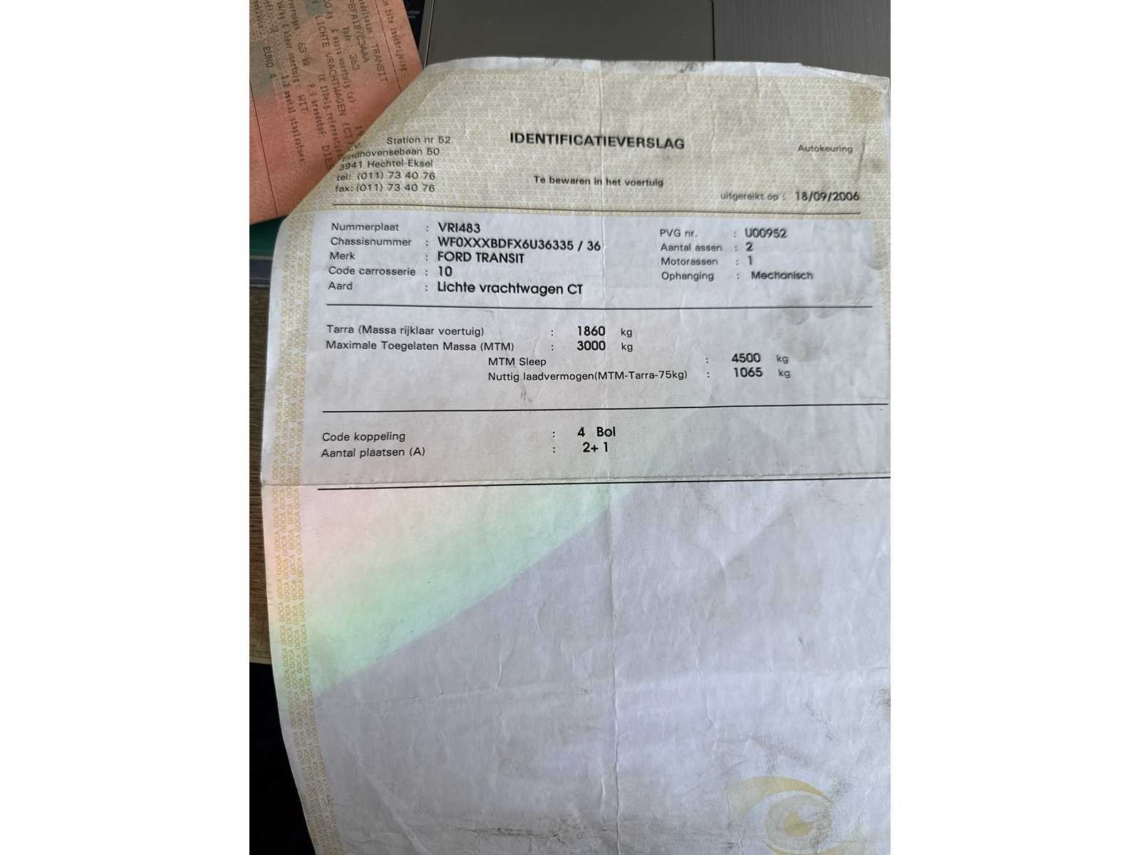 COMPLEET AANWEZIG WEL WAT ROEST PAPIEREN OK RIJD GOED Nee Merk: FORD Model: TRANSIT Bouwjaar: 2006 Afgelezen kilometerstand: 170000km Cilinderinhoud: 2200cc Vermogen (kW): 63kW Brandstof: DIESEL Chassisnummer: WF0XXXBDFX6U36335 Datum eerste toelating: 14-09-2006 Kleur: WIT Transmissie: MANUEEL Emissieklasse: 4 Aantal deuren: 3 Aantal sleutels: 1 Nationaliteit documenten: BELGIE Gelijkvormigheidsattest aanwezig: true Carpass: true Start en rijdt: JA Andere boorddocumenten: COMPLEET startinformatie : JA Inschrijvingsbewijs - deel 1 : AANWEZIG Inschrijvingsbewijs - deel 2: AANWEZIG