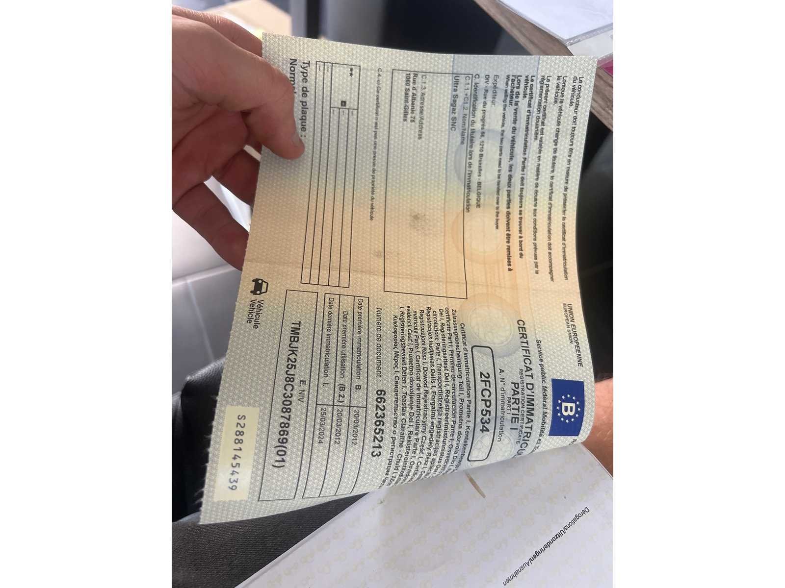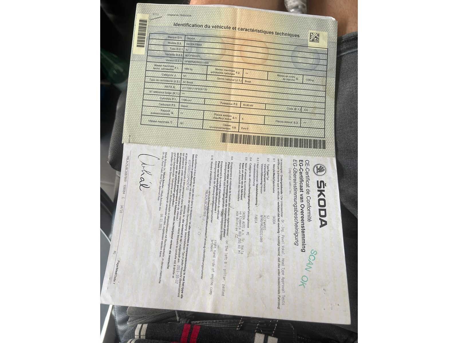 ATTEST VERLIES POLITIE DEEL 2 INSCHRIJVINGSBEWIJS COC AANWEZIG DEEL 1 AANWEZIG RIJD GOED Nee Merk: SKODA Model: FABIA Bouwjaar: 2012 Afgelezen kilometerstand: 176000km Cilinderinhoud: 1199cc Vermogen (kW): 55kW Brandstof: DIESEL Chassisnummer: TMBJK25J8C3087869 Datum eerste toelating: 20-03-2012 Kleur: GRIJS Transmissie: MANUEEL Emissieklasse: 5 Aantal sleutels: 1 Nationaliteit documenten: BELGIE Gelijkvormigheidsattest aanwezig: true Carpass: true Start en rijdt: JA Inschrijvingsbewijs - deel 1 : AANWEZIG Inschrijvingsbewijs - deel 2: ATTEST VERLIES POLITIE