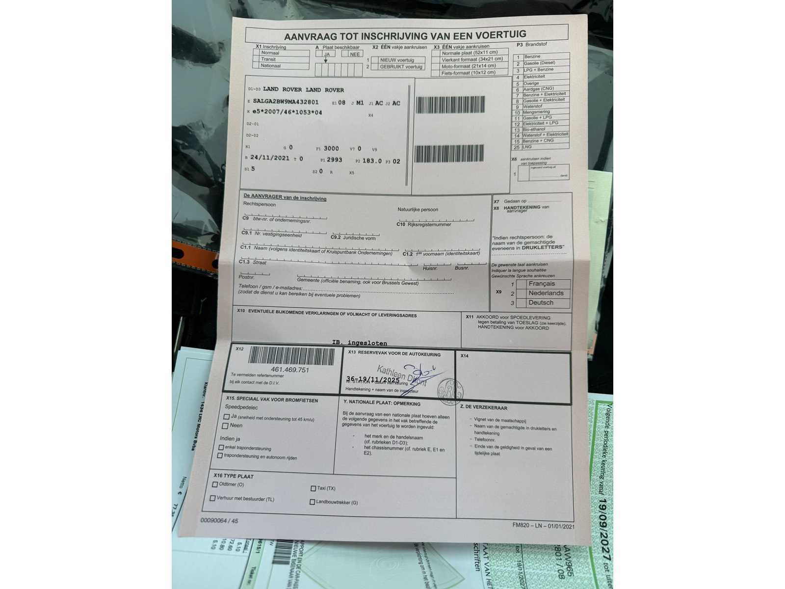 De wagen start, rijdt en draait soepel. Schakelt goed. Gekeurd voor verkoop. Net groot onderhoud gekregen - aanwezig op papier. Geen gebreken. Nee Merk: Range Rover Model: Vogue Bouwjaar: 2021 Afgelezen kilometerstand: 27744km Cilinderinhoud: 2993cc Vermogen (kW): 183kW Brandstof: diesel Chassisnummer: SALGA2BW9MA432801 Datum eerste toelating: 24/11/2021 Transmissie: Automaat Aantal sleutels: 1 Nationaliteit documenten: Belgisch Start en rijdt: Ja startinformatie : Start en rijdt Inschrijvingsbewijs - deel 1 : Aanwezig Inschrijvingsbewijs - deel 2: Aanwezig