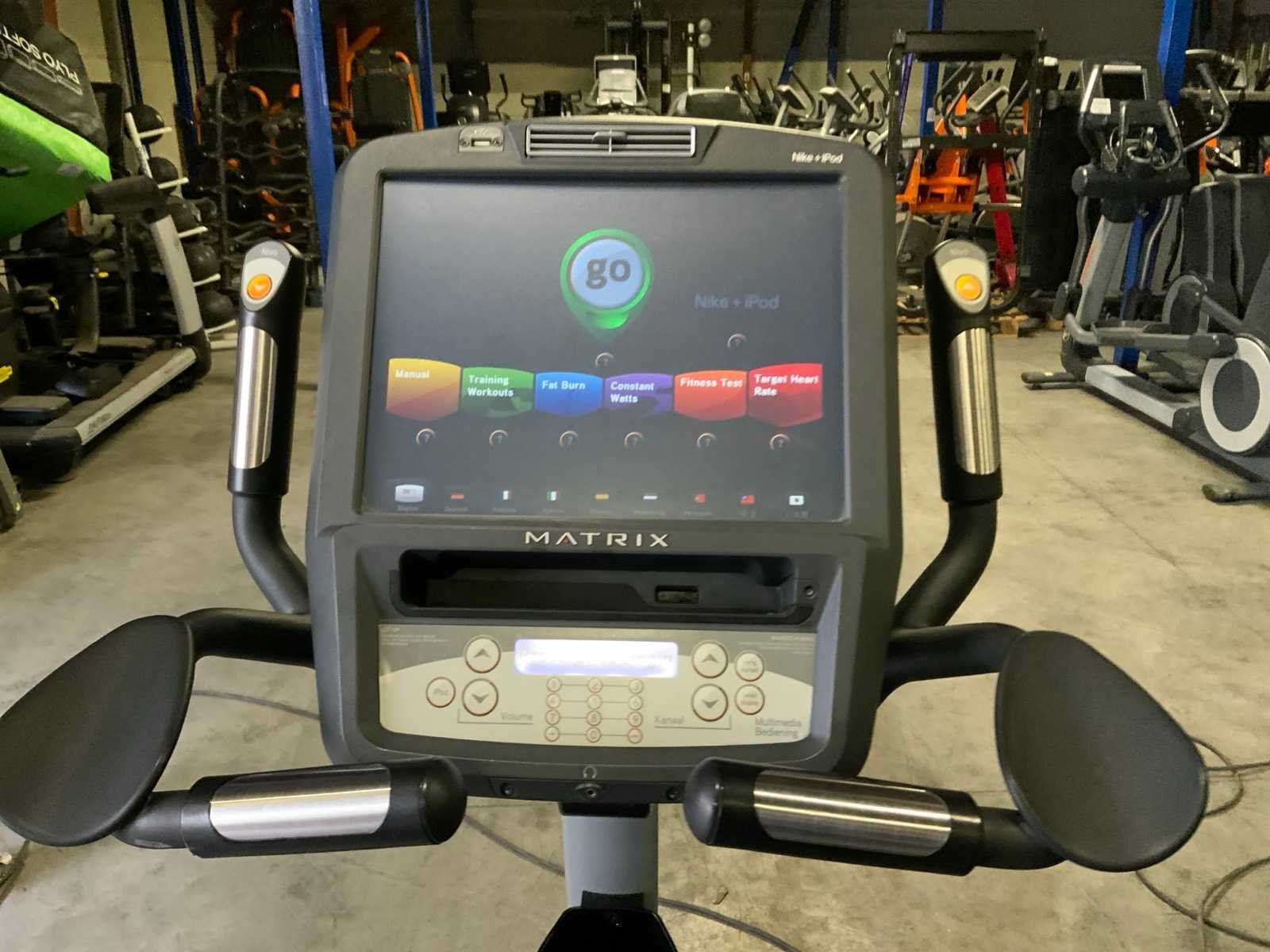 Elektromagnetische aangedreven; lcd display;hartslag;diversen trainingsprogramma’s; easy start Nee Merk: Matrix Model: U7xe Product type: uprightbike Hartslagmeter: true Trainingsprogramma: true Aansluiting: 220