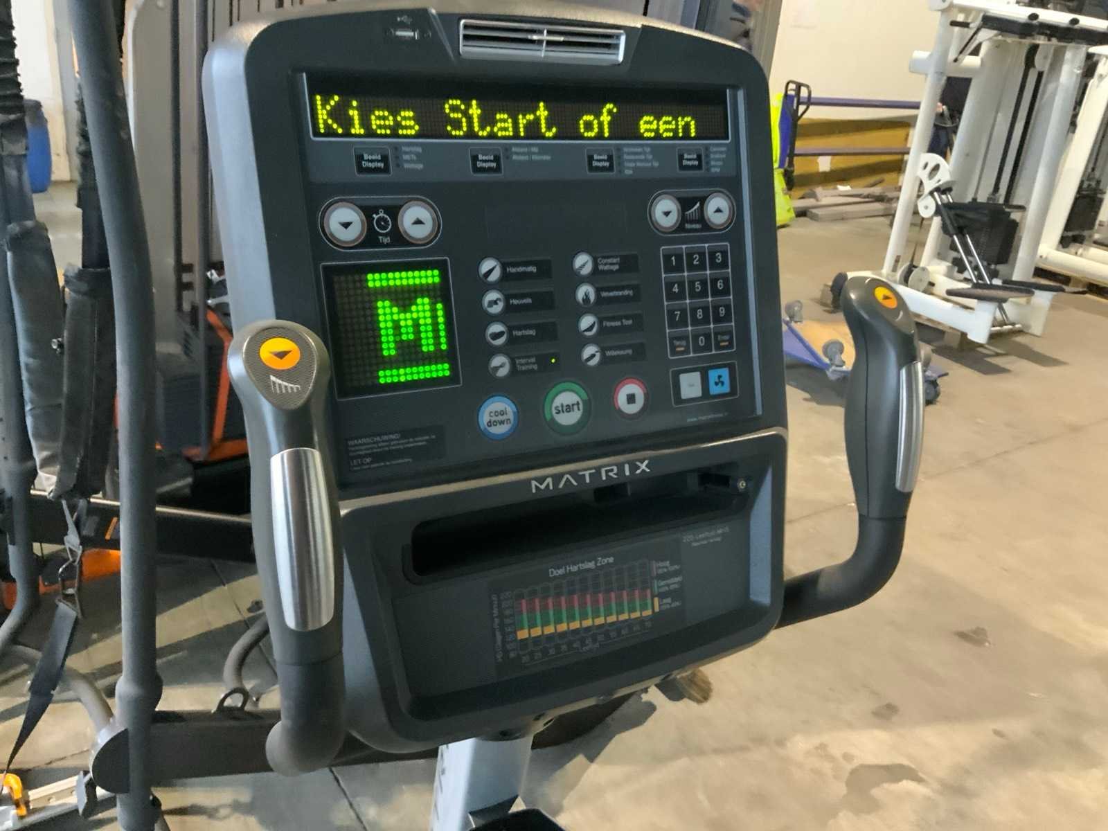 Elektromagnetische aangedreven; lcd display;hartslag;diversen trainingsprogramma’s; easy start Nee Merk: Matrix Model: H5x Product type: uprightbike Hartslagmeter: true Trainingsprogramma: true Aansluiting: 220