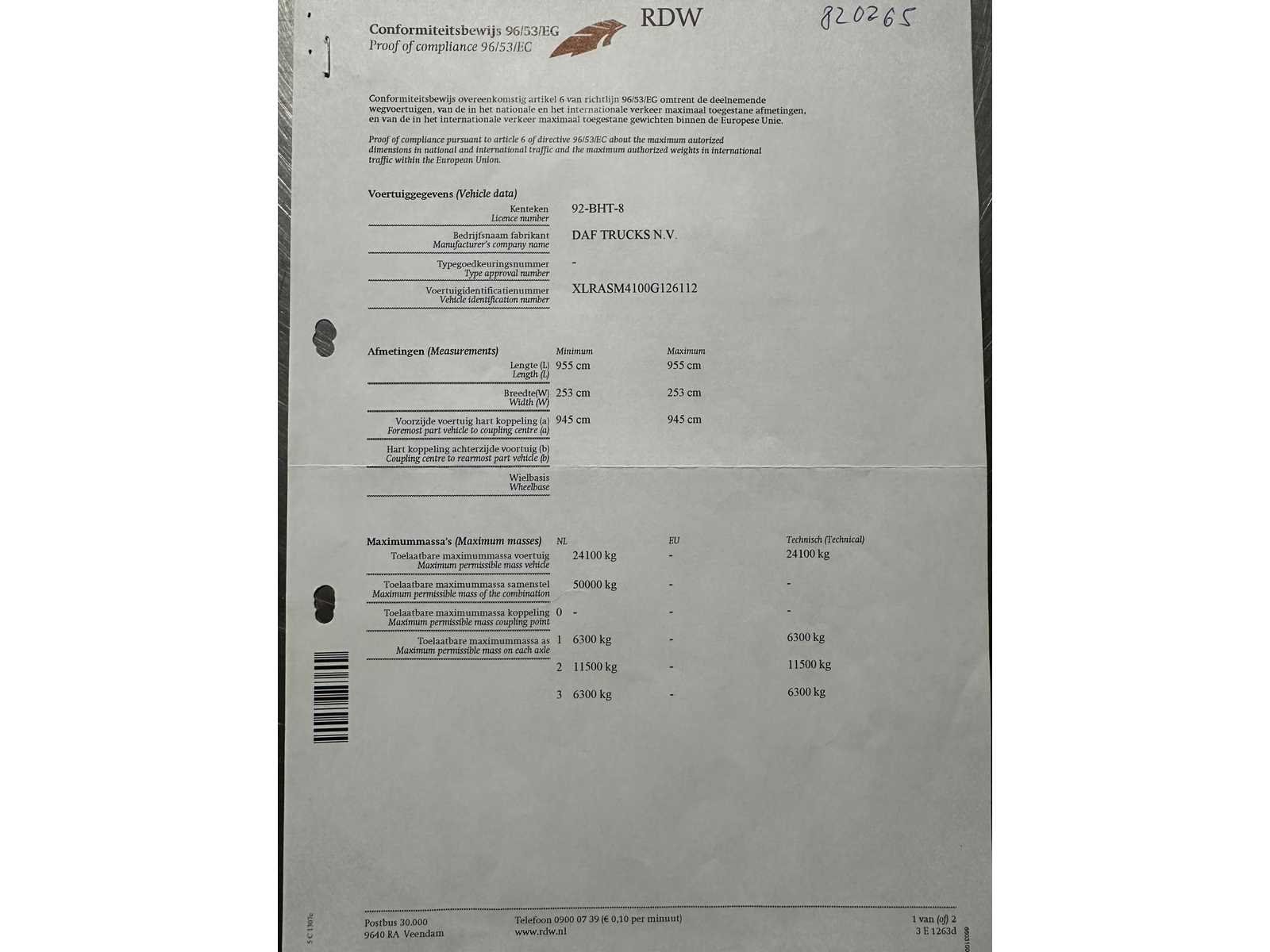 “De motor van deze vrachtwagen draait, maar de versnellingsbak is gedemonteerd wegens een storing. De versnellingsbak dient door de koper te worden gerepareerd en teruggeplaatst.” Nee Kenteken: 92-BHT-8 Merk: daf Bouwjaar: 2016 Cilinderinhoud: 10837cc APK vervaldatum: 2025-11-07 Datum eerste toelating: 2016-11-07 Datum eerste toelating (NL): 2016-11-07 Fuel Type: diesel Laadvermogen: 15035kg Emissieklasse: 6 Nationaliteit documenten: Nederland Kentekenpapieren compleet?: true Aantal zitplaatsen: 2