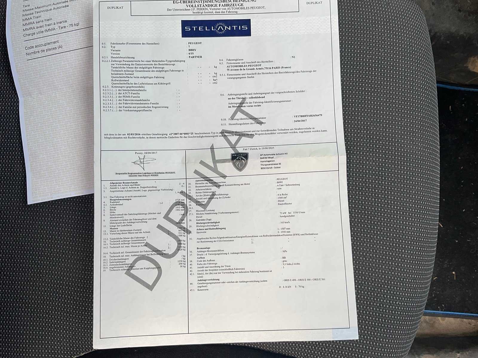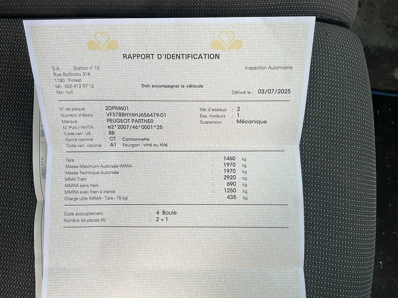 Wagen start en rijdt, lichte carrosserieschade zie fotos Nee Merk: Peugeot Type: Partner Bouwjaar: 2017 Chassisnummer: VF37BBHY6HJ656479 Afgelezen kilometerstand: 305671km Cilinderinhoud: 1560cc Vermogen (kW): 73kW Brandstof: diesel Datum eerste inschrijving: 08/06/2017 Transmissie: Manueel Aantal zitplaatsen: 3 Nationaliteit documenten: België Stuurwiel: LHD Aantal sleutels: 2 Ledig gewicht: 1460kg Laadvermogen: 1970kg Emissieklasse: Euro 6b Kentekenpapieren compleet?: true Boorddocumenten aanwezig?: true Startinformatie: Start en rijdt Maximaal trekgewicht ongeremd: 690 Maximaal trekgewicht geremd: 1250