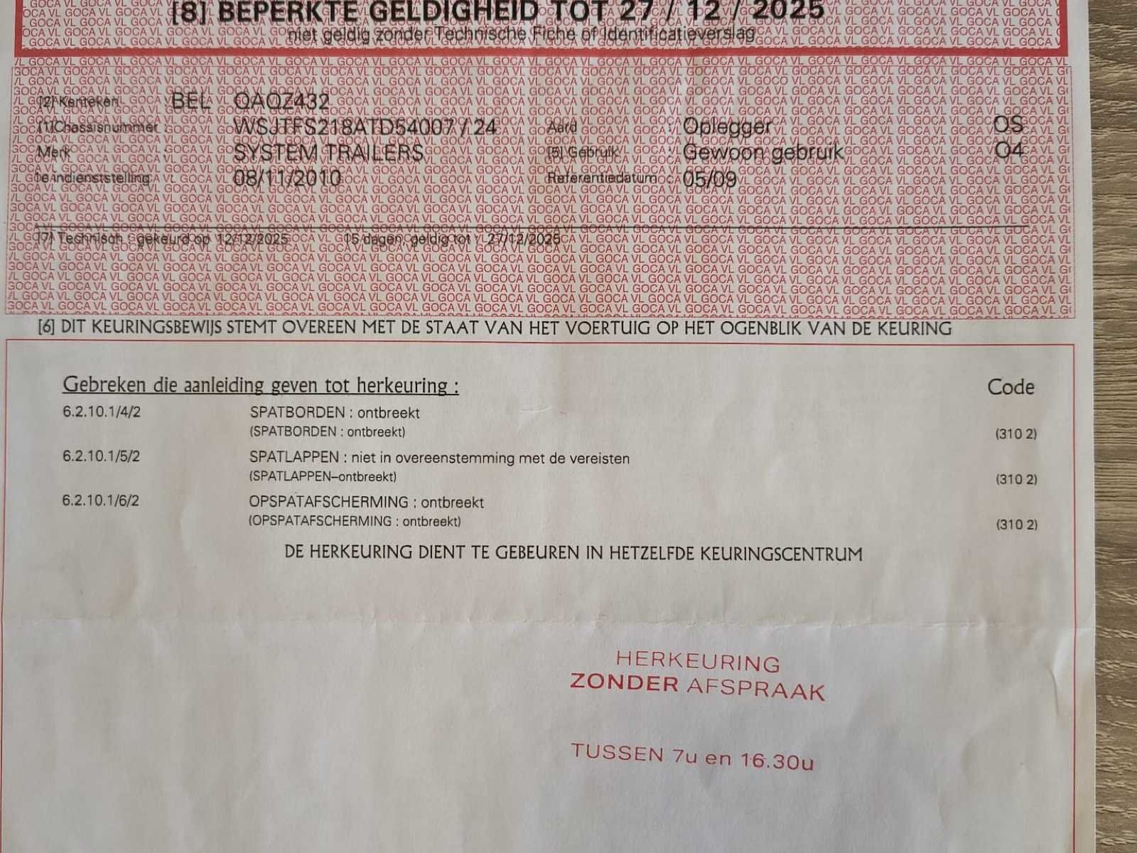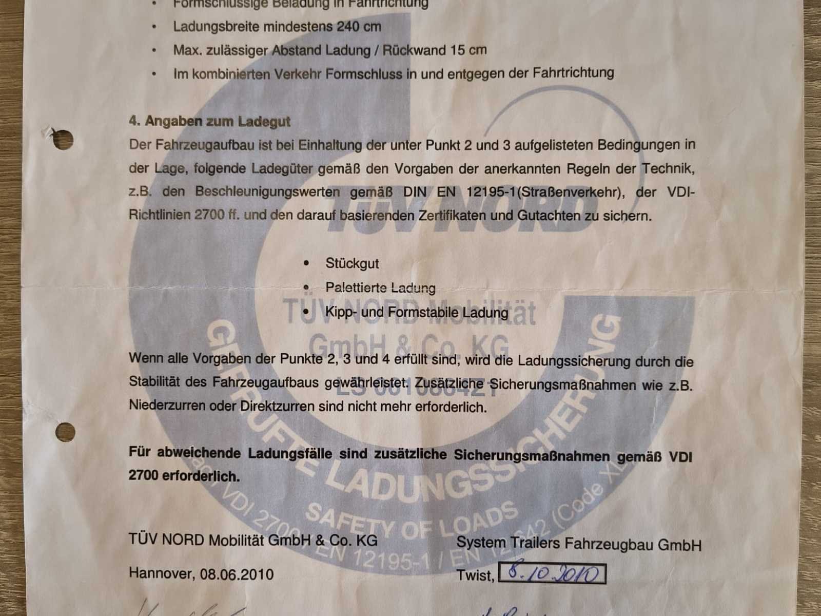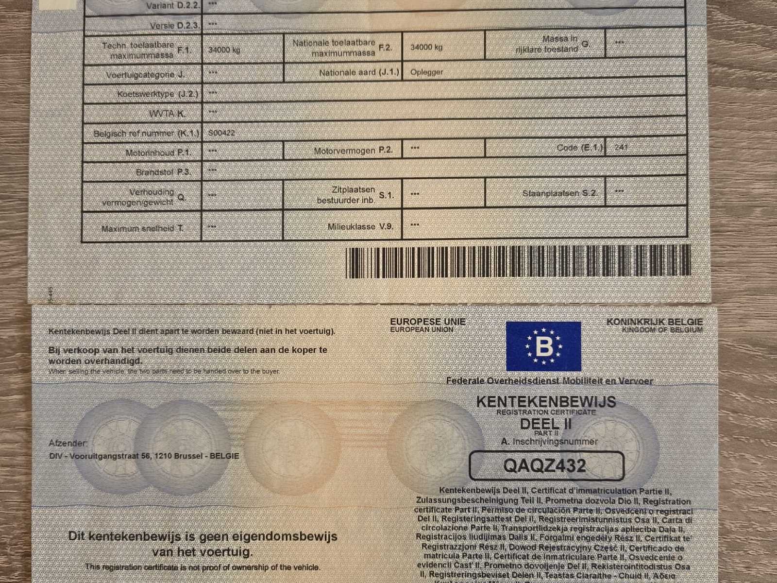 System Trailers gesloten oplegger met luchtvering en Code XL certificaat. MTM 34.000 kg, dubbelas, laadrails binnenin en laadklep aanwezig. Belgische documenten beschikbaar. Trailer vertoont gebruiks- en carrosseriesporen. Onderbouwlift werkt niet en scharnieren zitten los (zie foto's) -✅ System Trailers oplegger ✅ Gesloten boxopbouw ✅ Code XL certificaat (DIN EN 12642) ✅ Luchtvering (pneumatisch) ✅ MTM 34 ton ✅ Dubbelas uitvoering ✅ Binnenrails / sjorrails aanwezig ✅ volledige Belgische documenten aanwezig ✅ Laadklep gemonteerd ⚠️ Onderbouwlift niet werkend ⚠️ Scharnieren los — nazicht/herstel nodig No Merk: System Trailers Bouwjaar: 2010 Chassisnummer VIN: WSJTFS218ATD54007 Datum eerste toelating: 8/11/2010 Aantal assen: 2 Totale afmeting L: 13860mm