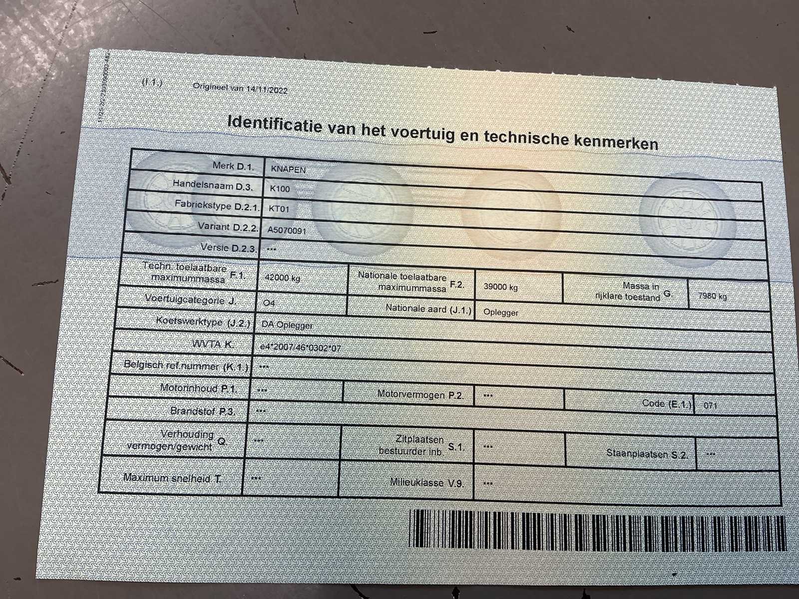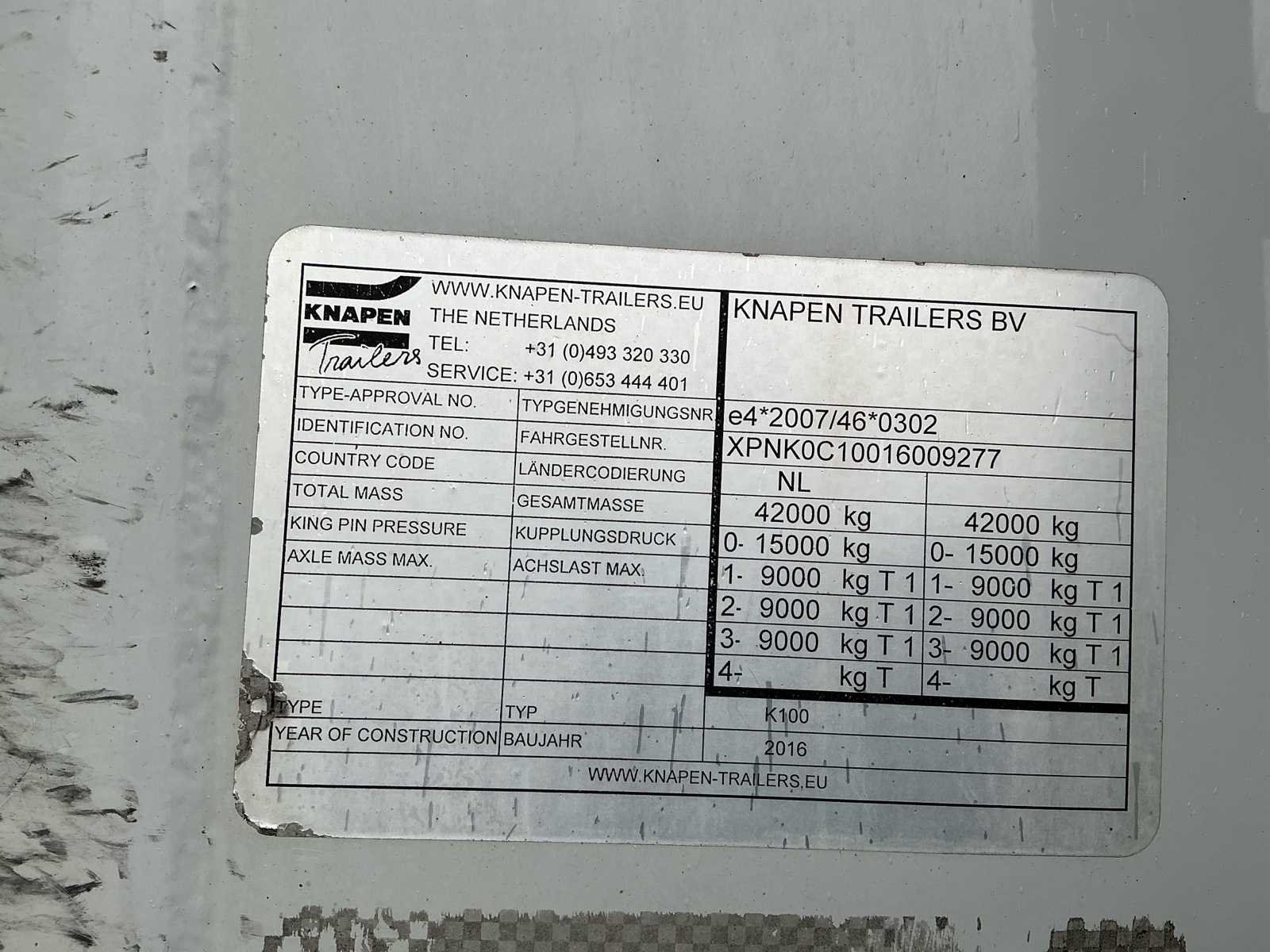 No Merk: Knapen Trailers Bouwjaar: 2016 Chassisnummer VIN: XPNK0C10016009277 Aantal assen: 3