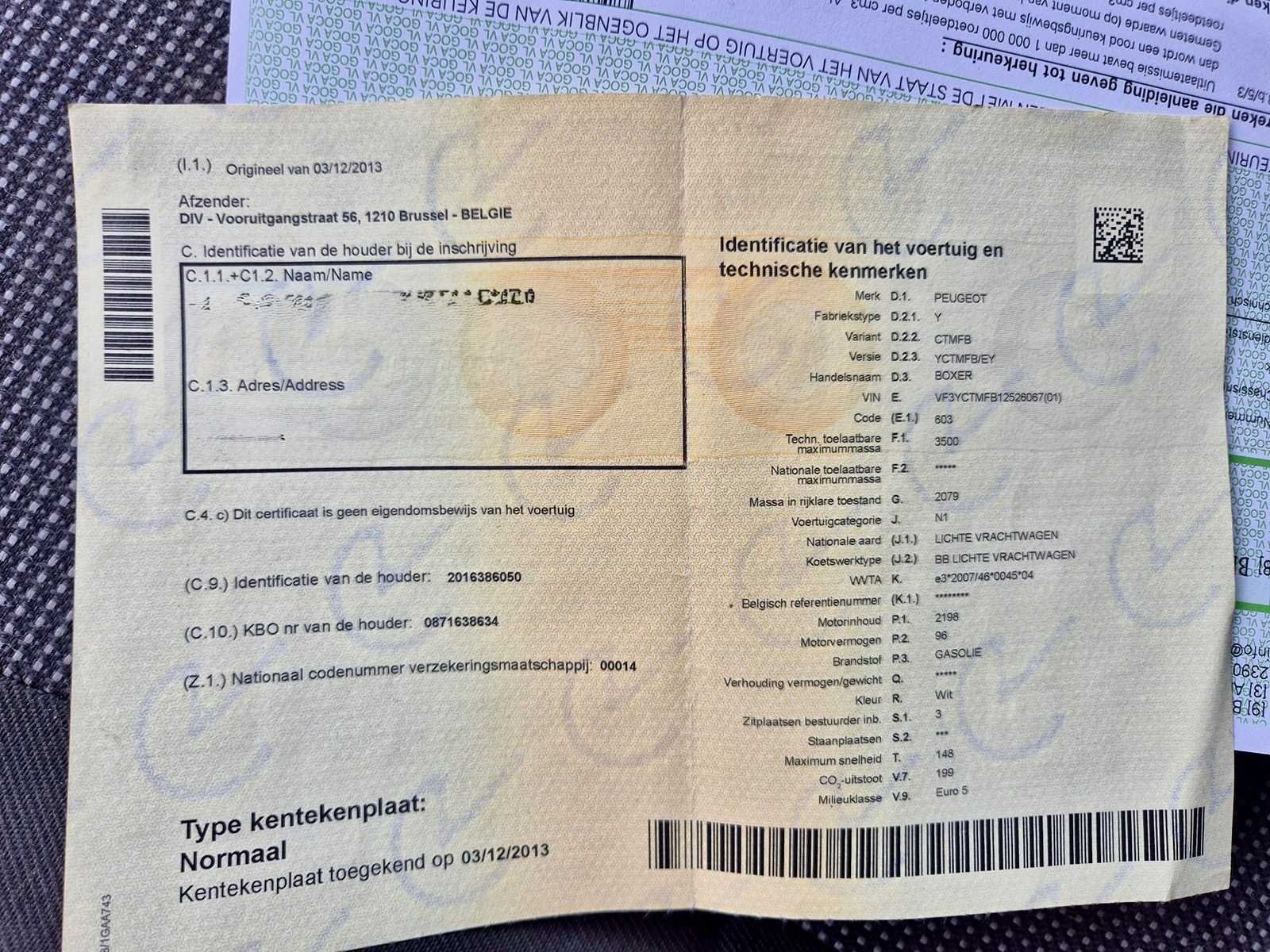 Motorprobleem. Start maar lekt olie! De aangeboden auto zal worden verkocht zonder tweedehandskeuring (van toepassing op particuliere kopers - België) en zonder enige vorm van garantie. De koper aanvaardt het voertuig in de staat waarin het zich bevindt op het moment van aankoop of van toewijzing. No Merk: Peugeot Type: Boxer Bouwjaar: 2013 Chassisnummer: VF3YCTMFB12526067 Afgelezen kilometerstand: 331539km Cilinderinhoud: 2198cc Vermogen (kW): 96kW Brandstof: Diesel Nationaliteit documenten: Belgisch