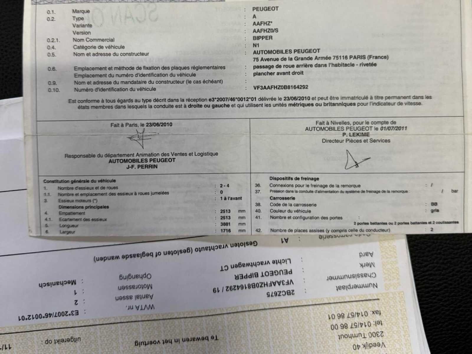 Distributieriem kapot. Opgelet, deze auto zal niet worden gekeurd voor verkoop (van toepassing op Belgische particuliere kopers). No Merk: Peugeot Type: Bipper Bouwjaar: 2011 Chassisnummer: VF3AAFHZ0B8164292 Afgelezen kilometerstand: 168199km Cilinderinhoud: 1248cc Vermogen (kW): 55kW Brandstof: Diesel Nationaliteit documenten: Belgisch Emissieklasse: Euro5 Startinformatie: Distributieriem kapot