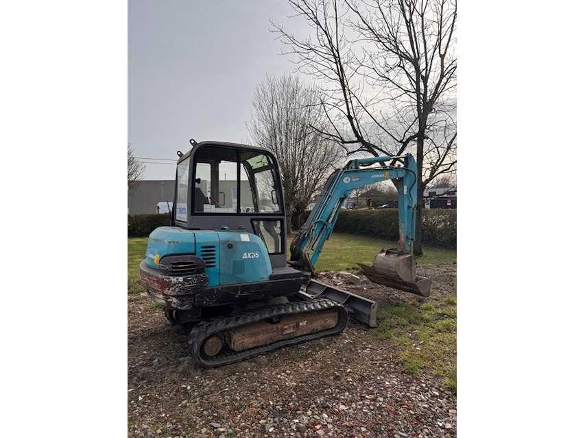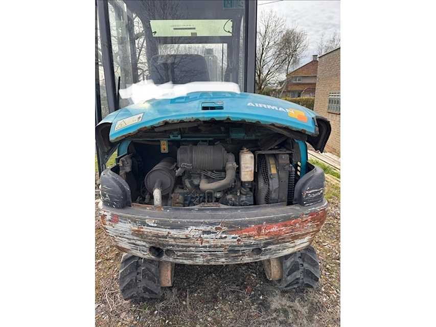 Airman AX35U-4 – bouwjaar 2007. 3-cilinder Yanmar diesel – 19,9 kW. Bedrijfsgewicht 3.200 kg. Graafdiepte 3.060 mm – werkbereik 5.220 mm. Cabine uitvoering – inclusief graafbak (0,11 m³). Huidige urenstand 1.401 uur. Nee Merk: Airman Type: AX35U-4 Bouwjaar: 2007 Serienummer: ADM011382 Merk motor: Yanmar Motorvermogen (kW): 20kW Aantal cilinders: 3 Brandstof: Dielsel Bedrijfsgewicht: 3200kg Max. werkbereik: 5220mm Max. graafdiepte: 3060mm Met graafbak: true Graafbak afm. l: 600mm Graafbak afm. b: 450mm Graafbak afm. h: 450mm Rups breedte: 300mm Cabine: true Afgelezen urenstand: 1401 Eigen gewicht: 3200kg Totale afmeting L: 4650mm Totale afmeting Breedte: 1740mm Totale afmeting Hoogte: 2460mm