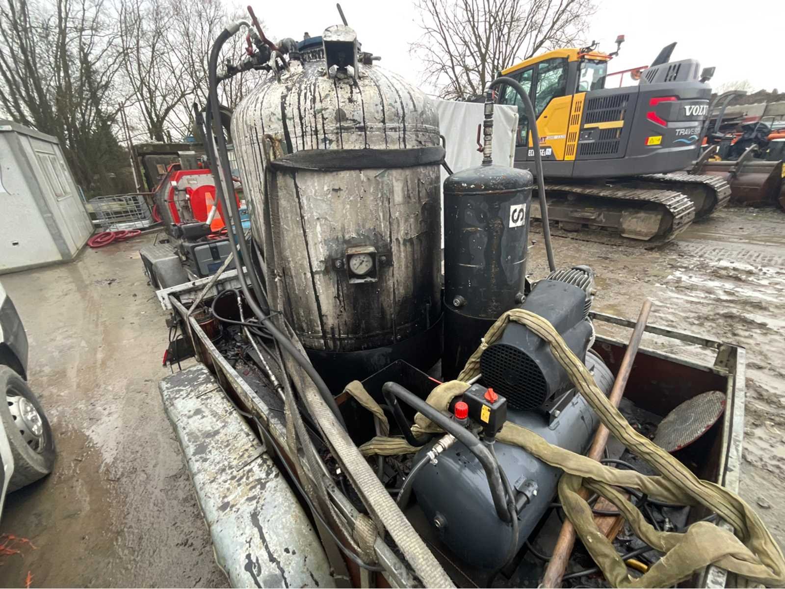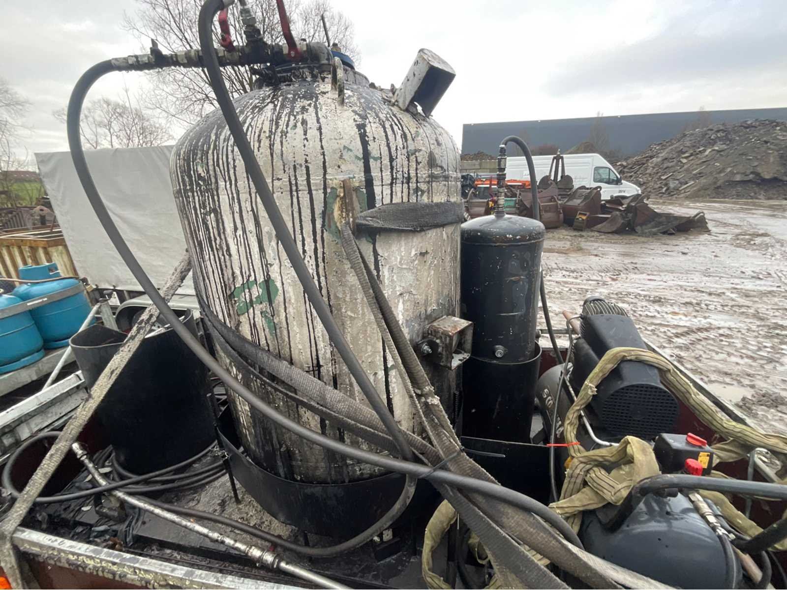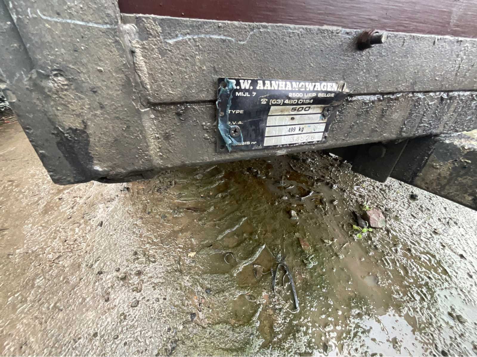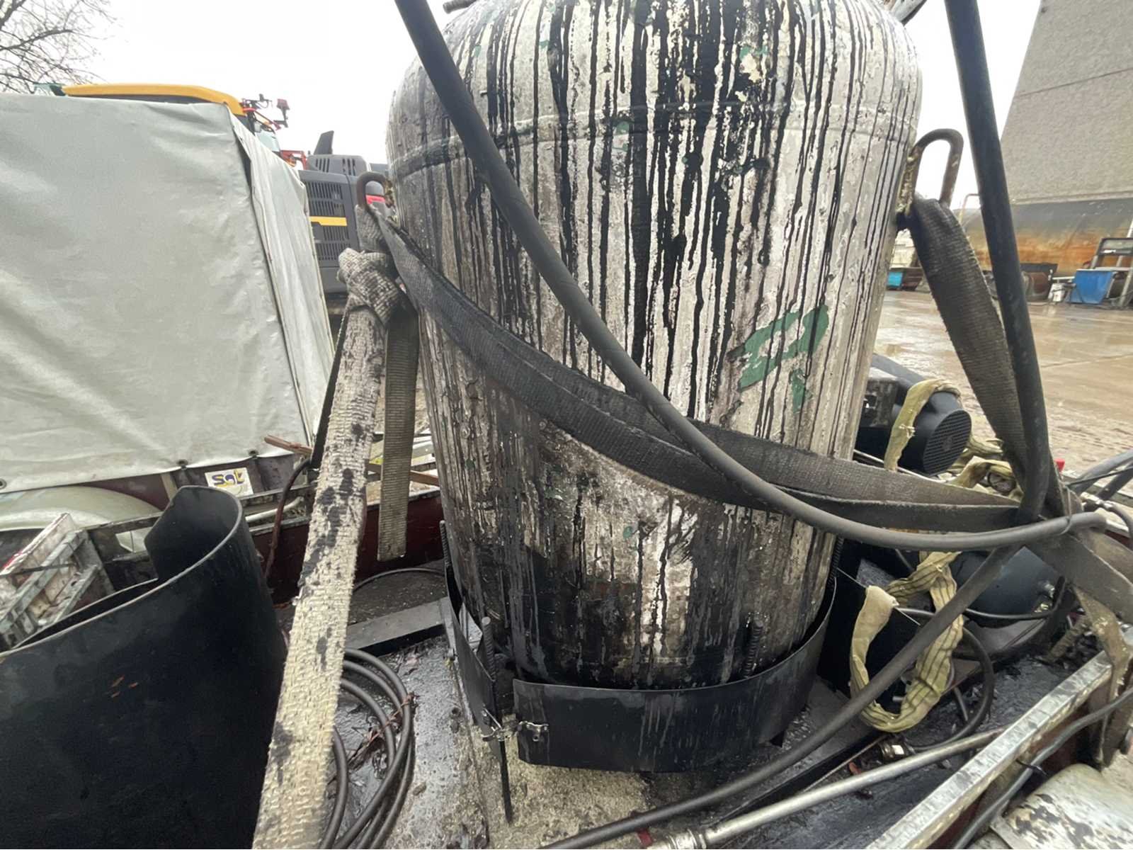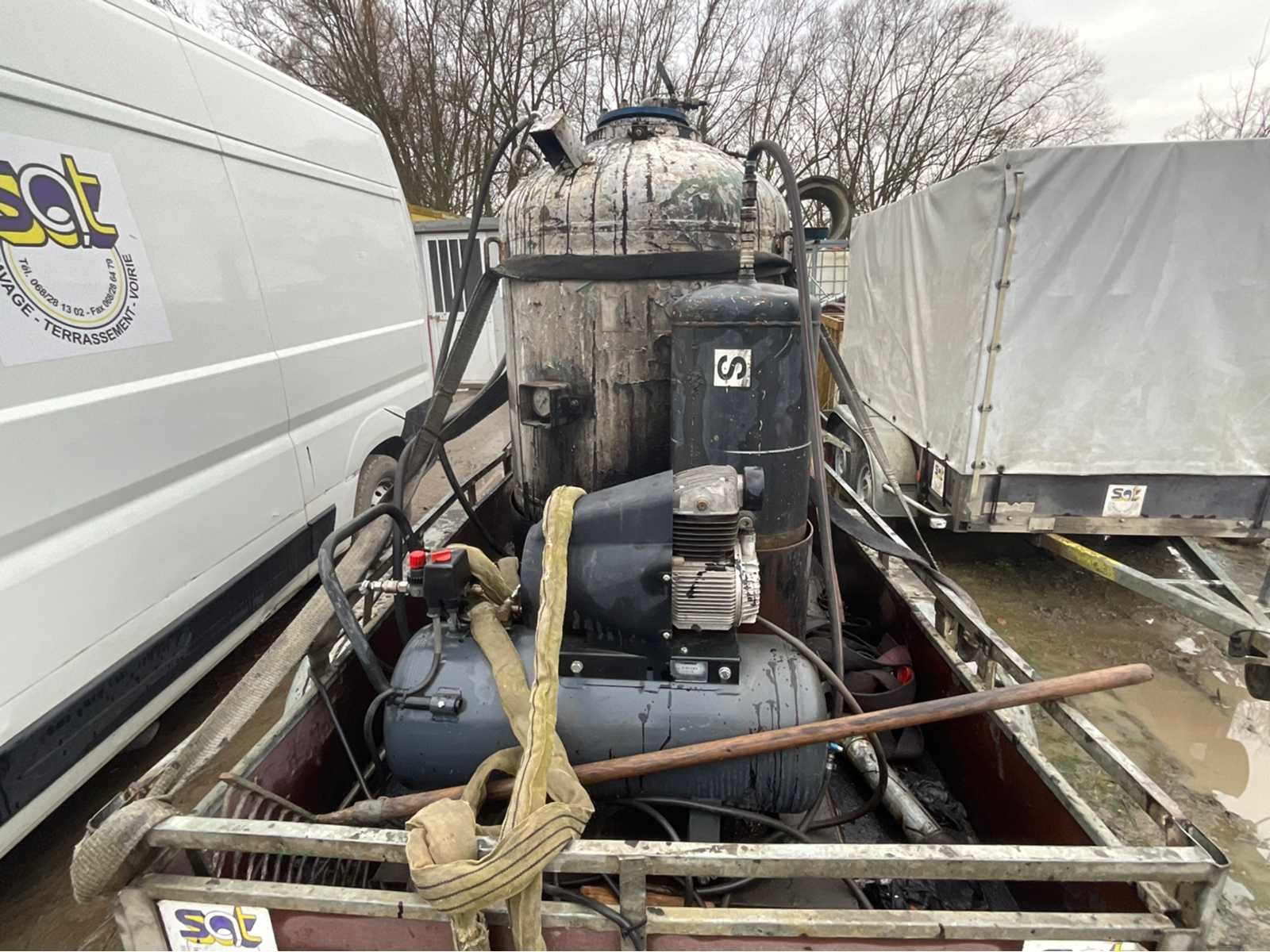 Tweeassige aanhanger-gemonteerde bitumenfoammachine Beschrijving: Tweeassige schuimstoom op een aanhanger, waaronder: Verticale stalen tank voor emulsie / bitumen Elektrische luchtcompressor Hulpluchttank Regeldrukmeter Slangen en fittingen Ondersteuningsstructuur R.W. Aanhangwagen Trailer – Type 500 – 499 kg Set bedoeld voor wegwerkzaamheden, wegreparaties of bitumineuse emulsietoepassingen. Status: Gebruikte conditie Significante sporen van bitumen / druppels Zichtbare corrosie en slijtage Ongeteste werking De installatie verkocht zoals deze is Onbevestigde naleving en drukregeling Administratieve status van aanhangwagen onbekend Notities: Schoonmaak en heringebruikstelling zijn te verwachten. Kan geschikt zijn voor renovatie, onderdelen of gebruik op de locatie. Non