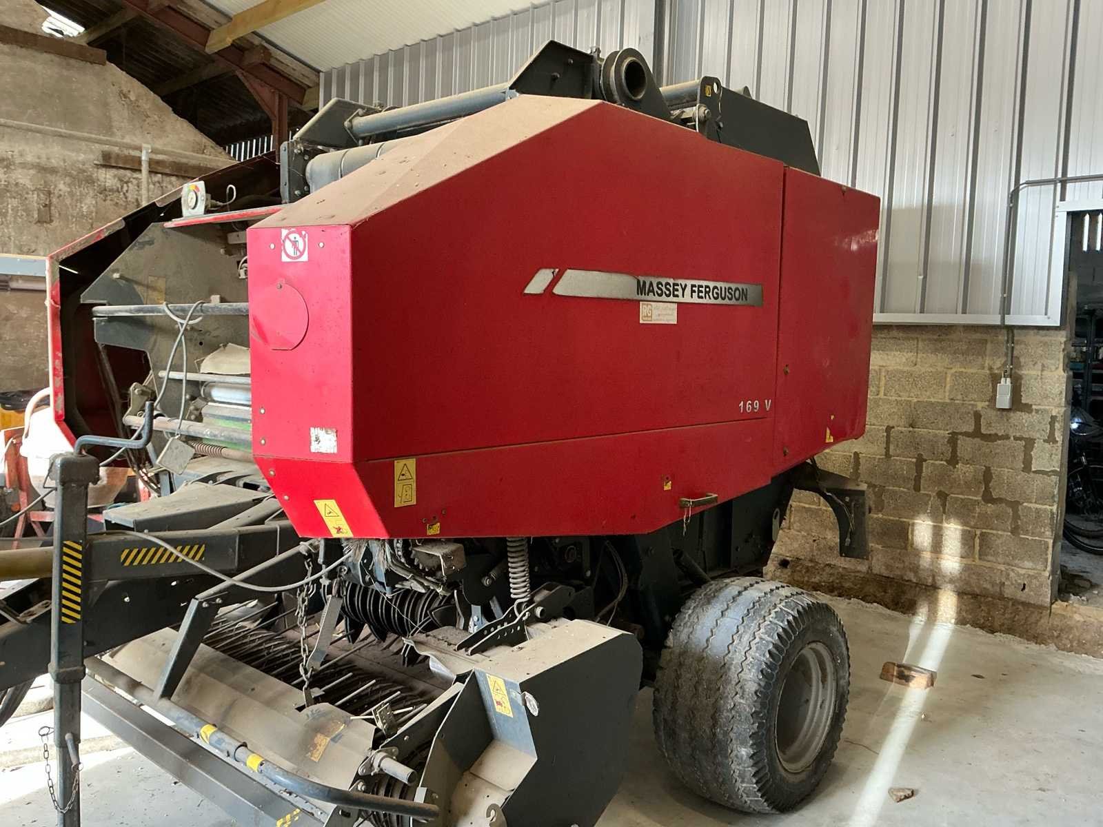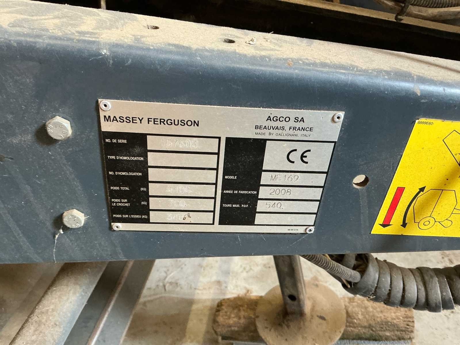 Max. aftakastoerental: 540 t/min. Eigen gewicht: ca. 4.100 kg . Massey Ferguson MF 169 rondebalenpers in goede en werkende staat. Deze pers is uitgerust met een variabele kamer en is geschikt voor het persen van ronde balen tot circa 2 meter diameter. Machine werd geproduceerd door Gallignani (Italië) voor AGCO SA (Beauvais, Frankrijk) en is voorzien van CE-markering. Degelijke en betrouwbare balenpers, ideaal voor het persen van hooi, stro en voordroog. No Merk: Massey Ferguson Type: MF 169 Bouwjaar: 2008 Serienummer: 157603 Afgelezen aantal balen: 21060 Werkbreedte pick-up: 2000mm