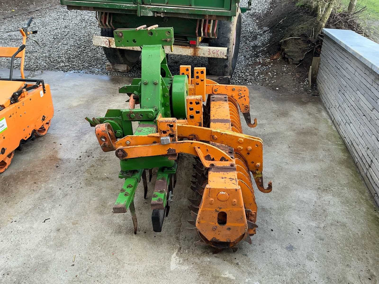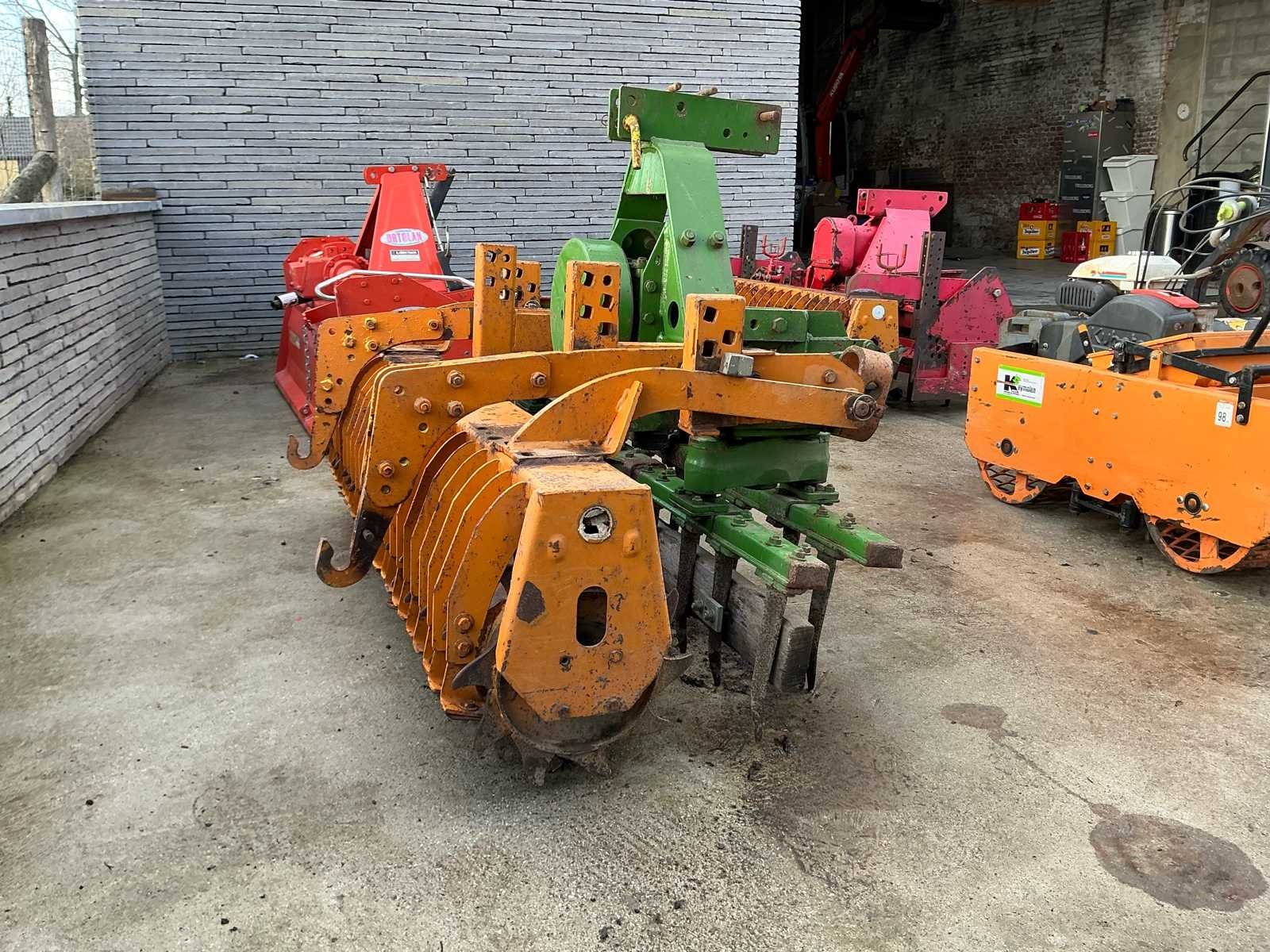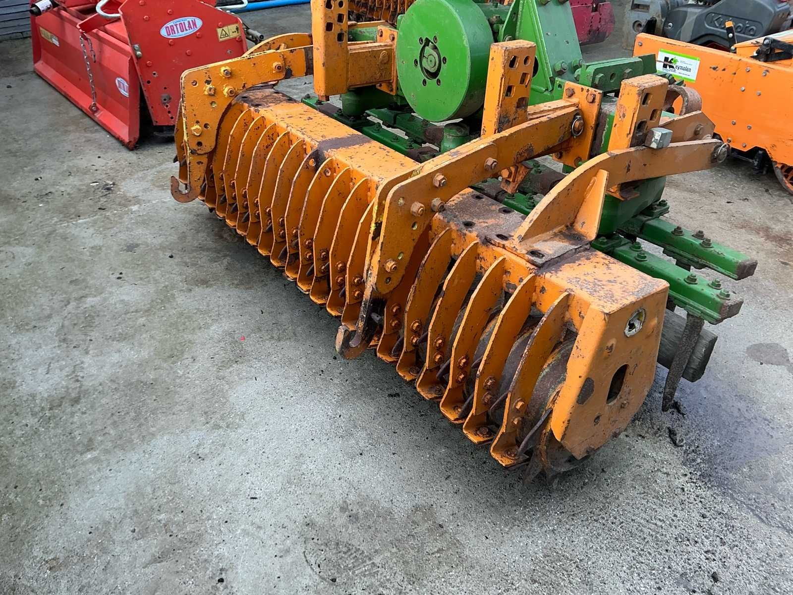 Robuuste rotoreg voor zaaibedbereiding, voorzien van aftakas aandrijving en achteraan een packer-/aandrukrol voor optimale verkruimeling en nivellering van de bodem. Deze machine is ideaal voor het fijn verkruimelen van geploegde grond en het voorbereiden van een egaal zaaibed. Dankzij de verticale tanden behoudt de bodem zijn structuur beter dan bij een klassieke grondfrees. Kenmerken: • Aftakas aangedreven (PTO) • 3-puntsophanging • Voorzien van zware packerrol • Degelijke tandwielkast • Geschikt voor landbouw en tuinbouw Staat: Gebruikte staat met normale gebruikssporen passend bij leeftijd en gebruik. Mechanisch robuuste uitvoering. No Type: rotoreg aandrukrol