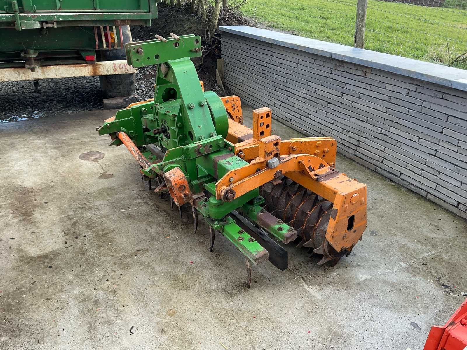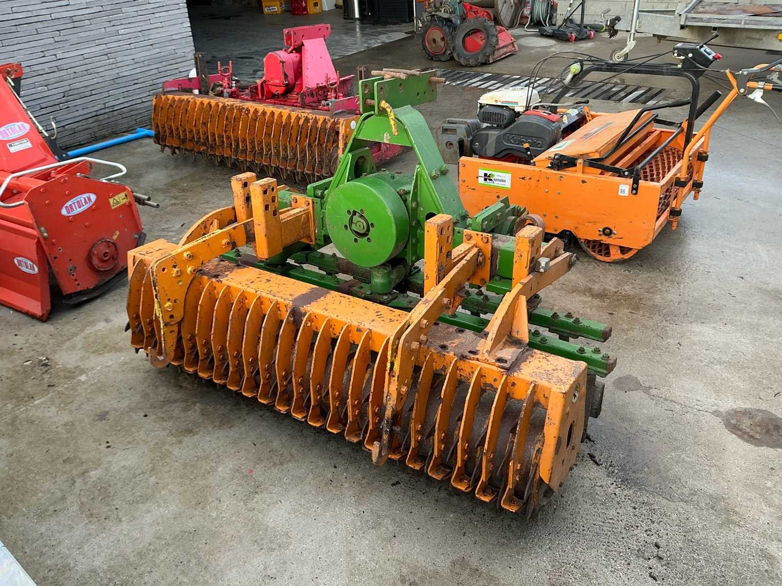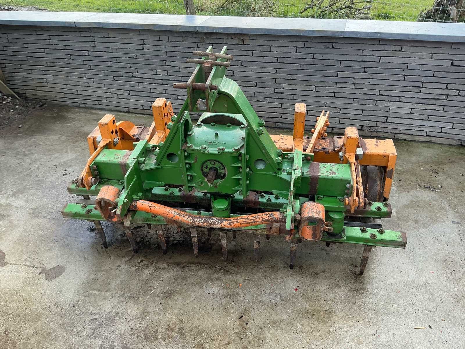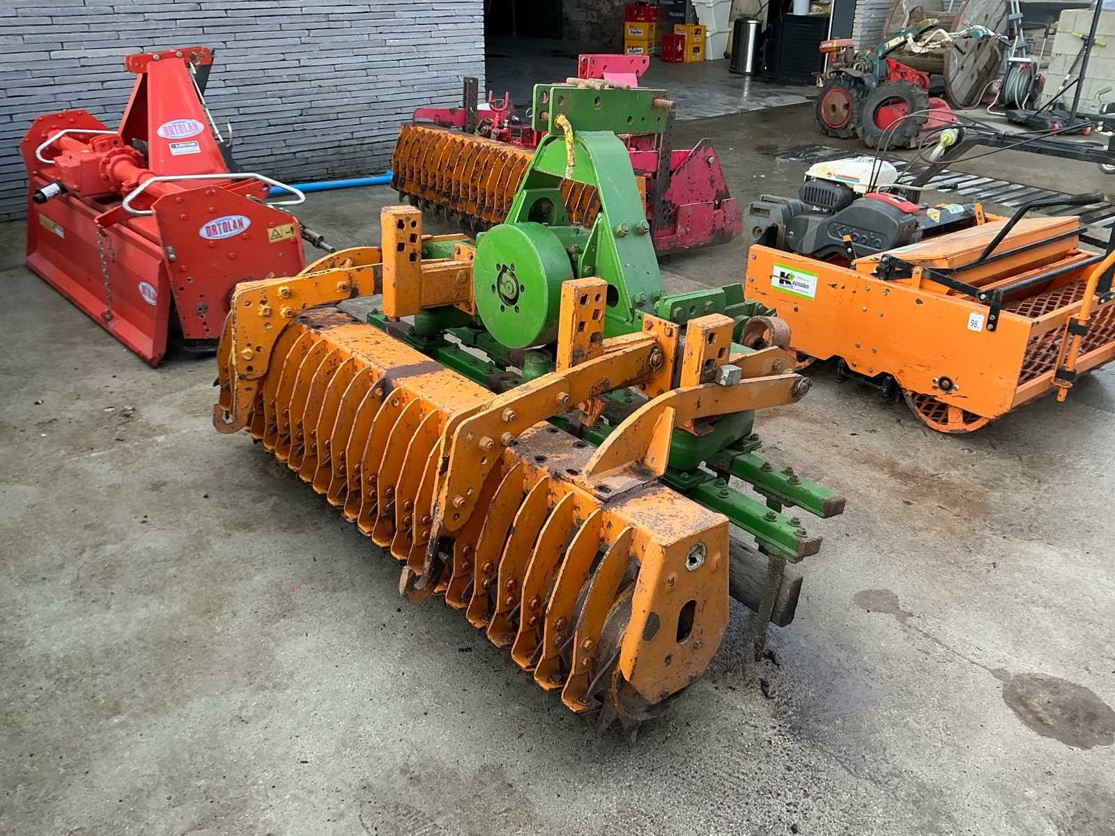 Robuuste rotoreg voor zaaibedbereiding, voorzien van aftakas aandrijving en achteraan een packer-/aandrukrol voor optimale verkruimeling en nivellering van de bodem. Deze machine is ideaal voor het fijn verkruimelen van geploegde grond en het voorbereiden van een egaal zaaibed. Dankzij de verticale tanden behoudt de bodem zijn structuur beter dan bij een klassieke grondfrees. Kenmerken: • Aftakas aangedreven (PTO) • 3-puntsophanging • Voorzien van zware packerrol • Degelijke tandwielkast • Geschikt voor landbouw en tuinbouw Staat: Gebruikte staat met normale gebruikssporen passend bij leeftijd en gebruik. Mechanisch robuuste uitvoering. No Type: rotoreg aandrukrol