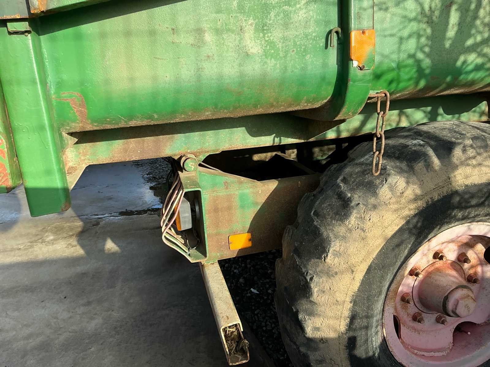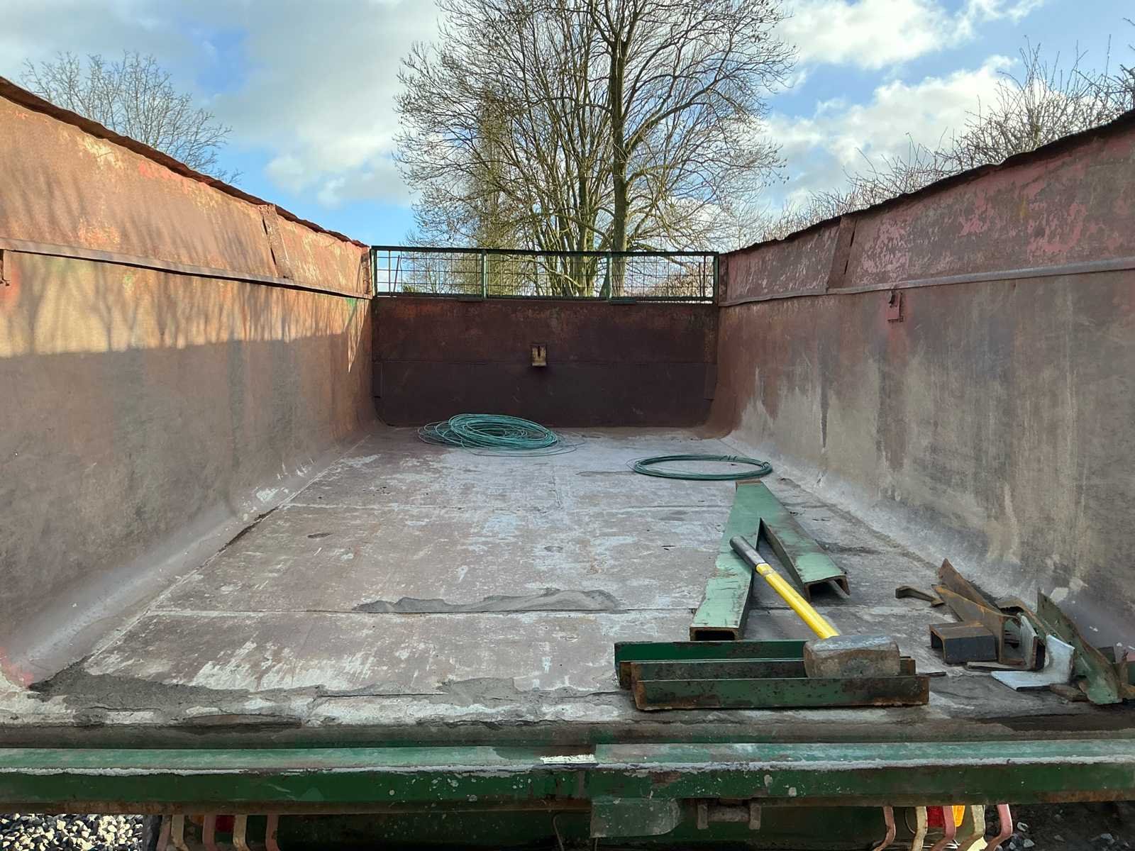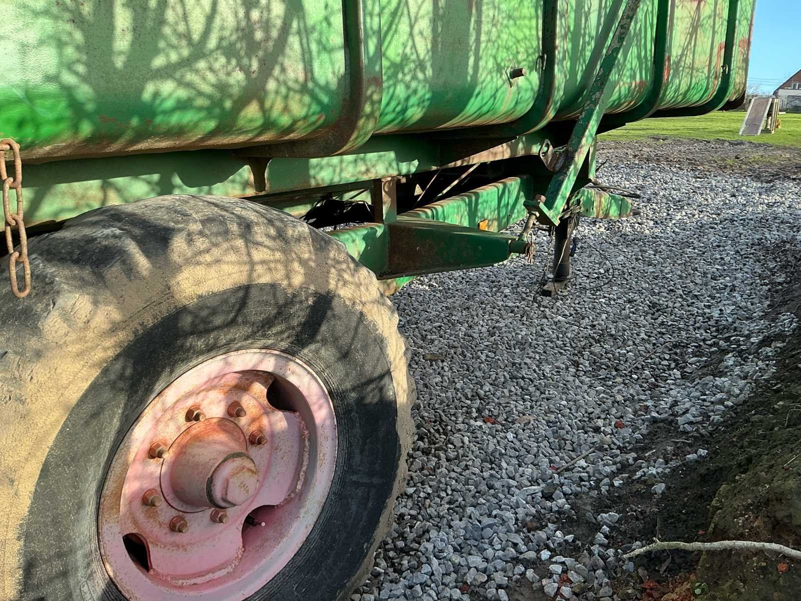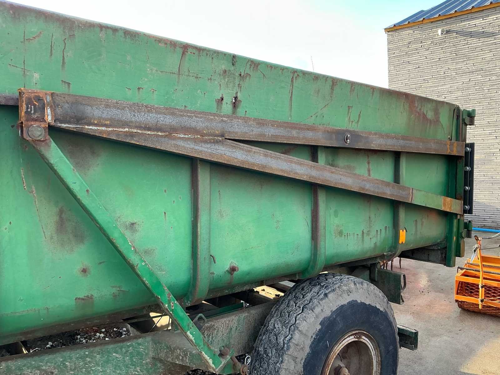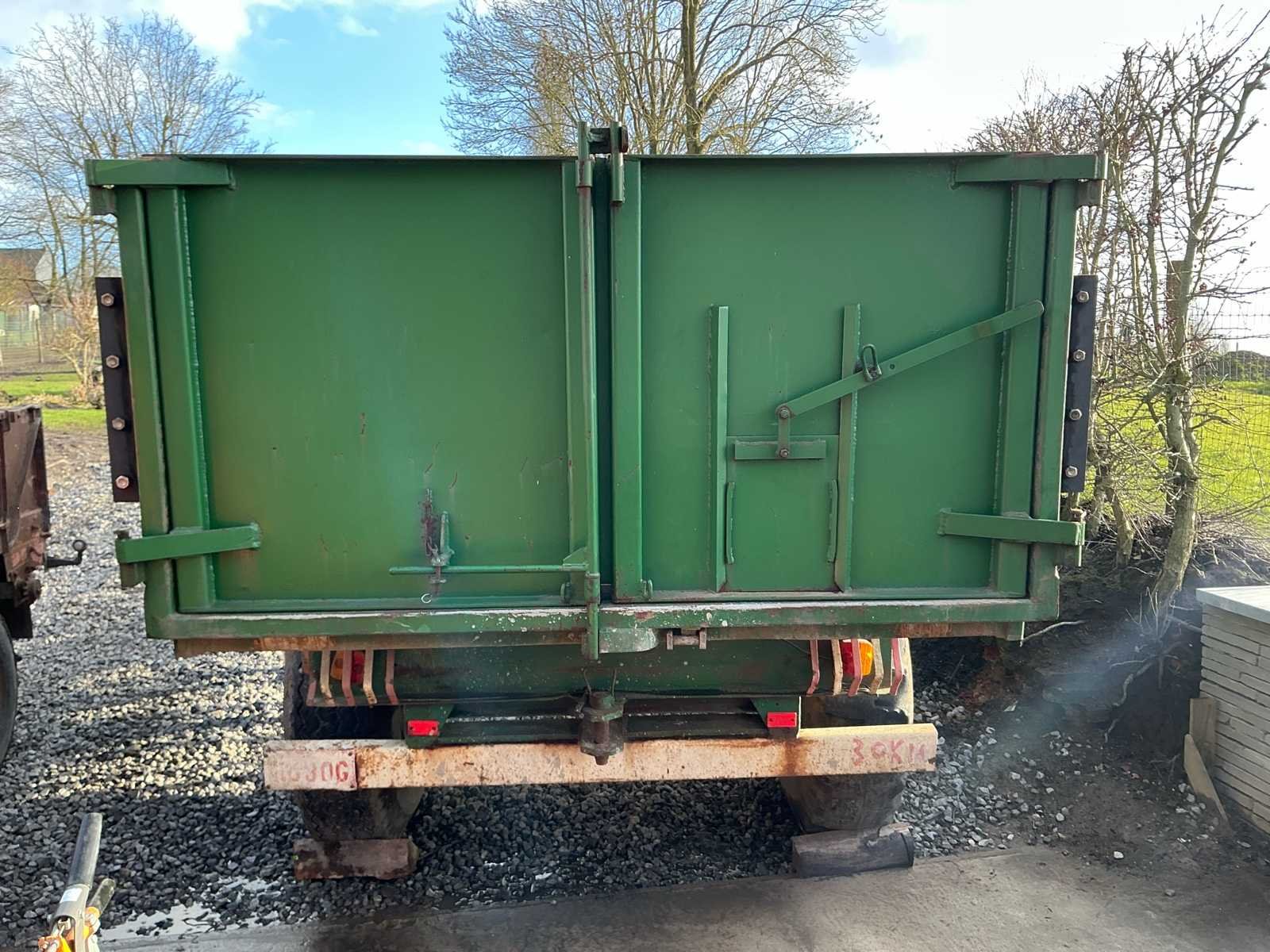 Robuuste landbouwkipwagen in degelijke uitvoering, geschikt voor transport van grond, mest, maïs, graan of andere landbouwproducten. De wagen is voorzien van een hydraulische kipinstallatie en een automatisch openende pendel-achterklep die opent bij het kippen. Uitgerust met stevige landbouwbanden en vaste dissel met trekhaakoog. Kenmerken: • Enkelas uitvoering • Hydraulisch achterover kippend • Automatische pendel-achterklep • Stevige stalen laadbak • Hoge zijborden • Vaste dissel • Verlichting aanwezig Laadruimte: Ruime laadbak met stalen bodem en hoge zijwanden. Staat: Gebruikte staat met normale gebruikssporen en oppervlakteroest passend bij leeftijd en gebruik. Constructief degelijke wagen. Documenten niet aanwezig, zwaai/valklep is gereviseerd. No Merk: Duchesne Type: Kipper met zwaai/valklep