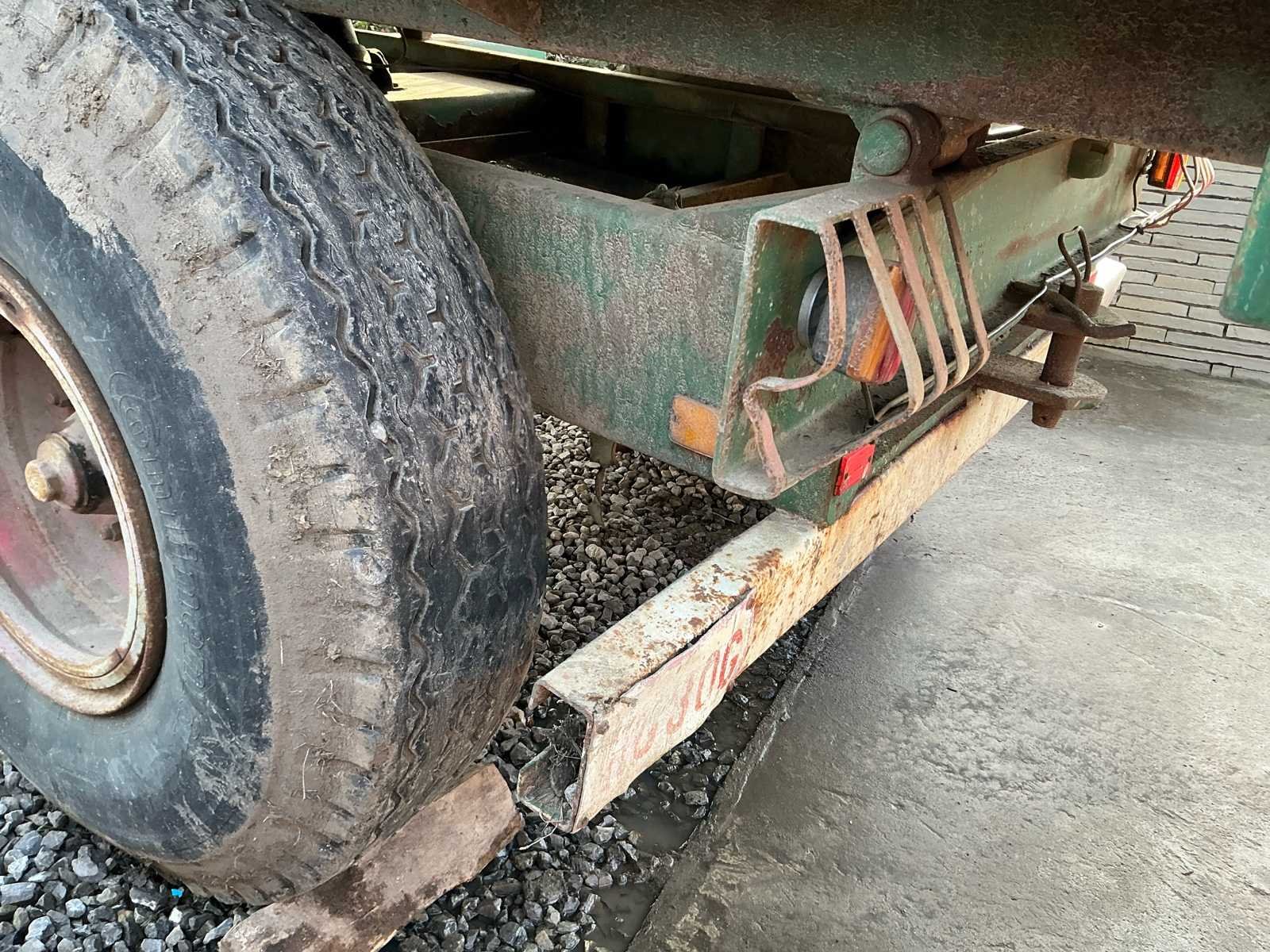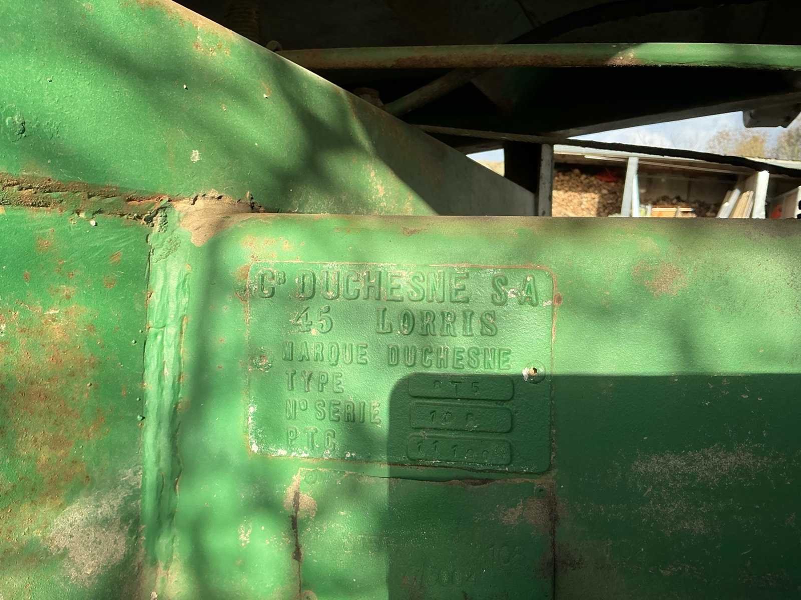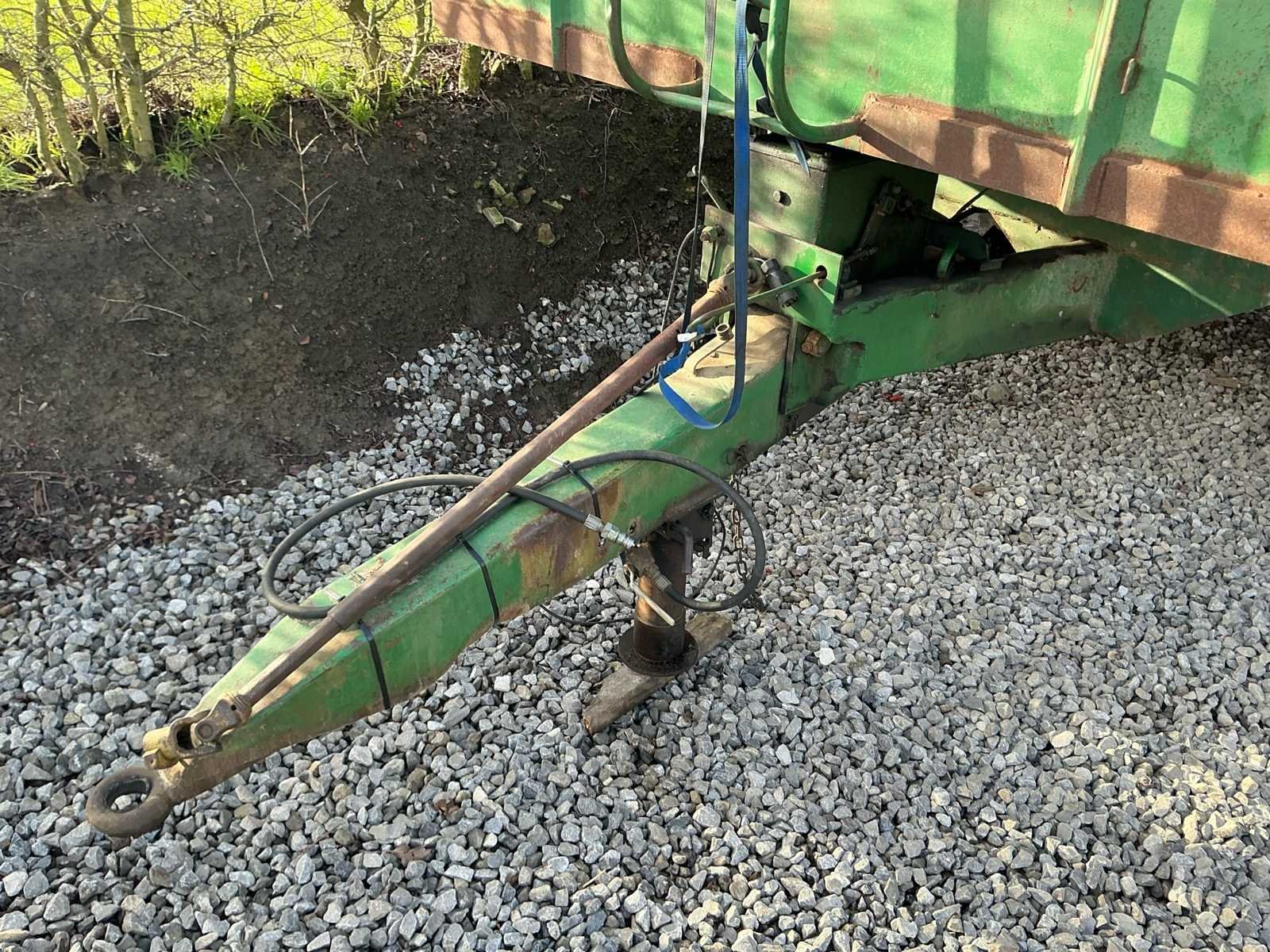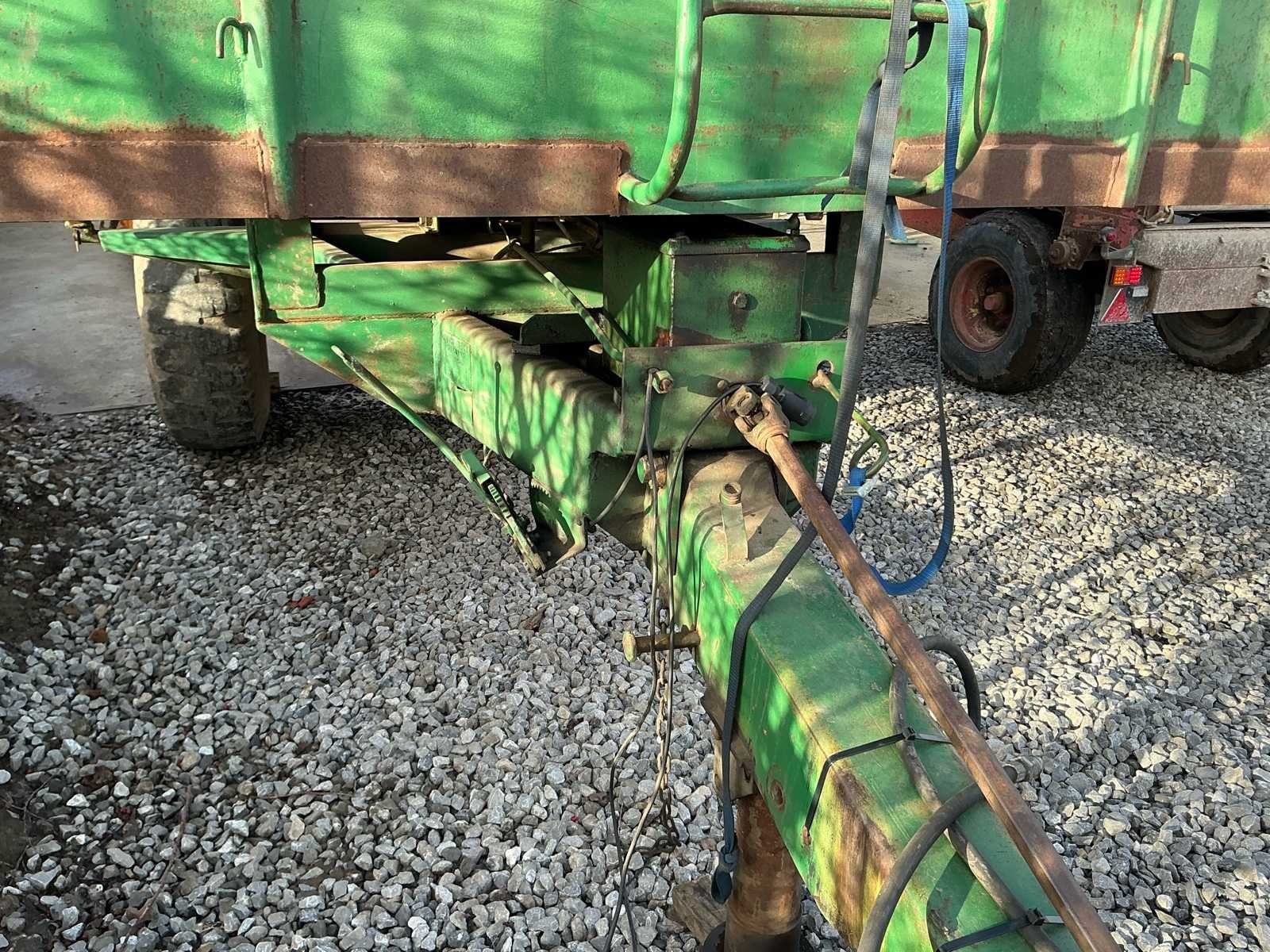 Robuuste landbouwkipwagen in degelijke uitvoering, geschikt voor transport van grond, mest, maïs, graan of andere landbouwproducten. De wagen is voorzien van een hydraulische kipinstallatie en een automatisch openende pendel-achterklep die opent bij het kippen. Uitgerust met stevige landbouwbanden en vaste dissel met trekhaakoog. Kenmerken: • Enkelas uitvoering • Hydraulisch achterover kippend • Automatische pendel-achterklep • Stevige stalen laadbak • Hoge zijborden • Vaste dissel • Verlichting aanwezig Laadruimte: Ruime laadbak met stalen bodem en hoge zijwanden. Staat: Gebruikte staat met normale gebruikssporen en oppervlakteroest passend bij leeftijd en gebruik. Constructief degelijke wagen. Documenten niet aanwezig, zwaai/valklep is gereviseerd. No Merk: Duchesne Type: Kipper met zwaai/valklep