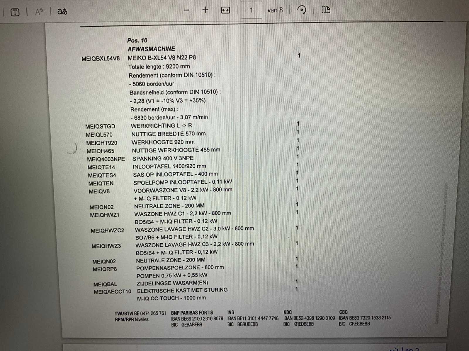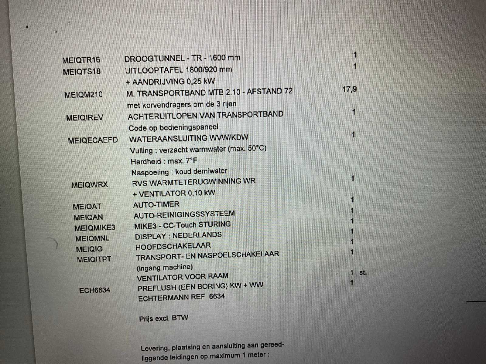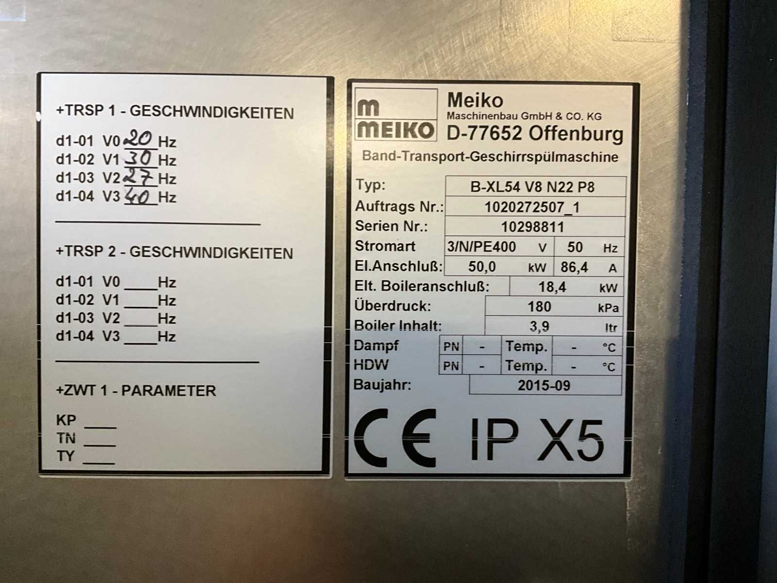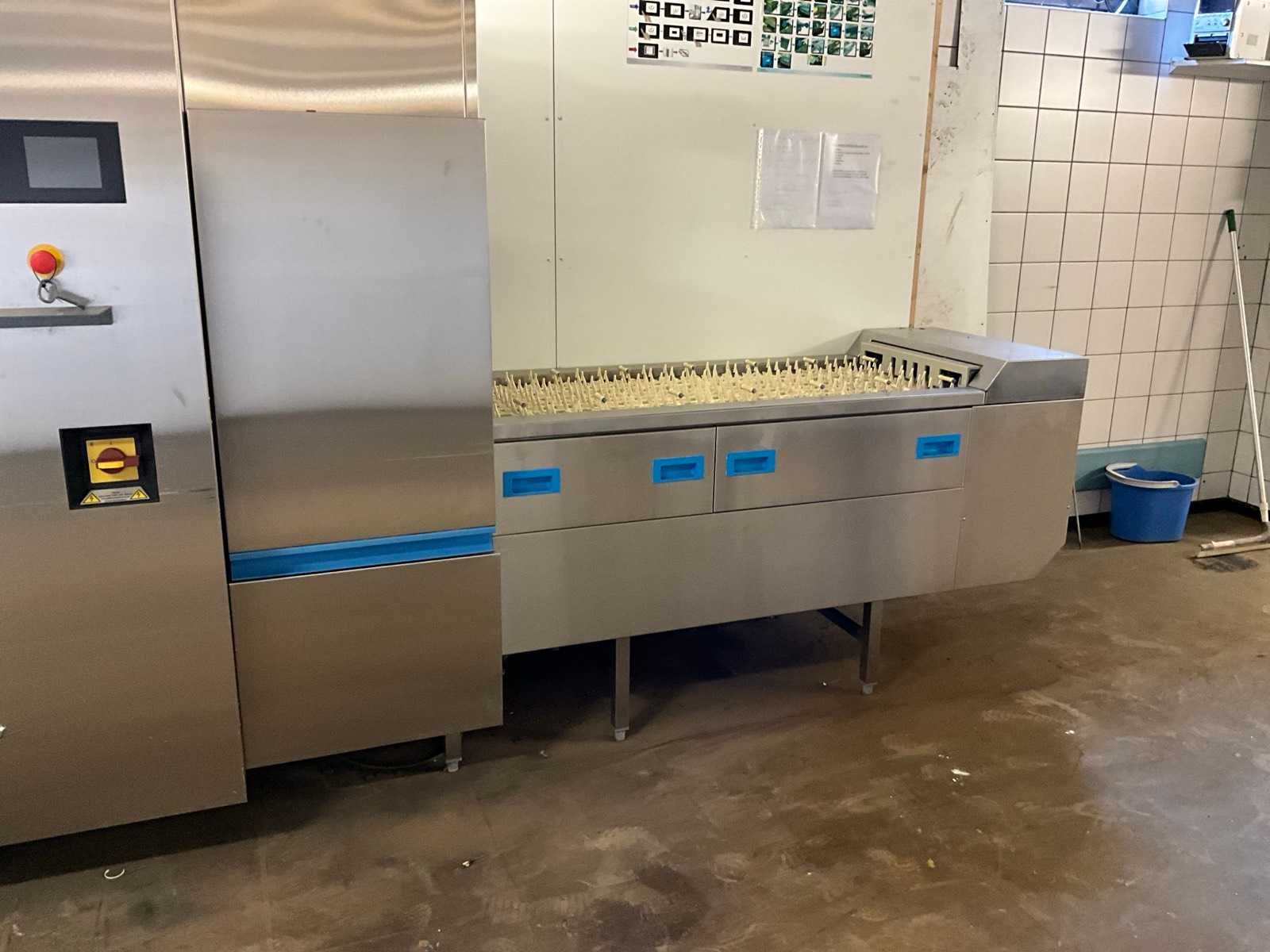 Machine dient door koper gedemonteerd te worden en verplaatst worden - vaatwasser staat in de kelderverdieping - GEEN laadmogelijkheden aanwezig -palletwagen aanwezig werking niet gecontroleerd - zeep doseersysteem inbegrepen - Vaatwaskorven NIET inbegrepen No Merk: Meiko Type: B-XL54 V8 N22 P8 Materiaal: RVS Rvs: true Tunnelmodel: true Digitaal: true Vermogen: 50kW Aansluiting: 400V Totale afmeting L: 9250mm Totale afmeting Breedte: 1000mm Totale afmeting Hoogte: 2100mm Bouwjaar: 2015