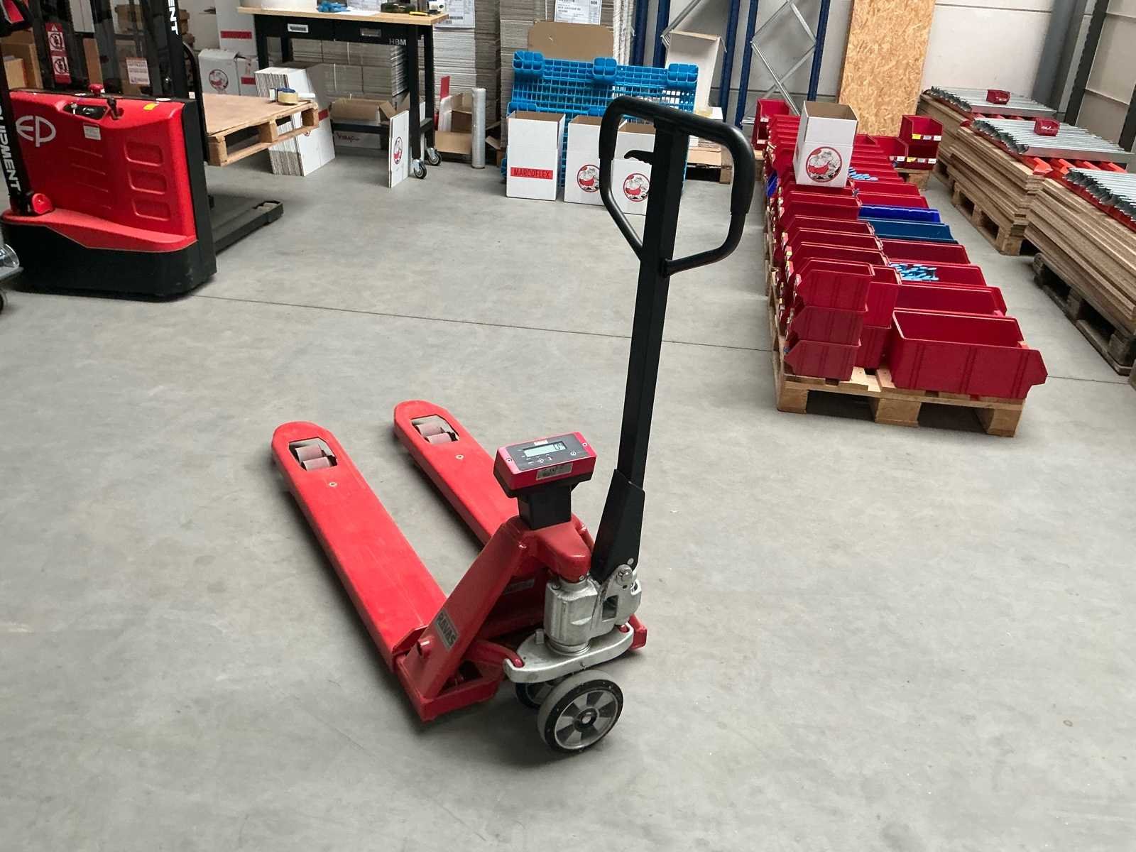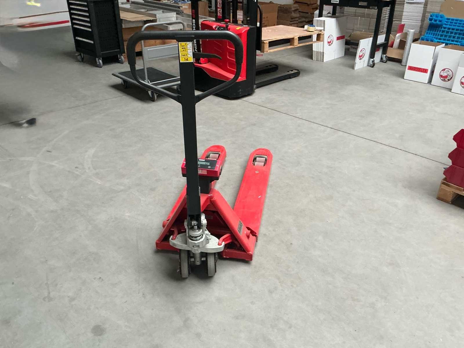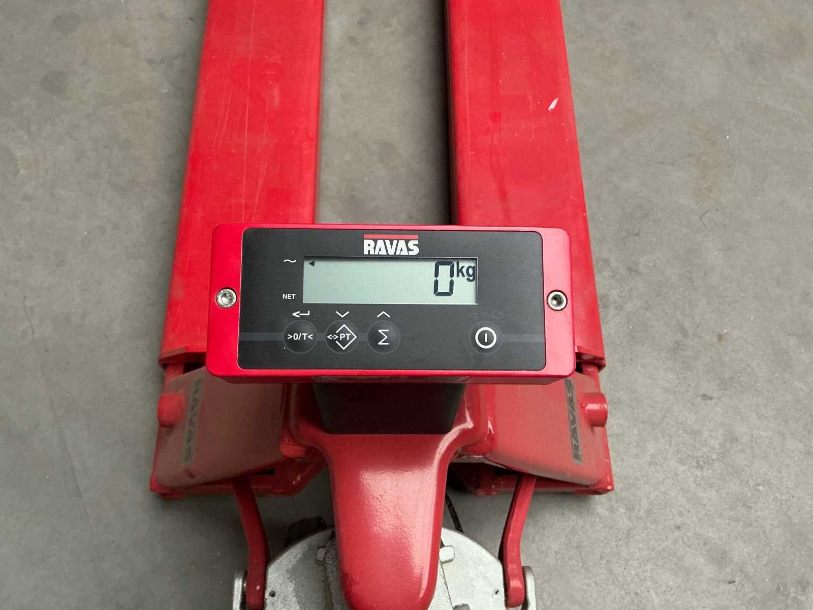Perfect werkende transpallet met weegschaal , steeds intern gebruikt dus nooit in regen gereden. Verkoop wegens stopzetting bedrijf. No Merk: Ravas Type: 1100 Bouwjaar: 2021 Serienummer: 22109745214101 Hefvermogen: 2000kg