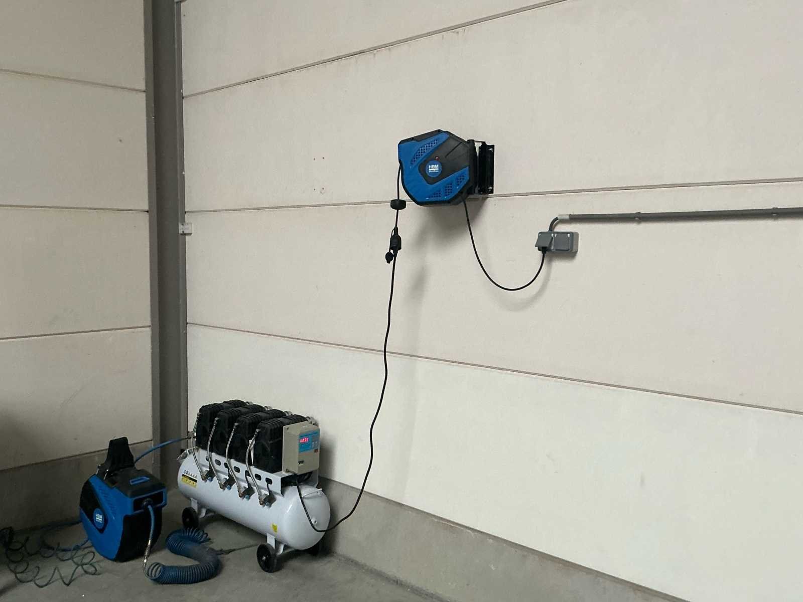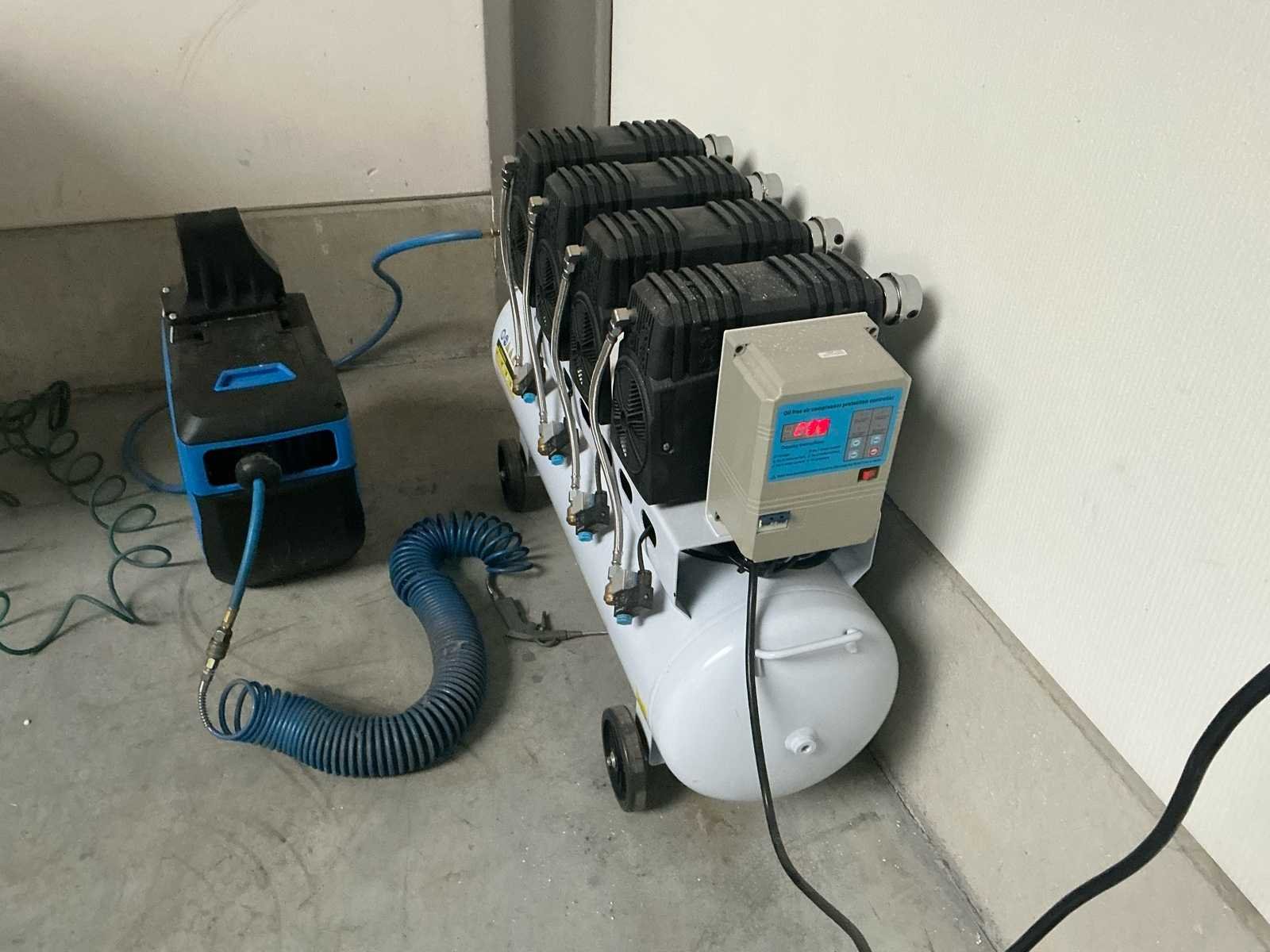 Verkoop wegens stopzetting bedrijf. Deze heeft steeds binnen gestaan en zonder enige mankementen, in prima staat. Inclusief automatische luchthaspelvan 30 m en met een extra 20m. professionele automatische stroomhaspel. Model 2” een serie olievrije low‑noise compressors aan met eigenschappen zoals: • Low Noise geluidsniveau (bijv. rond ~73 dB bij grotere modellen).  • Druktankcapaciteit variërend van ±24 L tot 200 L.  • Standaard 230 V aansluiting en voorzien van manometers, No Type: HBM Bouwjaar: 2023 Maximale werkdruk: 8bar Totale afmeting L: 1050mm Totale afmeting Breedte: 400mm Totale afmeting Hoogte: 1150mm