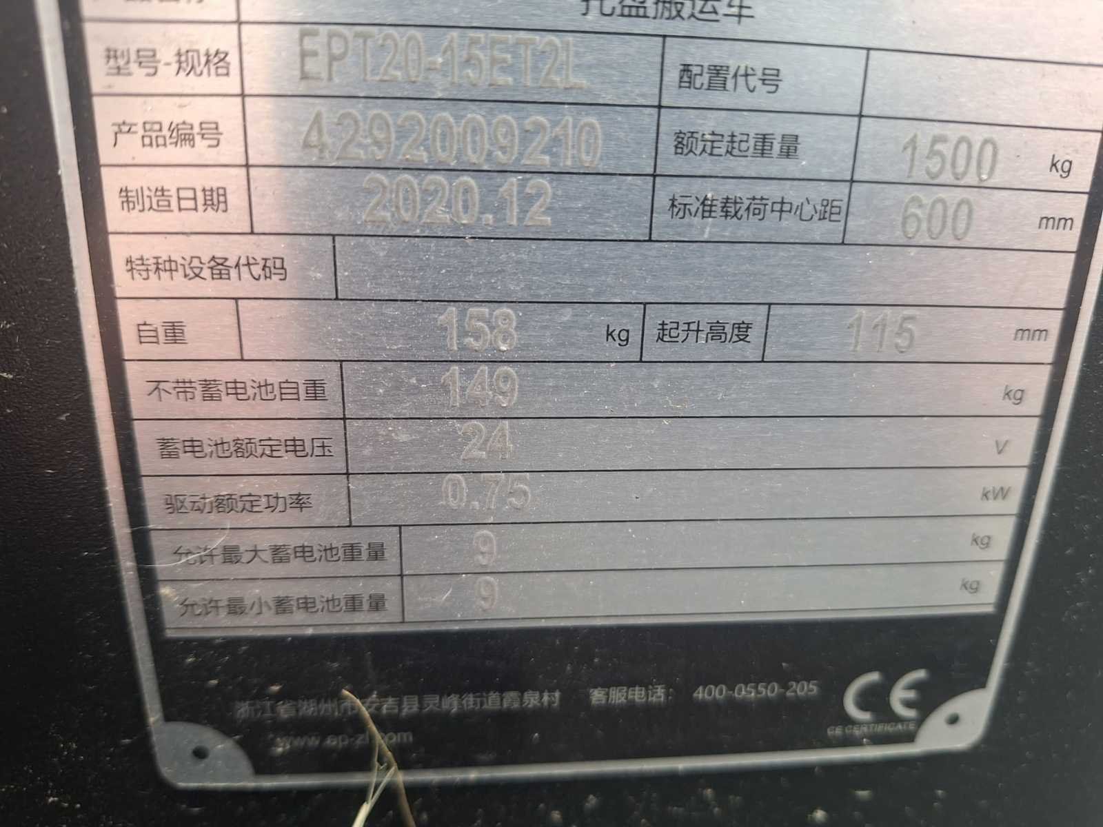 - Volledig ongebruikt in de verpakking - 1500KG hefvermogen - Ingebouwde lader 220V No Bouwjaar: 2020 Lepellengte: 1150mm Afgelezen urenstand: 0