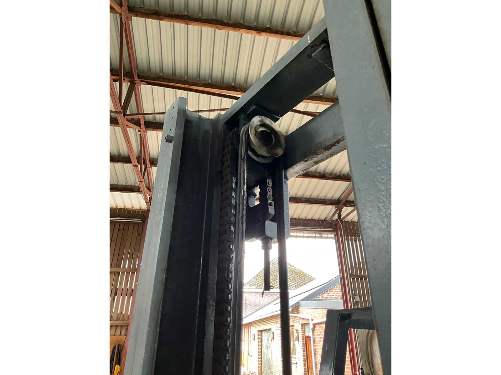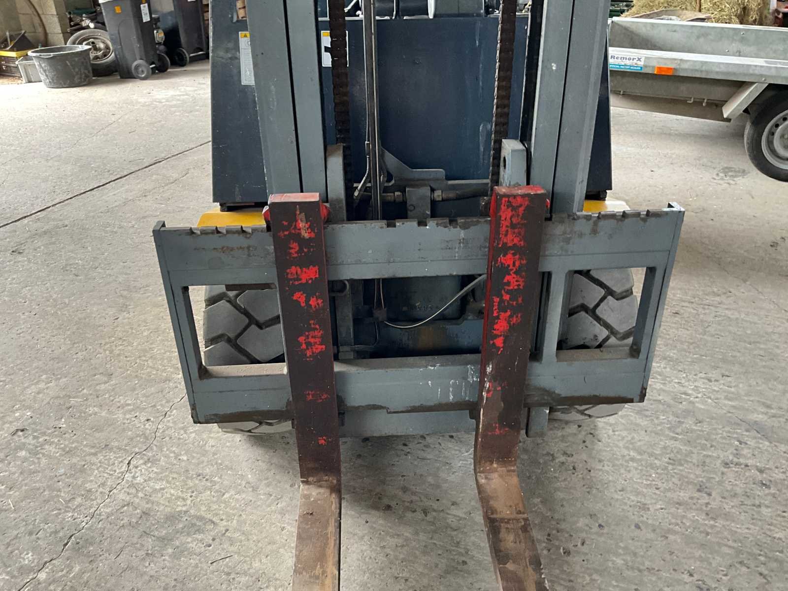 Cesab / Komatsu - eind jaren 90/begin 2000 - Werkende staat met gebruikssporen - Nissan K25 LPG motor - Nee Merk: Cesab Type: Blitz 3000 LPG Brandstof: LPG Mast: Duplex Soort band: Volrubber banden Aantal wielen: 4 Ruw terrein: true Duplex mast: true Hefvermogen: 3000kg Hefhoogte: 3710mm Vol rubber banden: true LPG: true