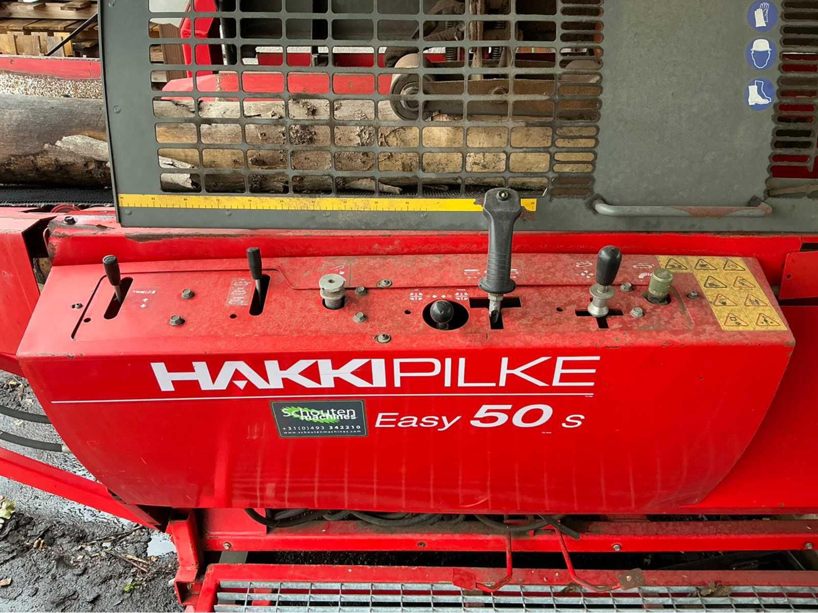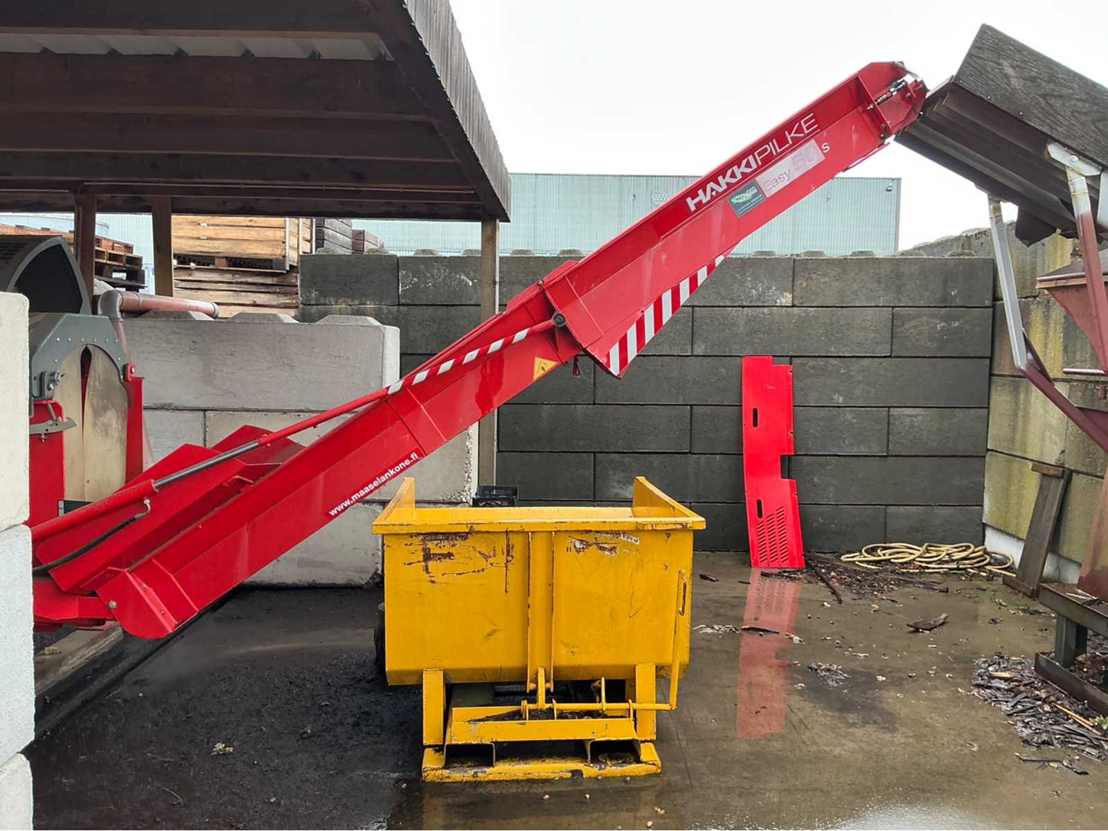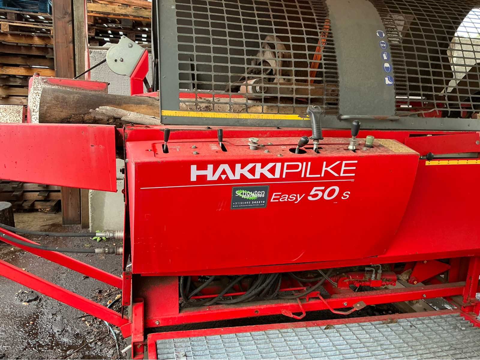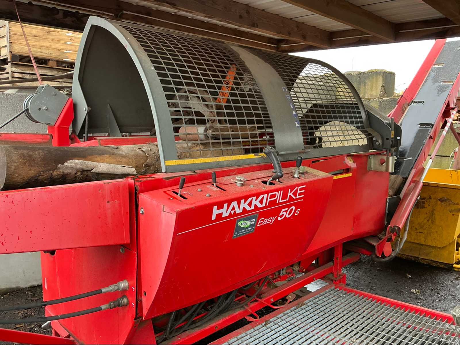 Hakki Pilke Easy 50s houtklover/brandhoutprocessor met aanvoer- en afvoerband. Deze robuuste machine is uitgevoerd met hydraulische bediening en beschermkap. Bouwjaar 2014, elektrisch aangedreven (400V, 15 kW, 1450 t/min) en met een gewicht van ca. 2150 kg. Voorzien van aanvoerband (Woodran 472) voor stammen en afvoerband voor het afgewerkte hout. Geschikt voor intensief gebruik bij houtverwerking kan tot 50-60 cm diameter zagen en voorzien van 8 en 12-delig Hardox kloofmes vol automatisch. Gebruikt, met zichtbare gebruikssporen, maar volledig functioneel. Nee Merk: Hakki Pilke Model: Easy 50S Serienummer: 50-29892 Gewicht: 2150kg Materiaal: Staal Leveringsvoorwaarden: Heftruck aanwezig