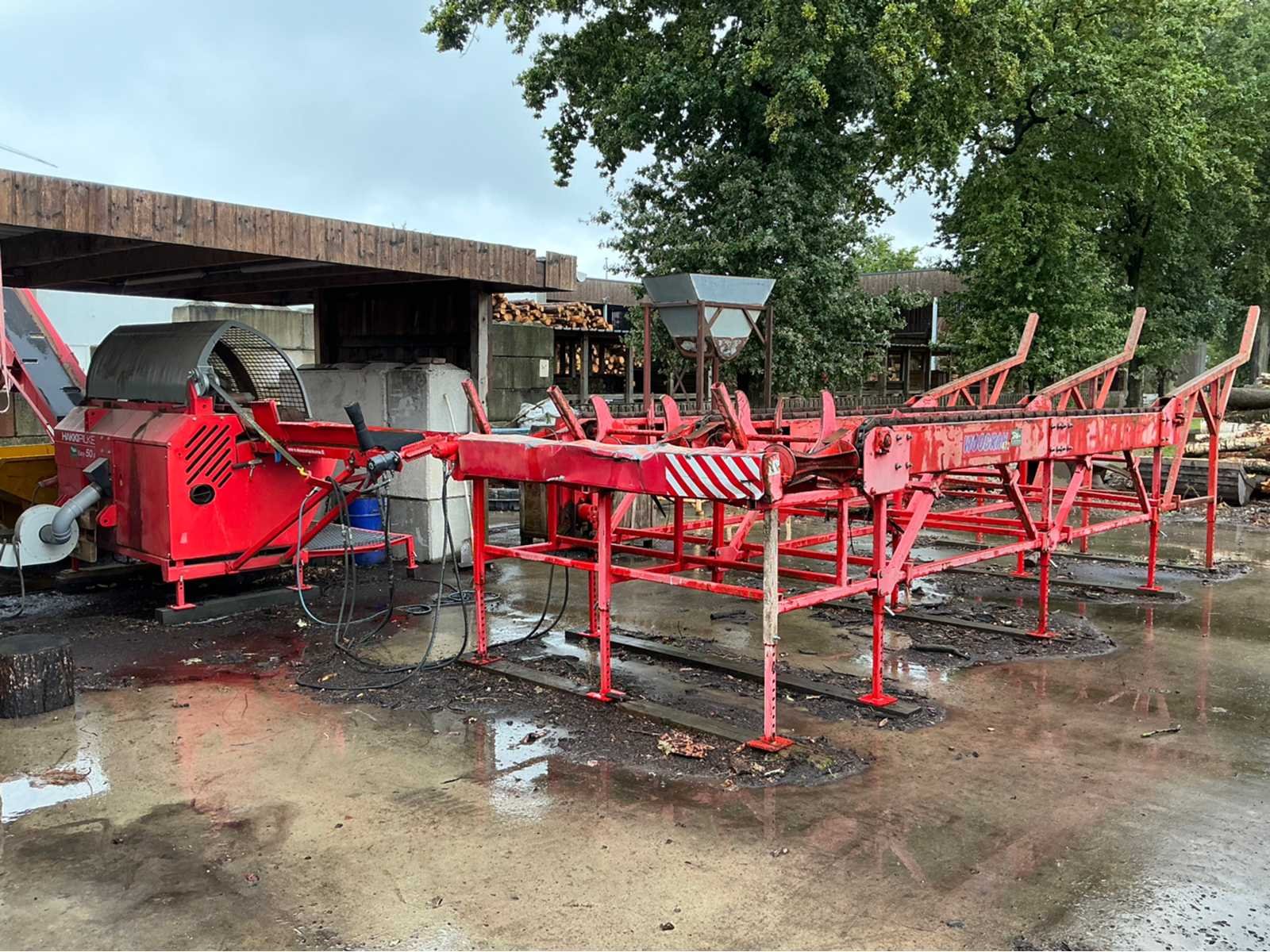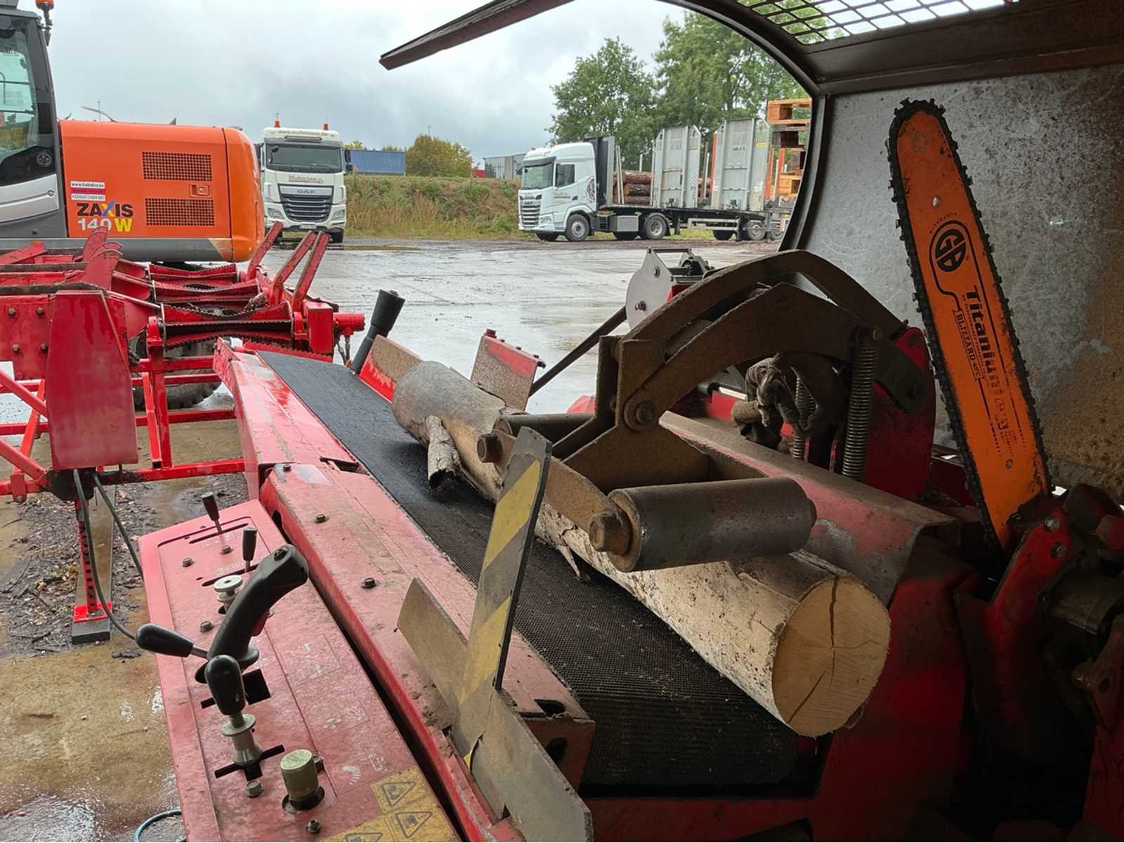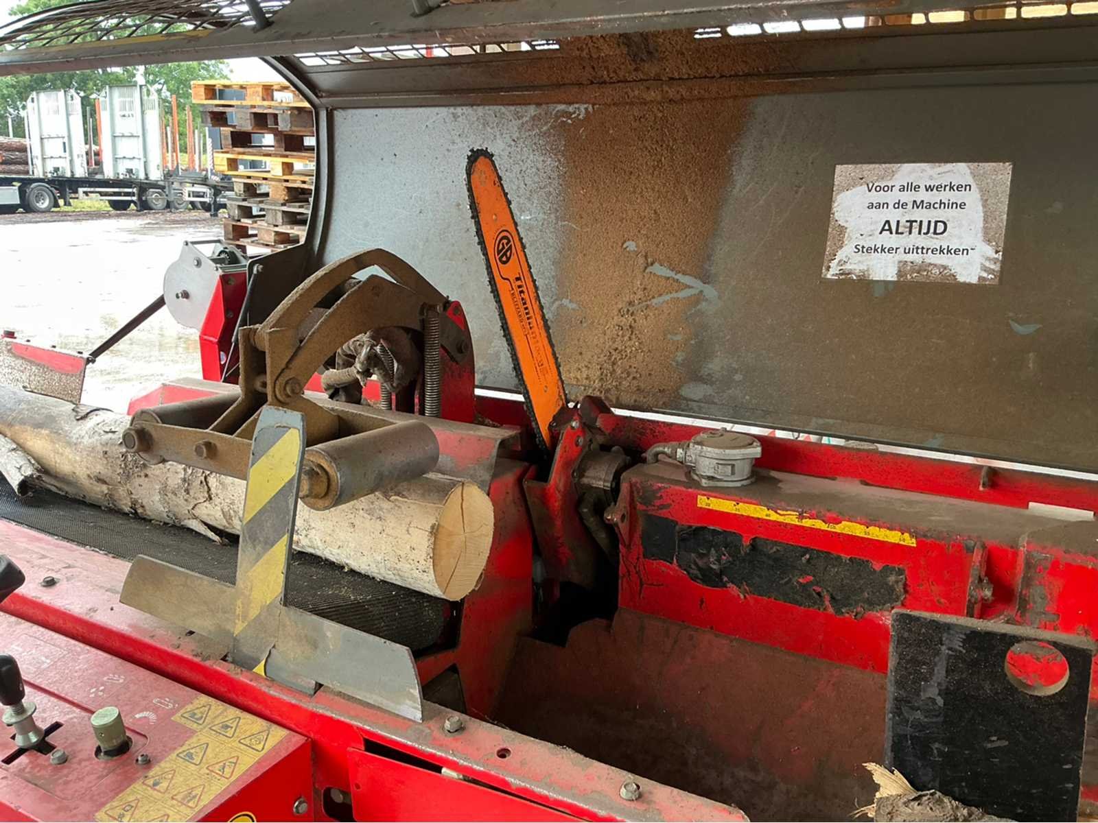 Hakki Pilke Easy 50s houtklover/brandhoutprocessor met aanvoer- en afvoerband. Deze robuuste machine is uitgevoerd met hydraulische bediening en beschermkap. Bouwjaar 2014, elektrisch aangedreven (400V, 15 kW, 1450 t/min) en met een gewicht van ca. 2150 kg. Voorzien van aanvoerband (Woodran 472) voor stammen en afvoerband voor het afgewerkte hout. Geschikt voor intensief gebruik bij houtverwerking kan tot 50-60 cm diameter zagen en voorzien van 8 en 12-delig Hardox kloofmes vol automatisch. Gebruikt, met zichtbare gebruikssporen, maar volledig functioneel. Nee Merk: Hakki Pilke Model: Easy 50S Serienummer: 50-29892 Gewicht: 2150kg Materiaal: Staal Leveringsvoorwaarden: Heftruck aanwezig