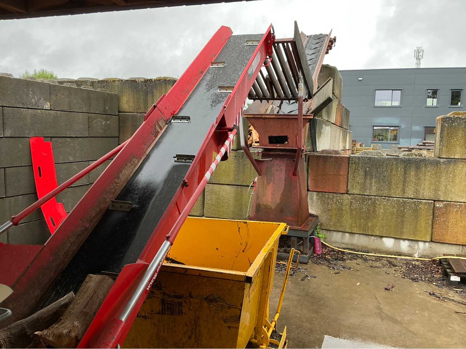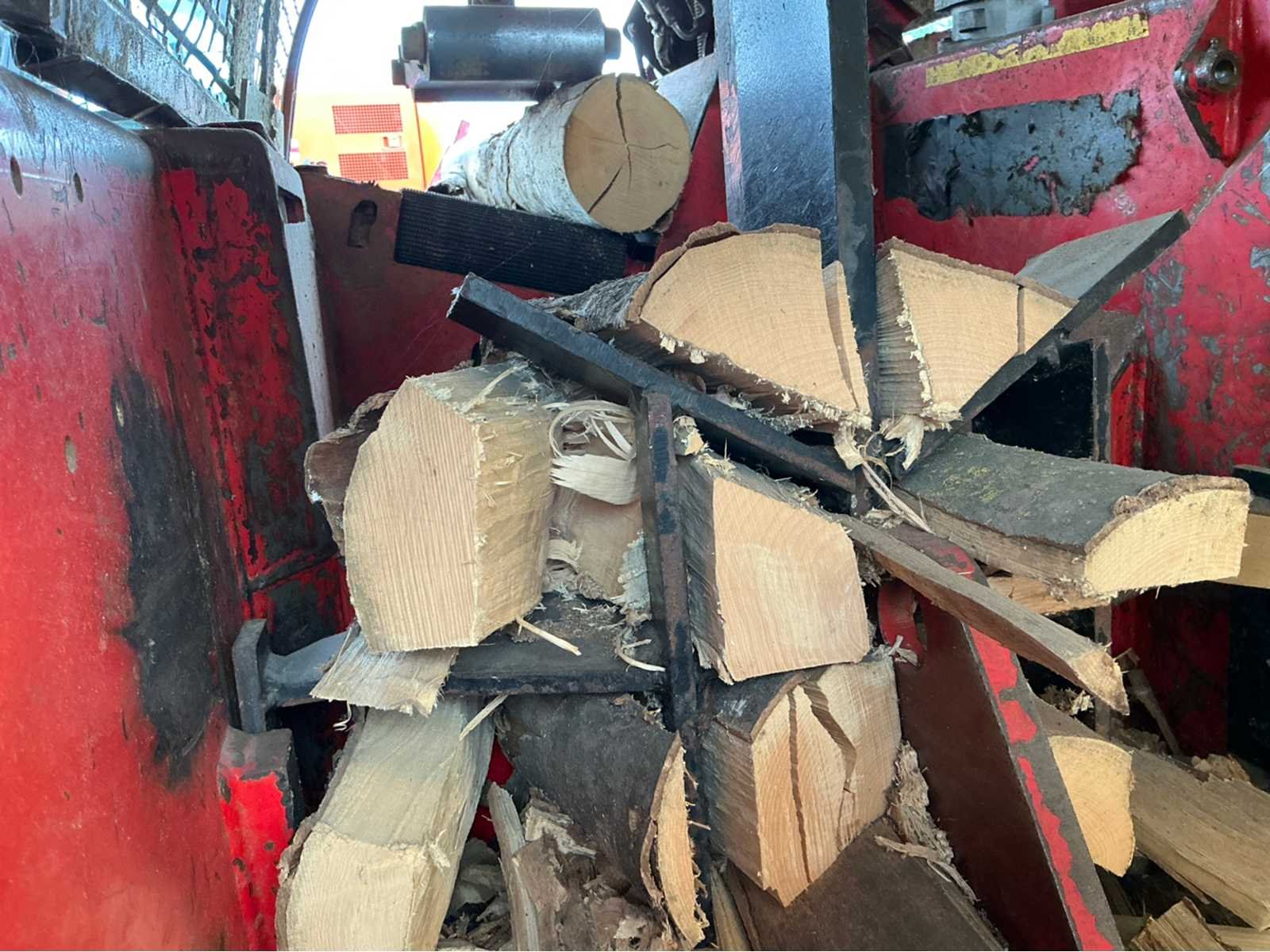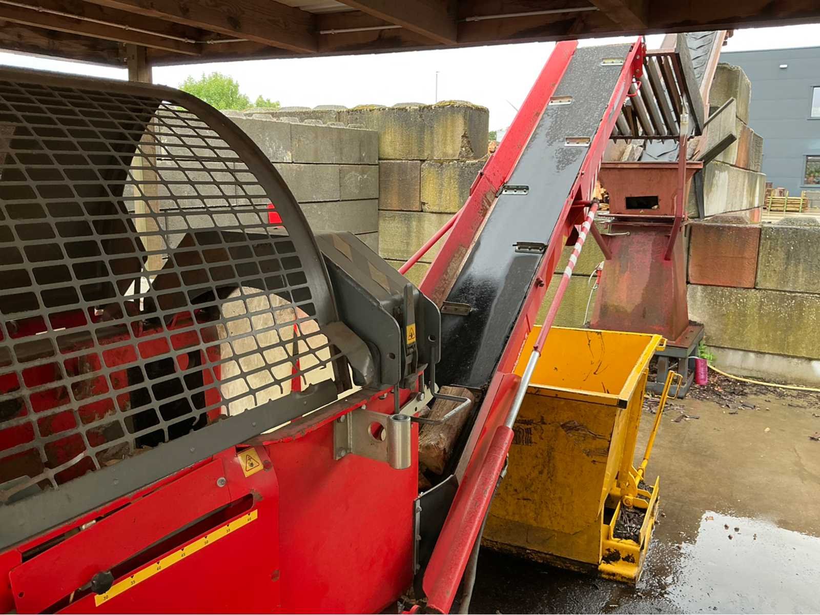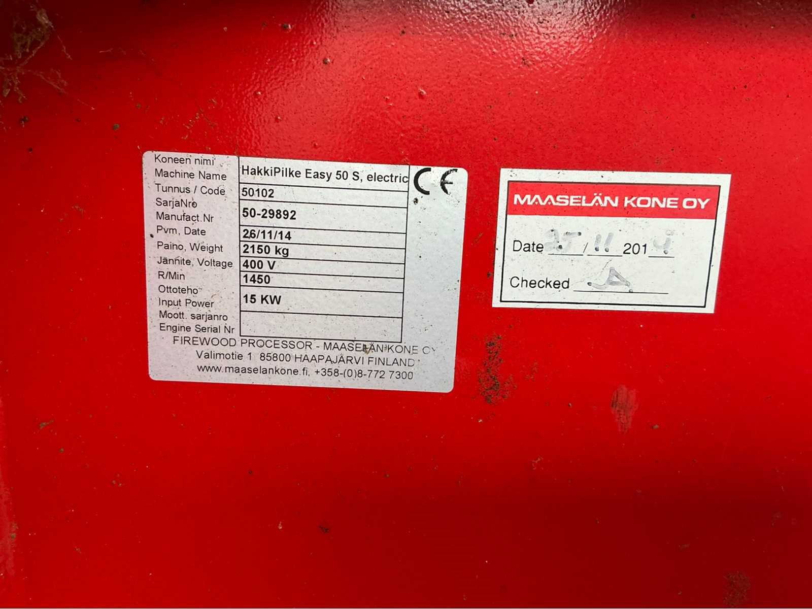 Hakki Pilke Easy 50s houtklover/brandhoutprocessor met aanvoer- en afvoerband. Deze robuuste machine is uitgevoerd met hydraulische bediening en beschermkap. Bouwjaar 2014, elektrisch aangedreven (400V, 15 kW, 1450 t/min) en met een gewicht van ca. 2150 kg. Voorzien van aanvoerband (Woodran 472) voor stammen en afvoerband voor het afgewerkte hout. Geschikt voor intensief gebruik bij houtverwerking kan tot 50-60 cm diameter zagen en voorzien van 8 en 12-delig Hardox kloofmes vol automatisch. Gebruikt, met zichtbare gebruikssporen, maar volledig functioneel. Nee Merk: Hakki Pilke Model: Easy 50S Serienummer: 50-29892 Gewicht: 2150kg Materiaal: Staal Leveringsvoorwaarden: Heftruck aanwezig