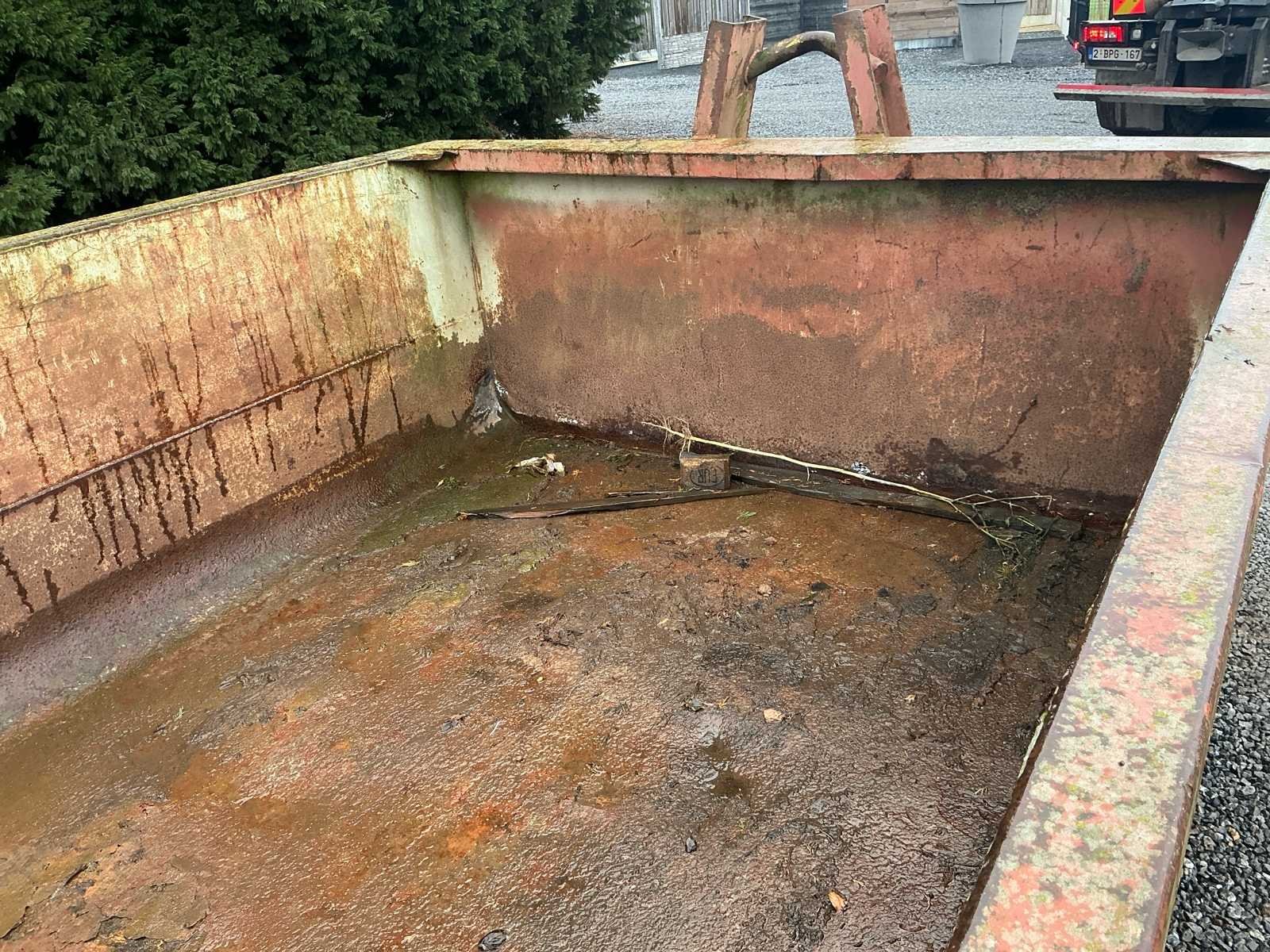 Indicatieve afmeting: lengte: 6,0 m breedte: 2,45 m hoogte: 1,10 m tot 1,45 m. Verticale verstevigingsbalken. No Merk: LVC Type: Afvalcontainer - puincontainer - afzetcontainer 15m3 Totale afmeting L: 6000mm Totale afmeting Breedte: 2500mm Totale afmeting Hoogte: 1100mm
