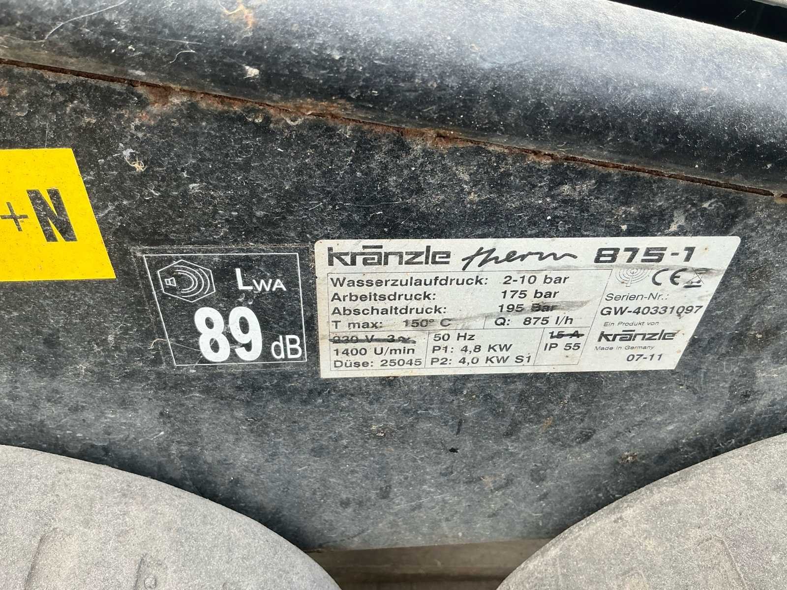 Brandstoftank 35 liter No Merk: Kränzle Therm Type: 875-1 Serienummer: GW-40331097 Maximale werkdruk: 175bar Temperatuurbereik min.: 12°c Temperatuurbereik max.: 80°c Capaciteit.: 875l/hr Vermogen: 4kW Eigen gewicht: 218kg