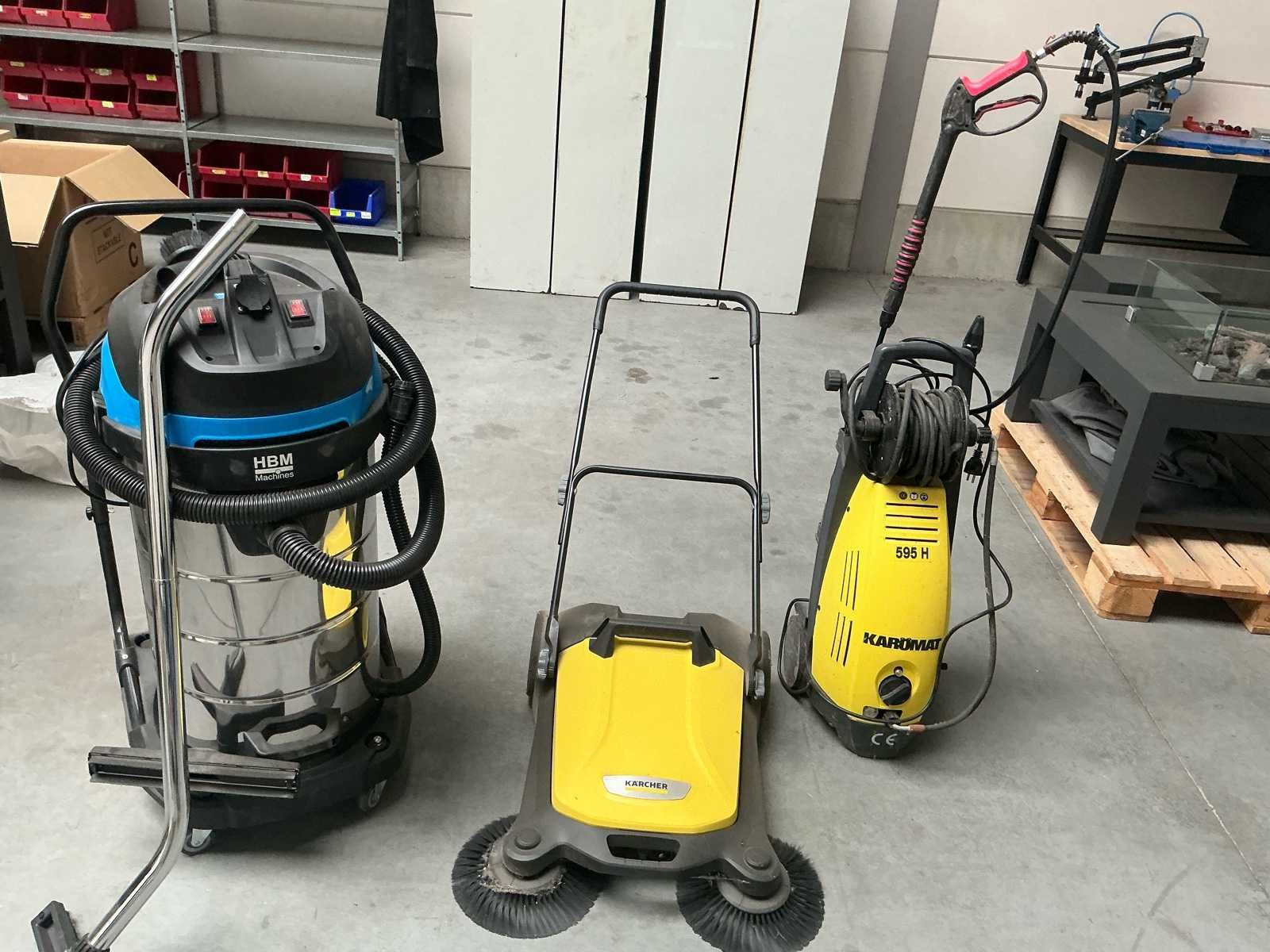 Professionele hbm bouwstofzuiger, borstelmachine kärcher en hoge druk reiniger karomat.