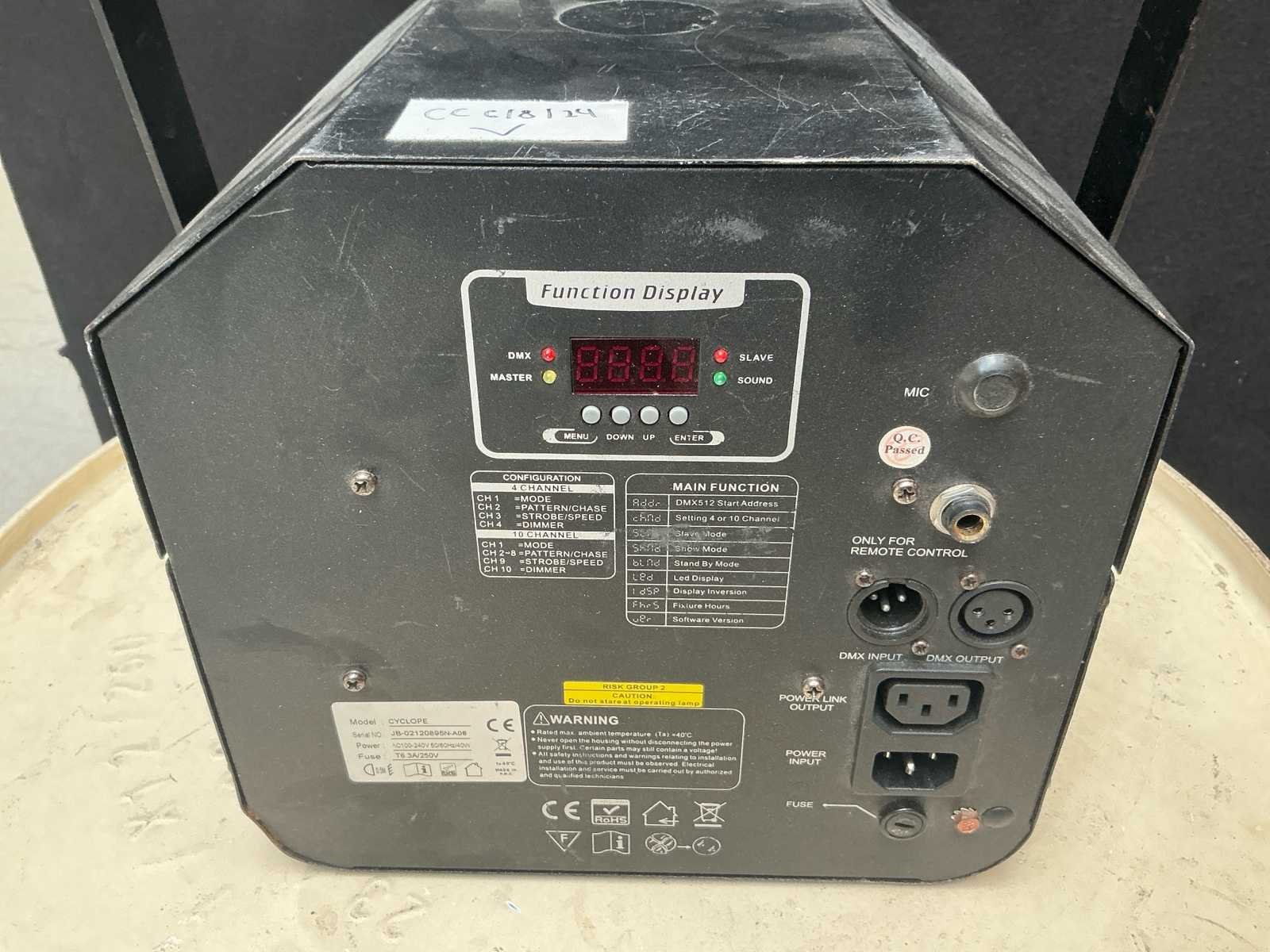 Ophaal datum 06/03/2026 en 09/03/2026 No Merk: Jbsystems Type: Cyclops LED: true DMX: true Aansluiting: 220V