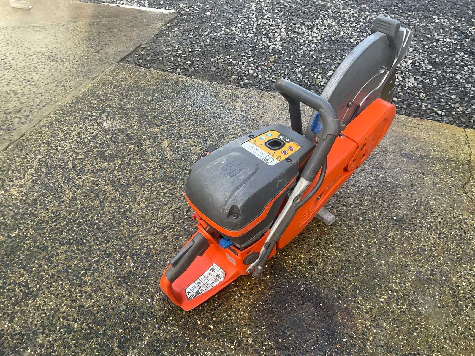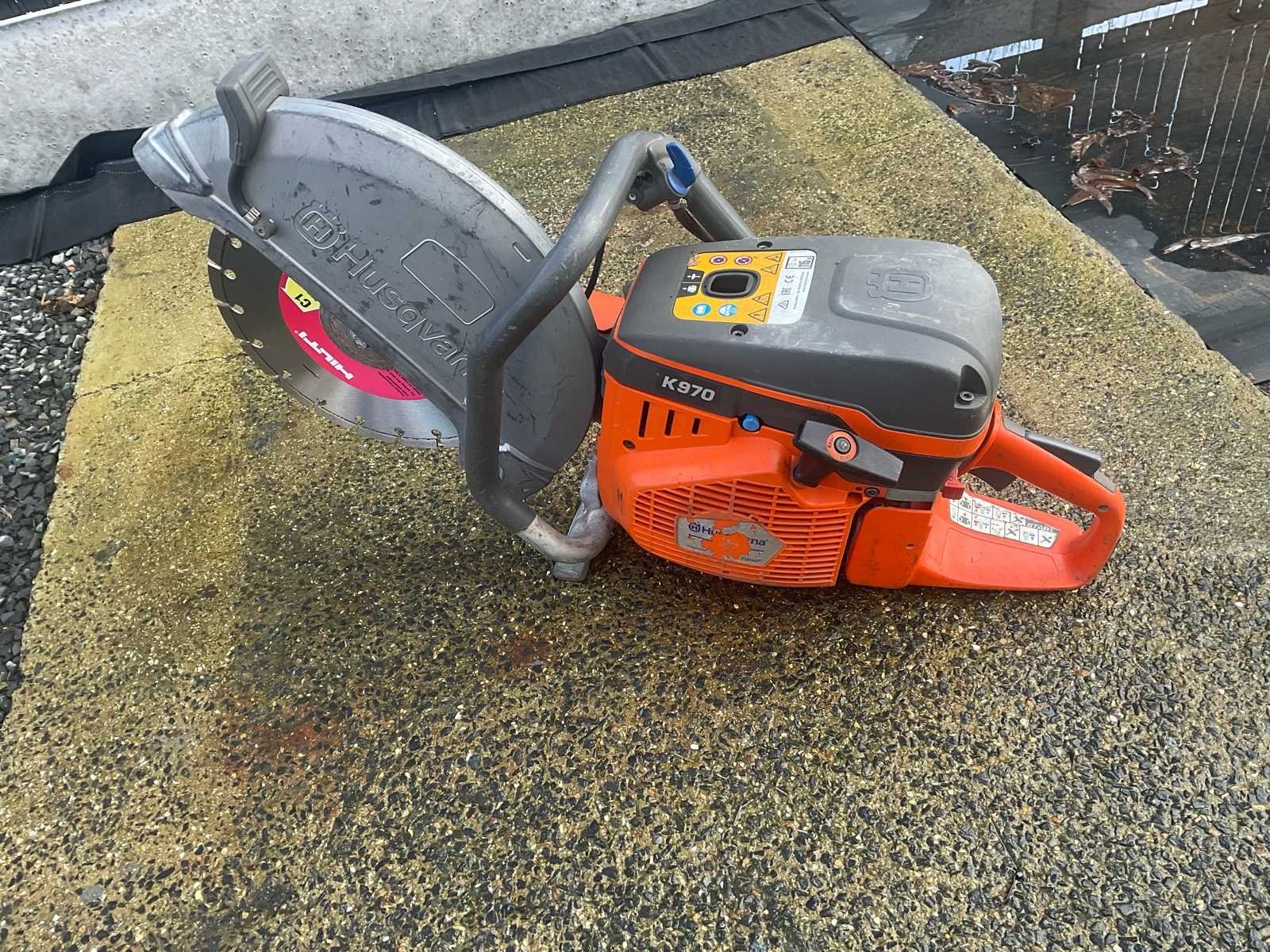 Husqvarna K970 Thermisch Betonzaag Husqvarna thermische betonzaag, model K970. Professionele machine voor het snijden van beton, steen en asfalt. Uitgerust met een gemonteerde Hilti diamantinzetstuk. Beschermhoes aanwezig. Hanteert en volledige controle. Gebruikte staat met normale gebruikssporen (krassen, vuil). No Merk: Husqvarna Type: K970 Motorvermogen (kW): 5kW