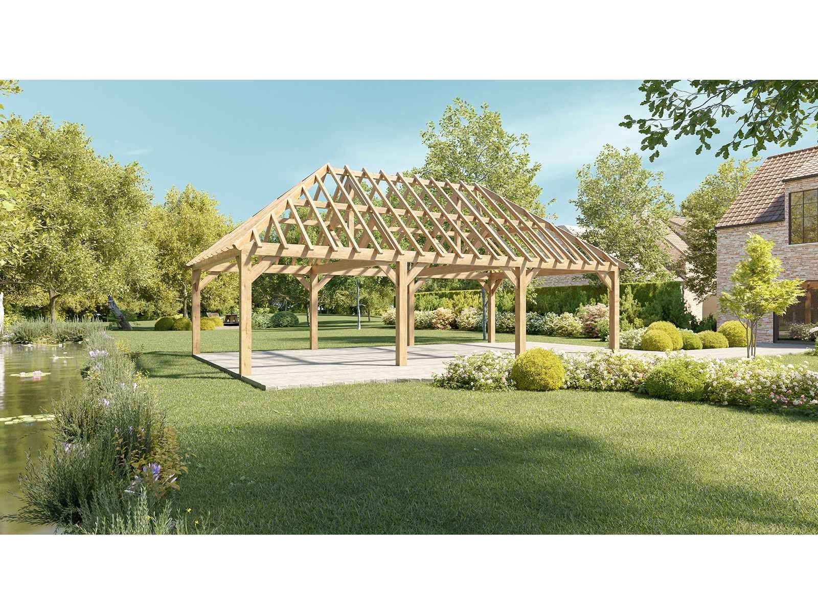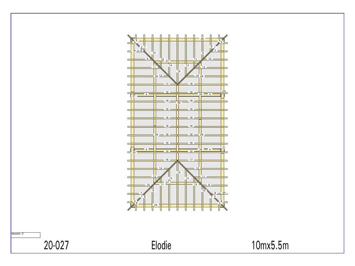 <li>Totaal afmeting pakket (transport): circa 7500x1000x1200 mm </li><li>Kopmaat liggers: 180x180 mm, 180x60 mm, 130x130 mm en 80x70 mm </li><li>Aantal draagsteunen: 8 stuks </li><li>Kopmaat staanders: 230x180 mm </li><li>Referentie: Elodie </li><li>Handleiding opbouw: aanwezig met QR code </li><li>Staat: ongebruikt, bouwpakket</li> Nee Model: 20-027 Gewicht: 1800kg Lengte: 1000cm Breedte: 550cm Hoogte: 481cm Materiaal: Fijnspar