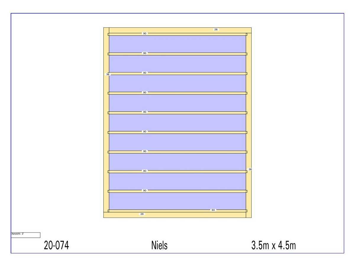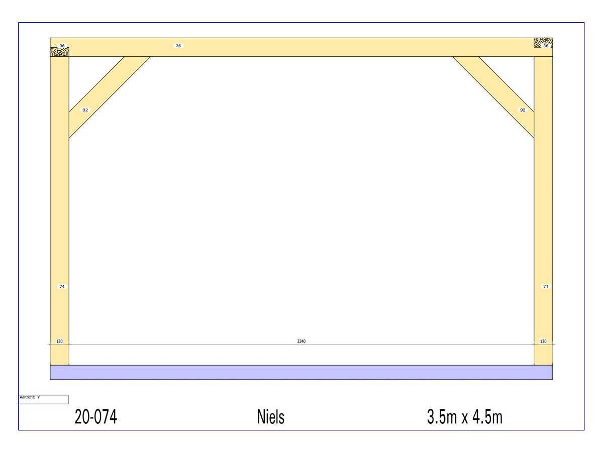 <li>Totaal afmeting pakket (transport): circa 4500x1000x700 mm </li><li>Kopmaat liggers: 130x60 mm </li><li>Aantal draagsteunen: 6 stuks </li><li>Kopmaat staanders 130x130 mm </li><li>Referentie: Niels </li><li>Handleiding opbouw: aanwezig met QR code </li><li>Staat: ongebruikt, bouwpakket</li> Nee Model: 20-074 Gewicht: 500kg Lengte: 450cm Breedte: 350cm Hoogte: 233cm Materiaal: Fijnspar