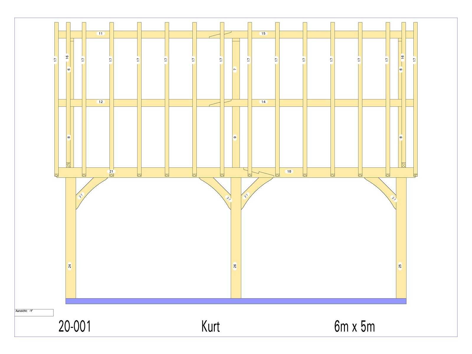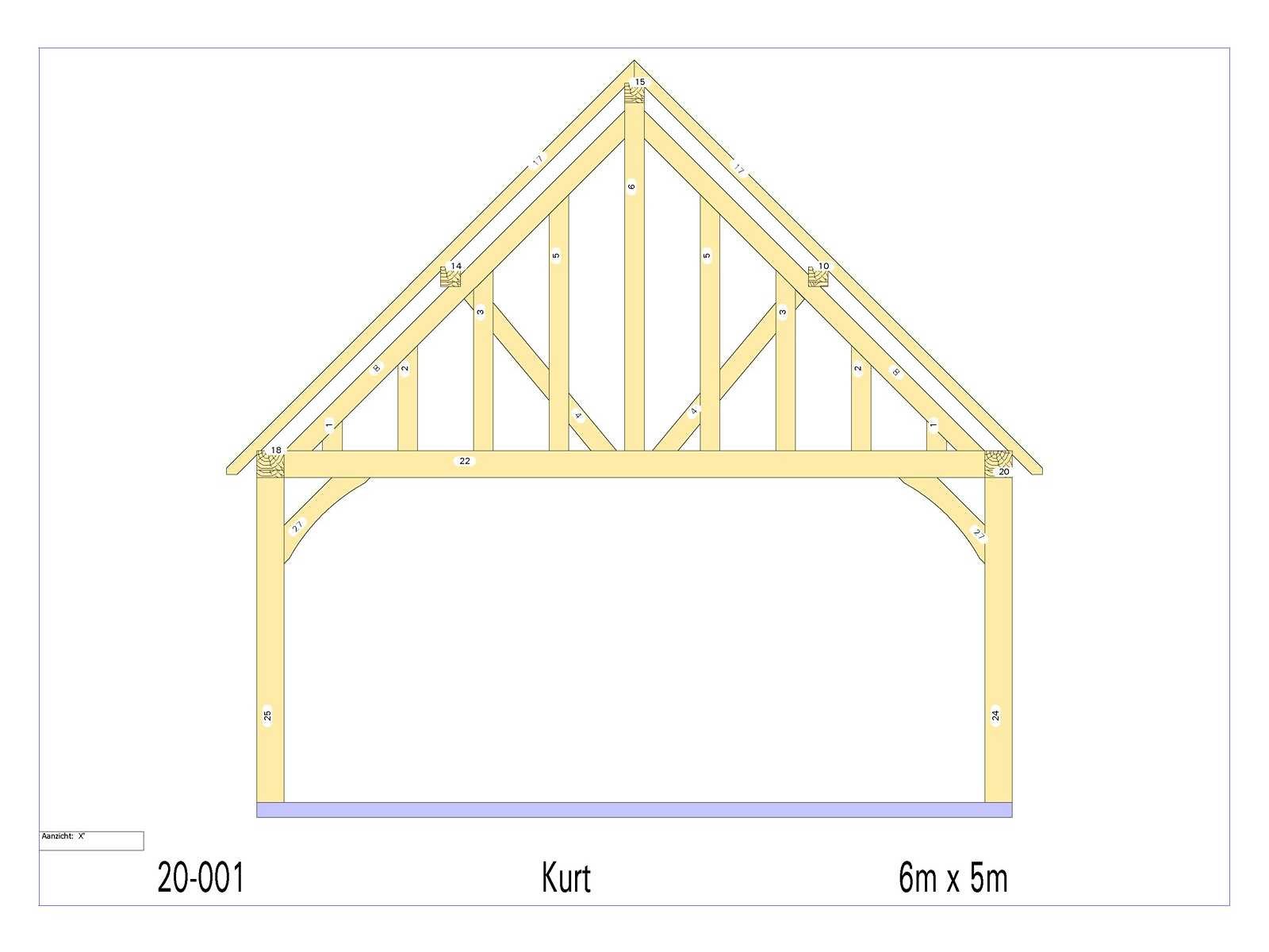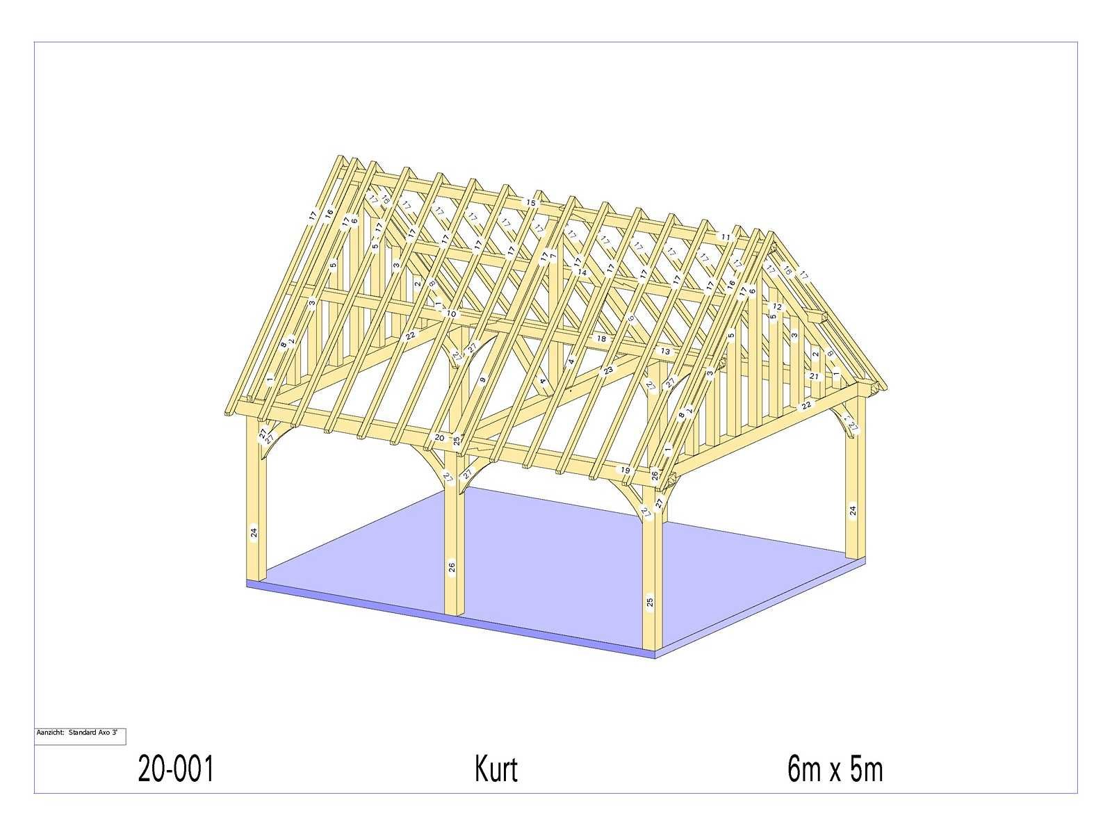 <li>Totaal afmeting pakket (transport): circa 4750x950x1000 mm </li><li>Kopmaat liggers: 180x60 mm, 130x130 mm, 80x70 mm </li><li>Aantal draagsteunen: 6 stuks </li><li>Kopmaat staanders: 180x180 mm </li><li>Referentie: Kurt </li><li>Handleiding opbouw: aanwezig met QR code </li><li>Staat: ongebruikt, bouwpakket</li> Nee Model: 20-001 Gewicht: 2300kg Lengte: 600cm Breedte: 500cm Materiaal: Europese eiken