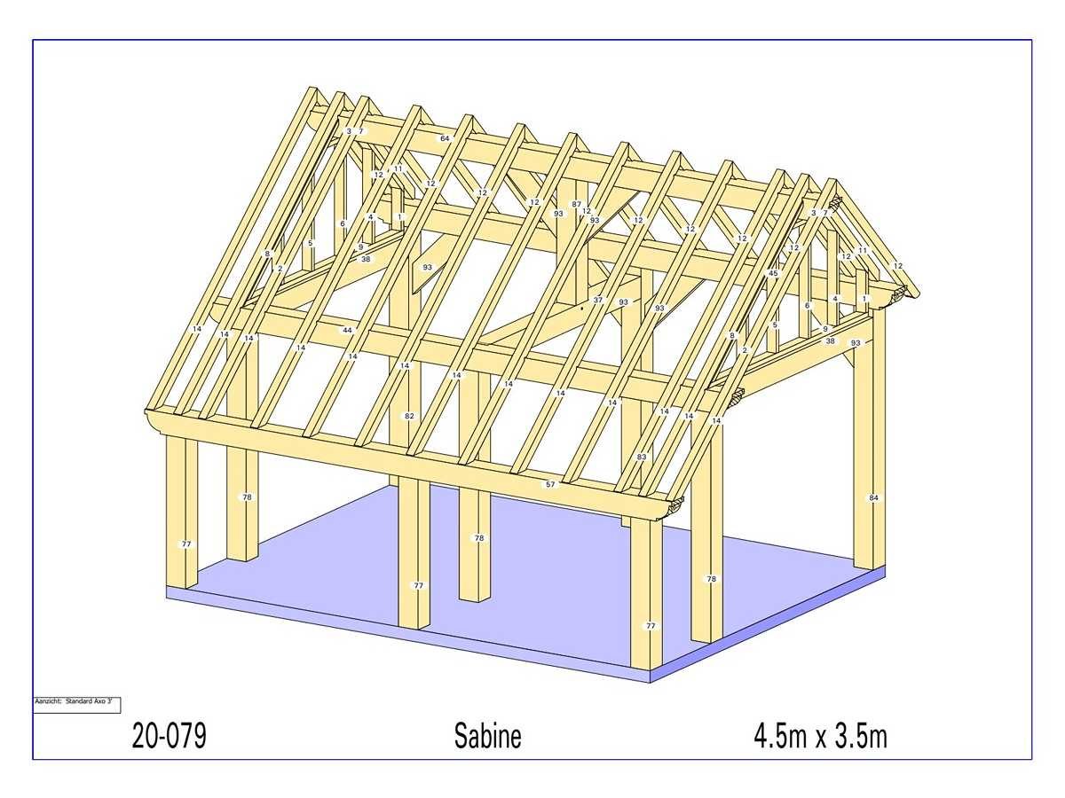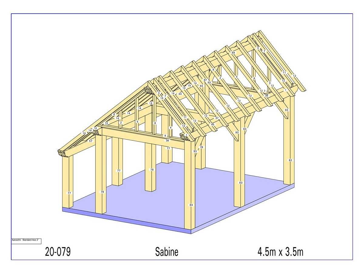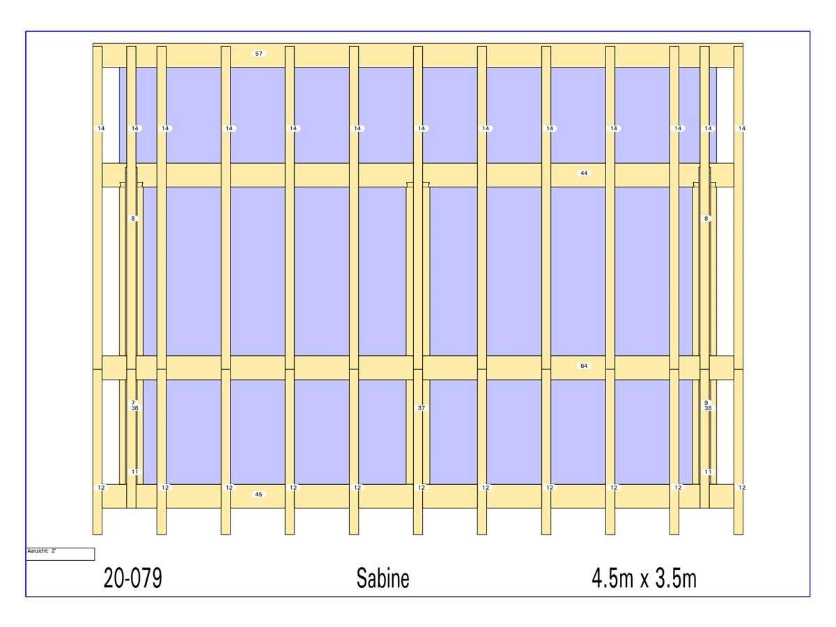 <li>Totaal afmeting pakket (transport): circa 4500x1000x750 mm </li><li>Kopmaat liggers: 180x60 mm en 80x70 mm </li><li>Aantal draagsteunen: 9 stuks </li><li>Kopmaat staanders: 180x180 mm </li><li>Referentie: Sabine </li><li>Handleiding opbouw: aanwezig met QR code </li><li>Staat: ongebruikt, bouwpakket</li> Nee Model: 20-079 Gewicht: 800kg Lengte: 450cm Breedte: 350cm Hoogte: 346cm Materiaal: Douglas