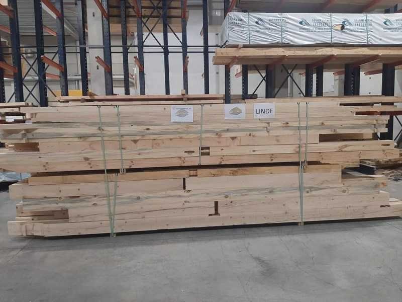 <li>Totaal afmeting pakket: 2 x circa 6400x1200x1000 mm </li><li>Kopmaat liggers: 230x180 mm, 130x130 mm, 180x60 mm, 89x38 mm, 80x70 mm </li><li>Aantal draagsteunen: 23 stuks </li><li>Kopmaat staanders 180x180 mm </li><li>Referentie: Linde </li><li>Handleiding opbouw: aanwezig met QR code </li><li>Staat: ongebruikt, bouwpakket</li> Nee Model: 20-067 Gewicht: 4000kg Lengte: 1000cm Breedte: 900cm Hoogte: 550cm Materiaal: Fijnspar