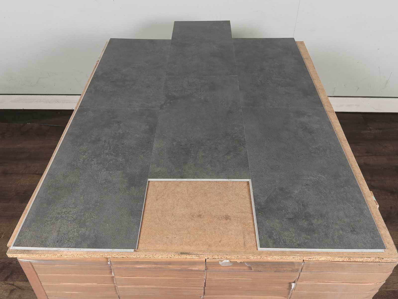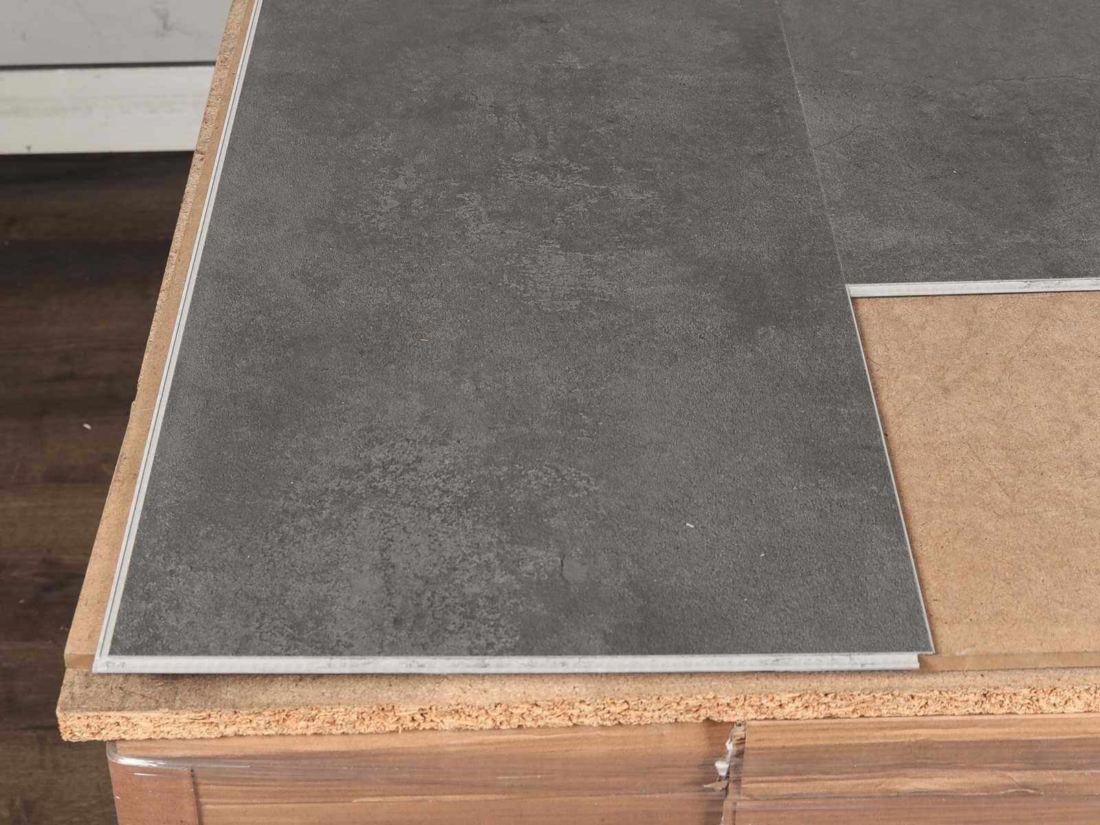 Kwaliteits pvc click tegel vloer, voorzien van XPS onderlaag, vloer bestaat uit 4 mm plus 1 mm XPS onderlaag, voorzien van solid polymeer core (SPC), stabiel vloer vereist geen aclimatisatie voor installatie, akoestisch dempend, ideaal voor gebruik in combinatie met vloerverwarming, krasbestendig en slijt vast, huisdiervriendelijk, onderhouds arm, water bestendig, vorstbestendig, anti slip, 65 pakken a 1,674 m2 No Merk: Airial flooring Product type: PVC Oppervlakte: 108m² Geschikt voor vloerverwarming: Ja V-groef: Ja Afwerking: Voelbaar structuur, XPS onderlaag, anti slip, met v-groef Aantal m² per verpakking: 1.674m² Kleur: Beton dark T04 Gewicht: 1105kg Lengte: 610mm Breedte: 305mm Materiaal: PVC
