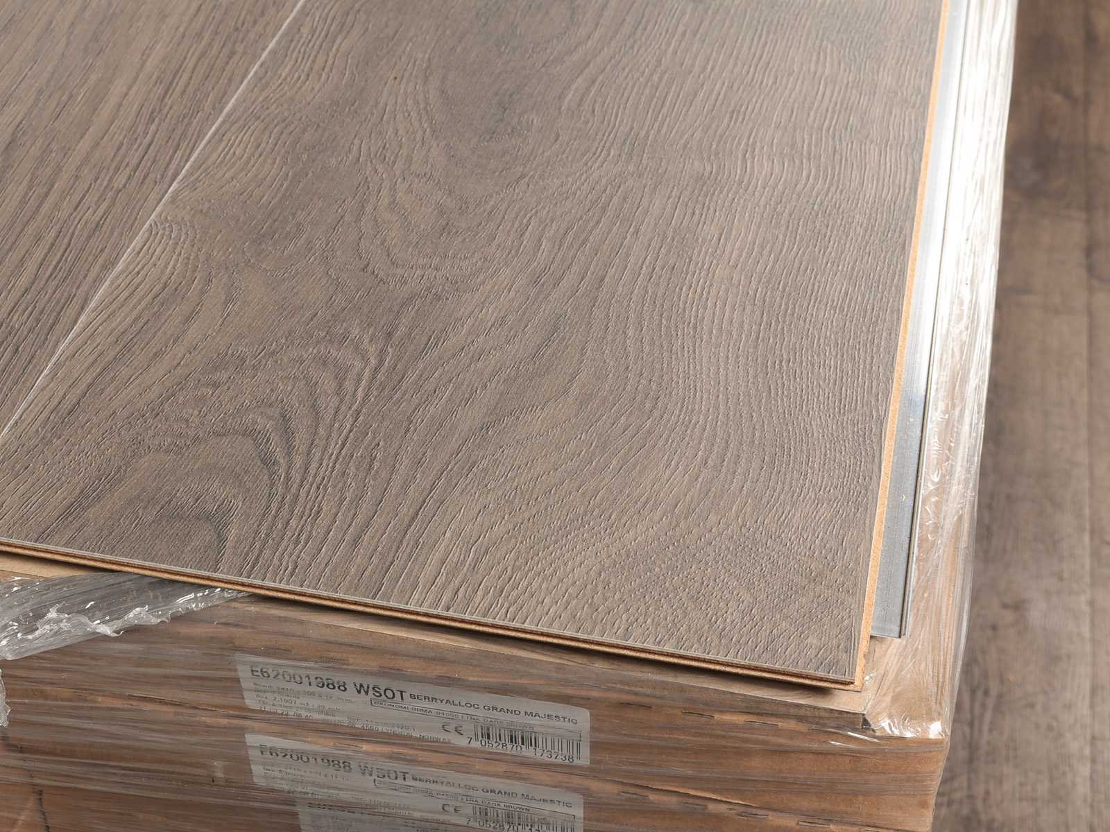 Gemakkelijk te leggen wegens clicksysteem, XL laminaatvloer, Berry Alloc Grand majestic product, geschikt voor alle soorten vloer en koelverwarmingen, dikte 12,3 mm, 41 pakken a 2,190 m2 No Merk: Berry Alloc Product type: Laminaat XL Oppervlakte: 89m² Geschikt voor vloerverwarming: Ja V-groef: Ja Afwerking: Voelbaar structuut, anti slip, met v-groef Aantal m² per verpakking: 2.19m² Kleur: Grand majestic 1988 Gewicht: 820kg Lengte: 2410mm Breedte: 303mm Materiaal: HDF/MDF