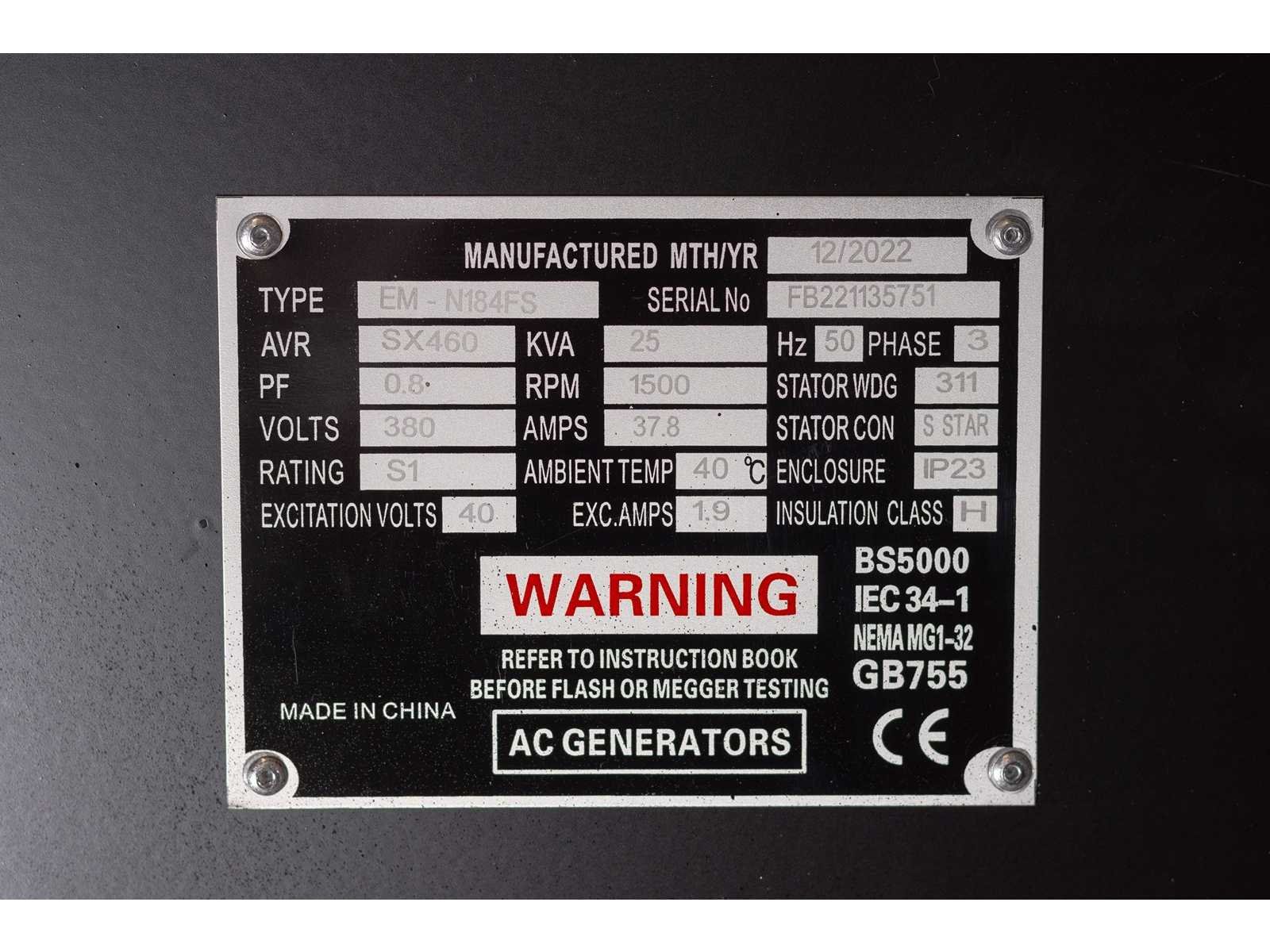 Ongebruikt, frequentie 50hz , stand-by power , 72 liter tank , 3-fase; 4124 No Merk: Daewoo Type: Dagfs-25 Bouwjaar: 2022 Capaciteit.: 25kVA Aansluiting: 380V Motor merk: Ricardo K4100D Motorcapaciteit: 20kW Generator merk: Ac Generator Generator type: Vg-184-g Generator capaciteit: 33A Afgelezen urenstand: 0 Handboek aanwezig: true Machinegewicht: 710kg Totale afmeting L: 2000mm Totale afmeting Breedte: 850mm Totale afmeting Hoogte: 1150mm
