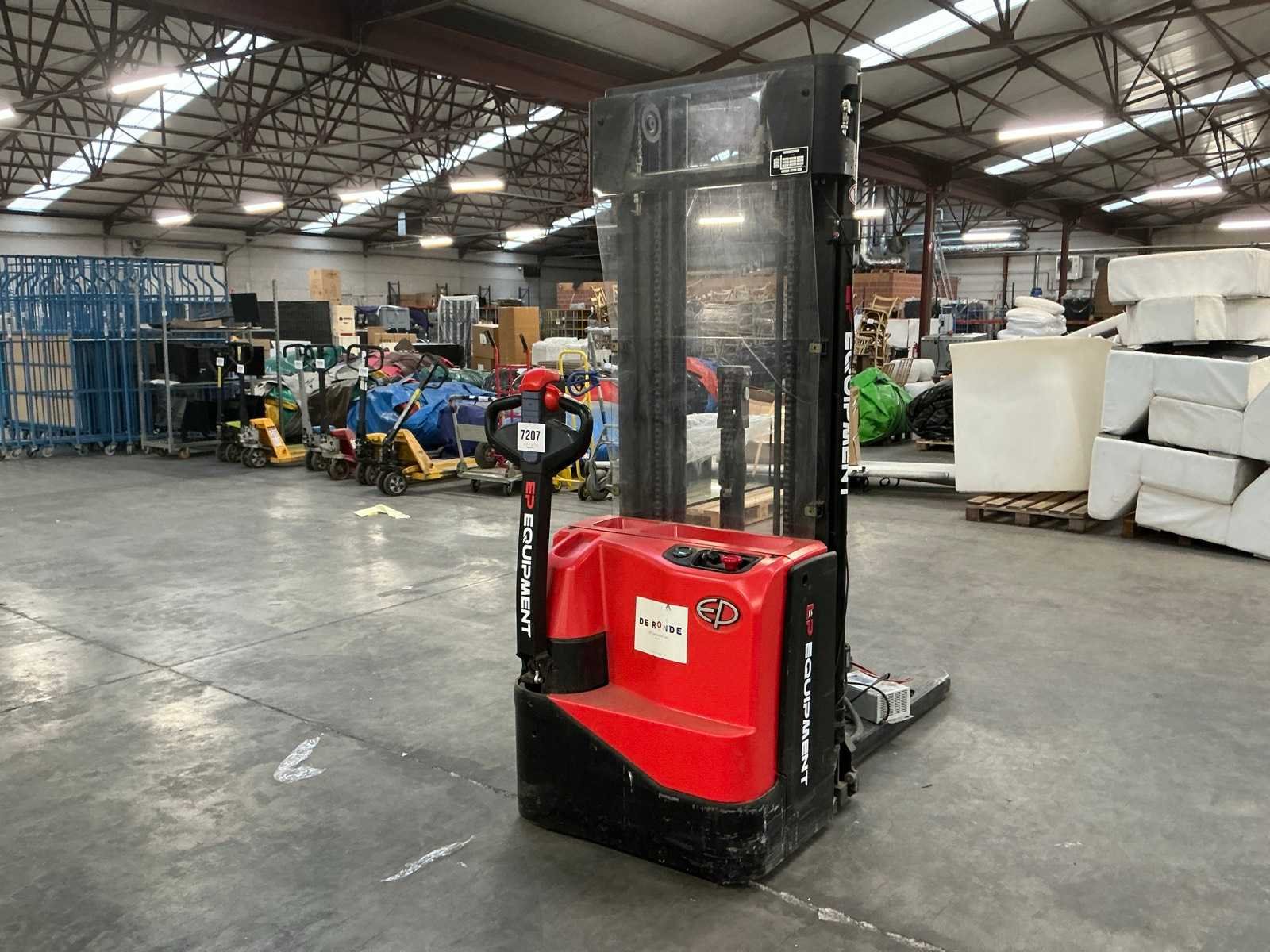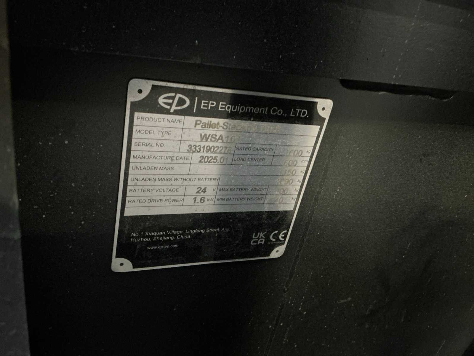 Nee Merk: EP EQUIPEMENT Type: WSA161 Bouwjaar: 2025 Serienummer: 3331902278 Hefvermogen: 1600kg Hefhoogte: 4800mm Lepellengte: 1150mm Afgelezen urenstand: 92 Eigen gewicht: 1150kg Minimale doorrijhoogte: 2140mm Meerij stapelaar: true Accu lader: true
