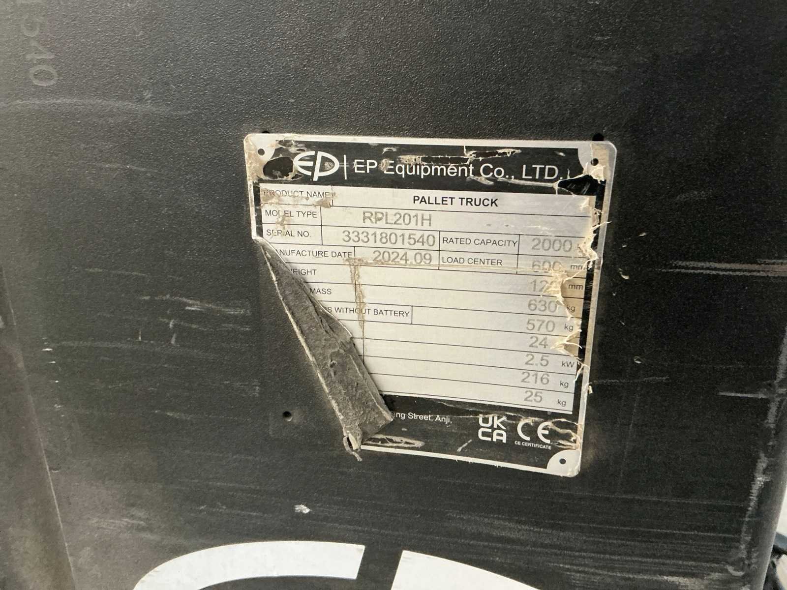 Voorzien van acculader. Lepellengte: 115cm Urenstand: 478.1h. Hefhoogte: 12cm. Nee Merk: EP EQUIPMENT Type: RPL201H Bouwjaar: 2024 Laadvermogen: 2000kg Eigen gewicht: 630kg