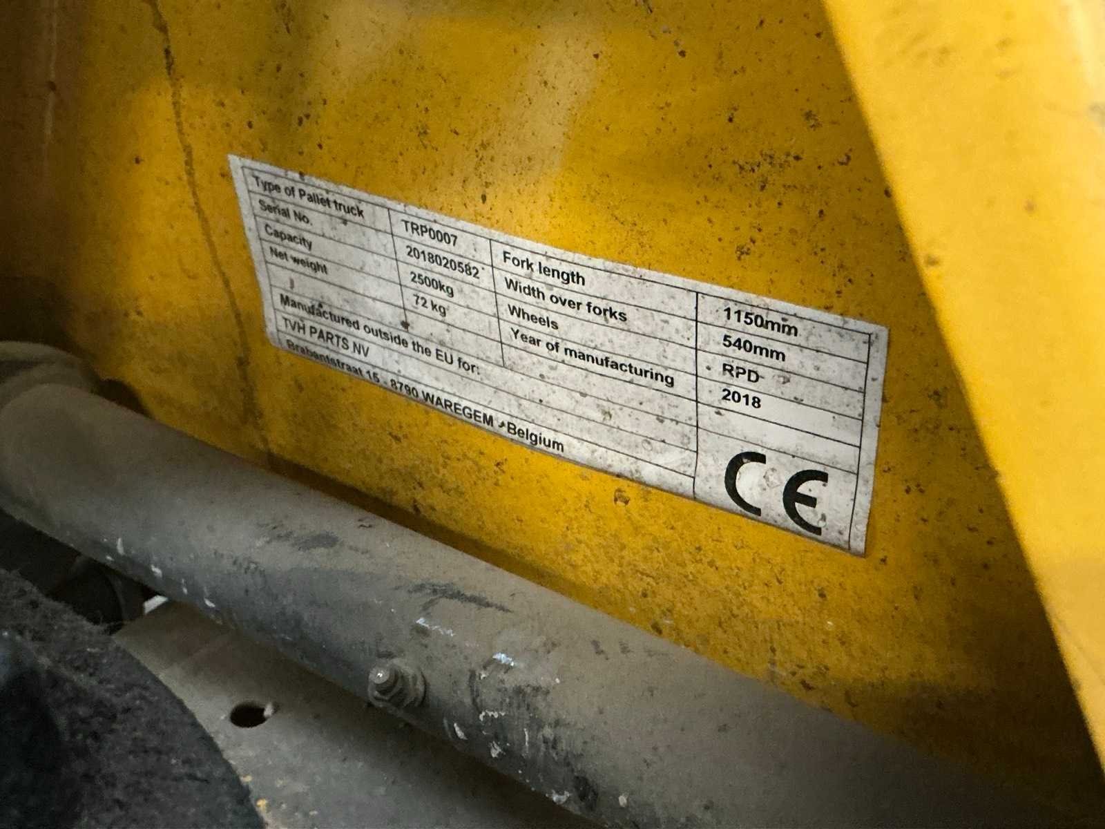 Nee Merk: Total Source Type: TRP0007 Bouwjaar: 2018 Hefvermogen: 2500kg Lepellengte: 1150mm Eigen gewicht: 72kg