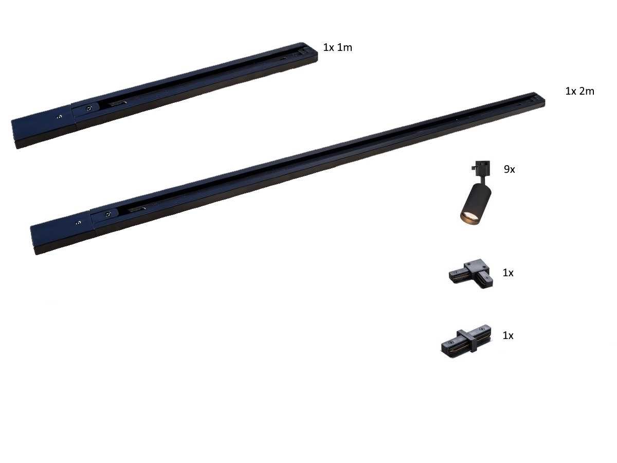 Afdichting IP20, 1 stuk 100cm en 1 stuk 200cm rail, materiaal aluminium, bevestiging inclusief, 220-240V, 1 stuk door verbinder en 1 stuk L verbinding inclusief, product kleur zand zwart, 9 stuk railspots GU10 armatuur afm. Ø 55 x 102mm draaibaar 350° en kantelbaar 90° materiaal aluminum kop en kunstof basis, bulb niet inbegrepen, de rail kan eenvoudig op de gewenste lengte worden gezaagd, geschikt voor binnen, SKU 825 SKU 827 SKU 905 SKU 907 SKU 1121 No Merk: LAMPINNO Product type: Binnen Verstelbaar: true Fitting: GU10 Kleur: Zand Zwart Lengte: 300cm Materiaal: Aluminium en kunstof