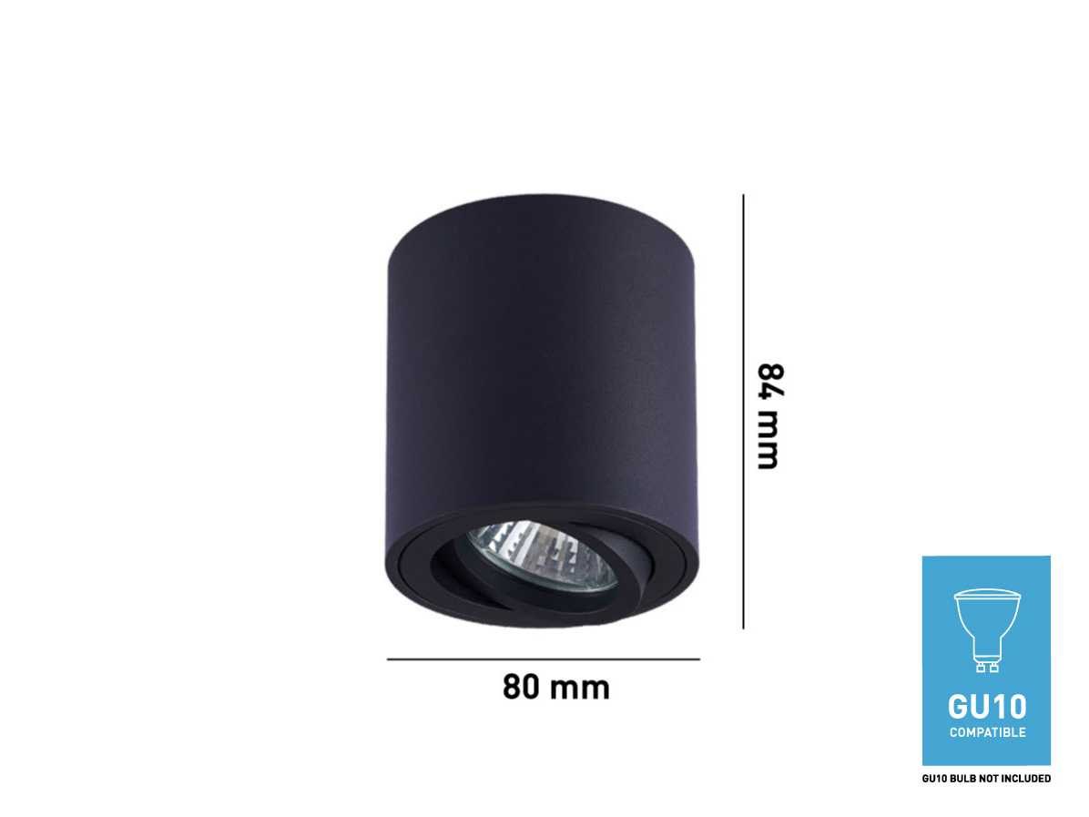 Afdichting IP20, product kleur zand zwart, afm. Ø 80 x 84mm, bevestiging inclusief, materiaal aluminium, fitting GU10, bulb niet inbegrepen, geschikt voor binnen, een bulb invoer, voltage 220-240V, SKU 00835 No Merk: LAMPINNO Product type: Binnen Verstelbaar: true Fitting: GU10 Kleur: Zwart Lengte: 8.4cm Breedte: 8.0cm Materiaal: Aluminium