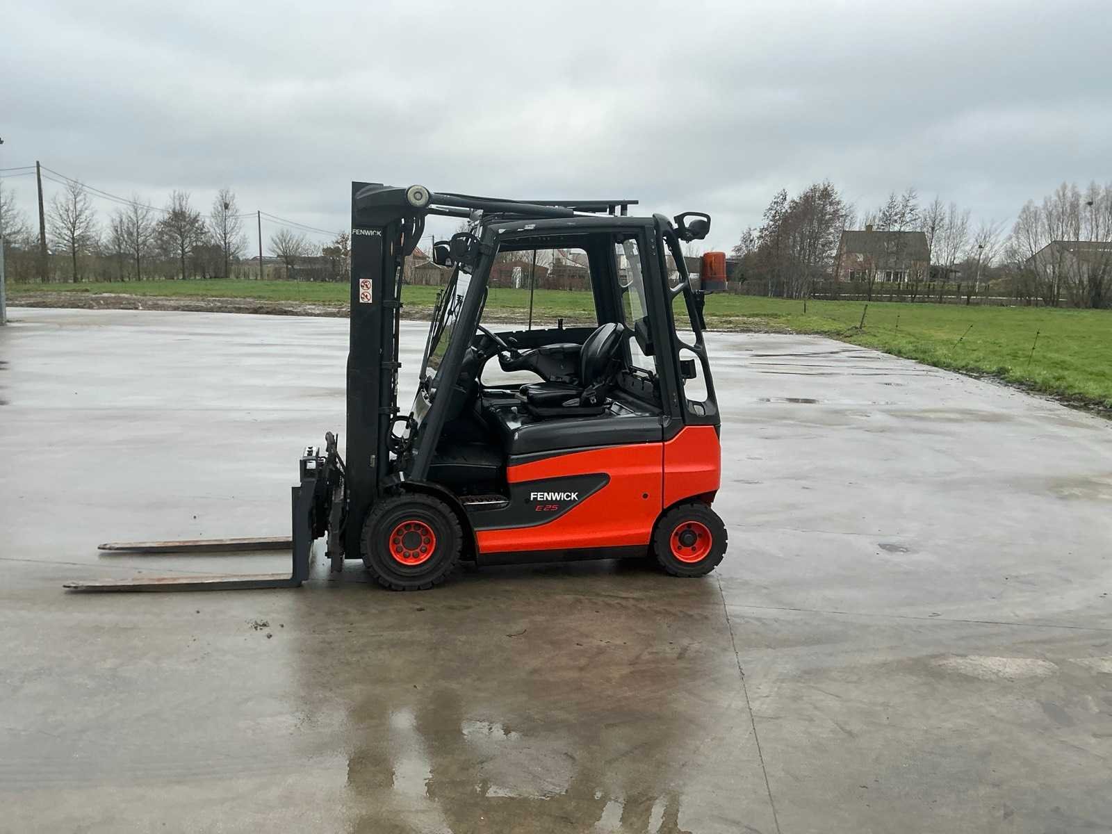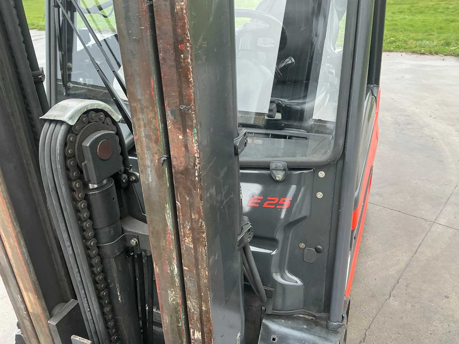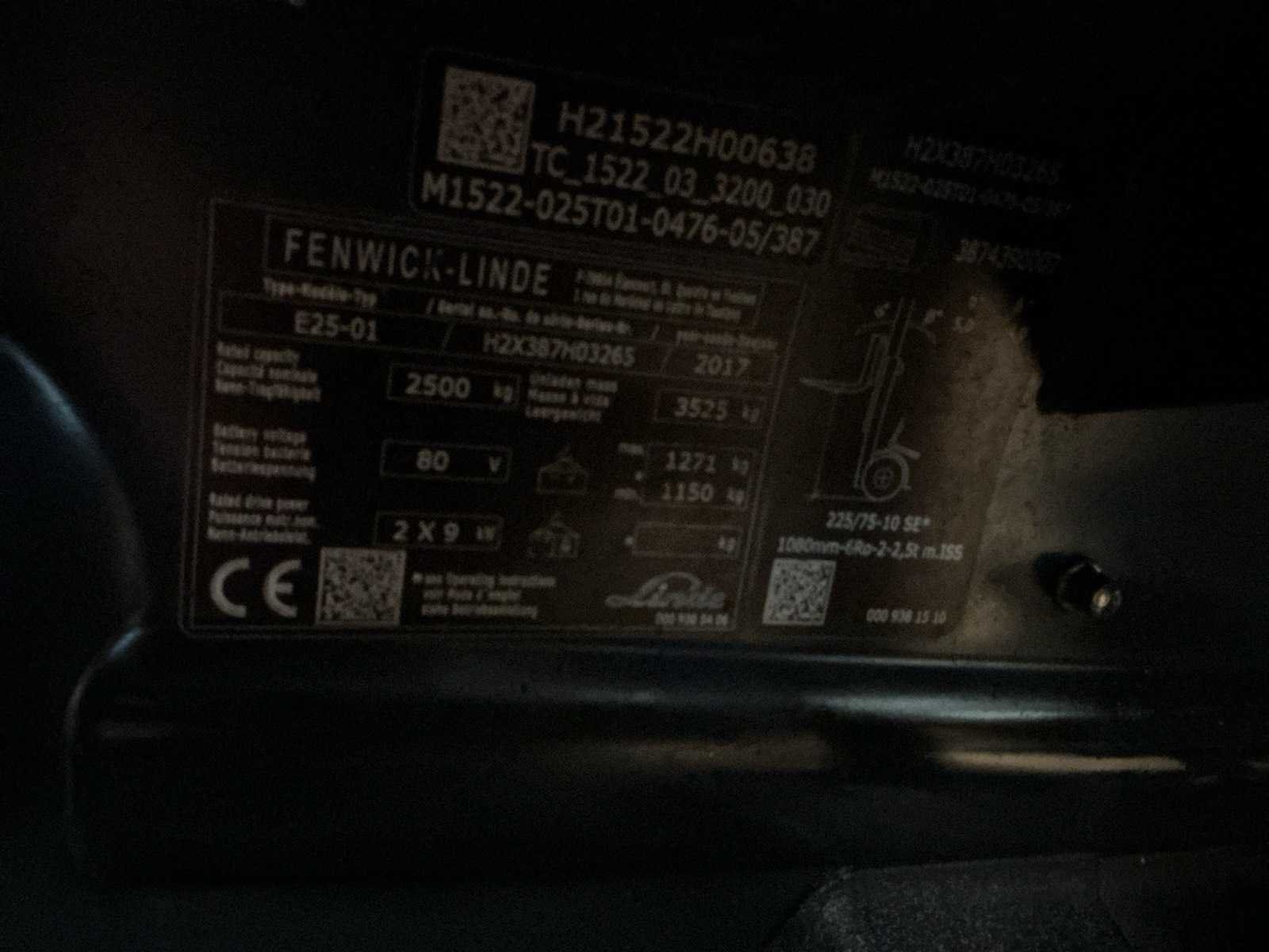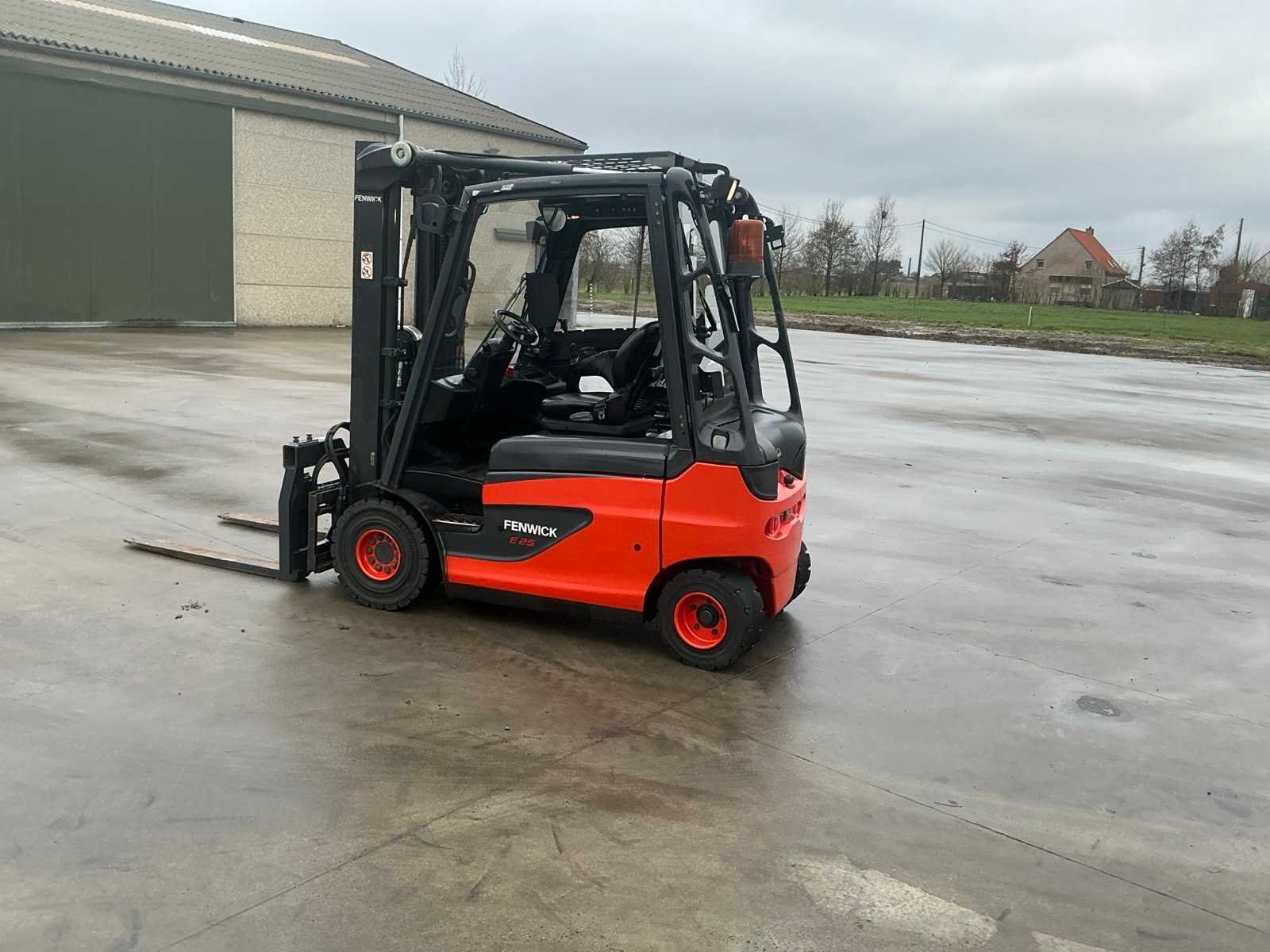Accu met automatische vulling , zwaailicht , werklichten voor en achter , WIFO rotator , Recent nieuwe banden , 3de en 4de valve tot op vorkenbord , half gesloten verwarmde cabine Nee Merk: Linde Type: E25-01 Bouwjaar: 2017 Serienummer: H2X387H03265 Brandstof: Elektrisch Mast: Triple Soort band: Volrubber banden Aantal wielen: 4 Afgelezen urenstand: 4120 Side-shift: true Roterend vorkenbord: true Triple mast: true Eigen gewicht: 4650kg Hefvermogen: 2500kg Lepellengte: 1200mm Min. hefhoogte: 0mm Hefhoogte: 4760mm Vol rubber banden: true Totale afmeting L: 2500mm Totale afmeting Breedte: 1150mm Totale afmeting Hoogte: 2150mm Leveringsvoorwaarden: Gratis op vrachtwagen