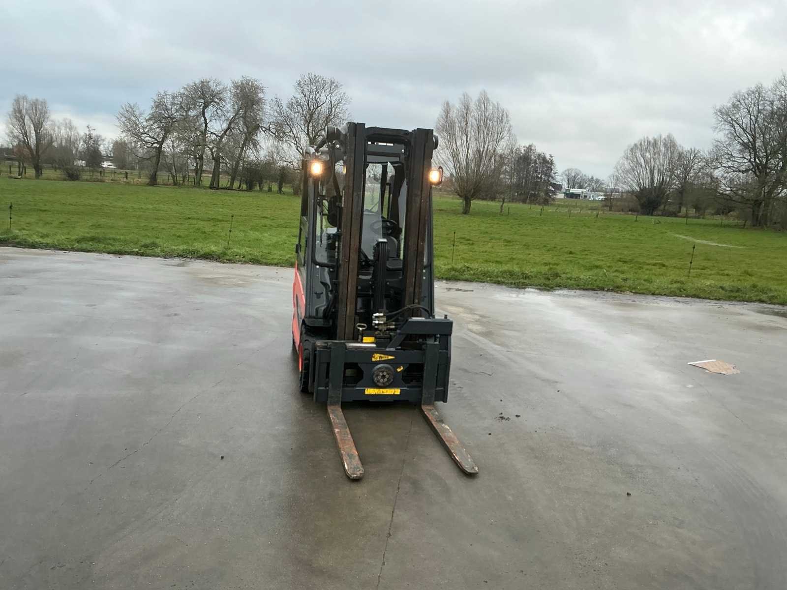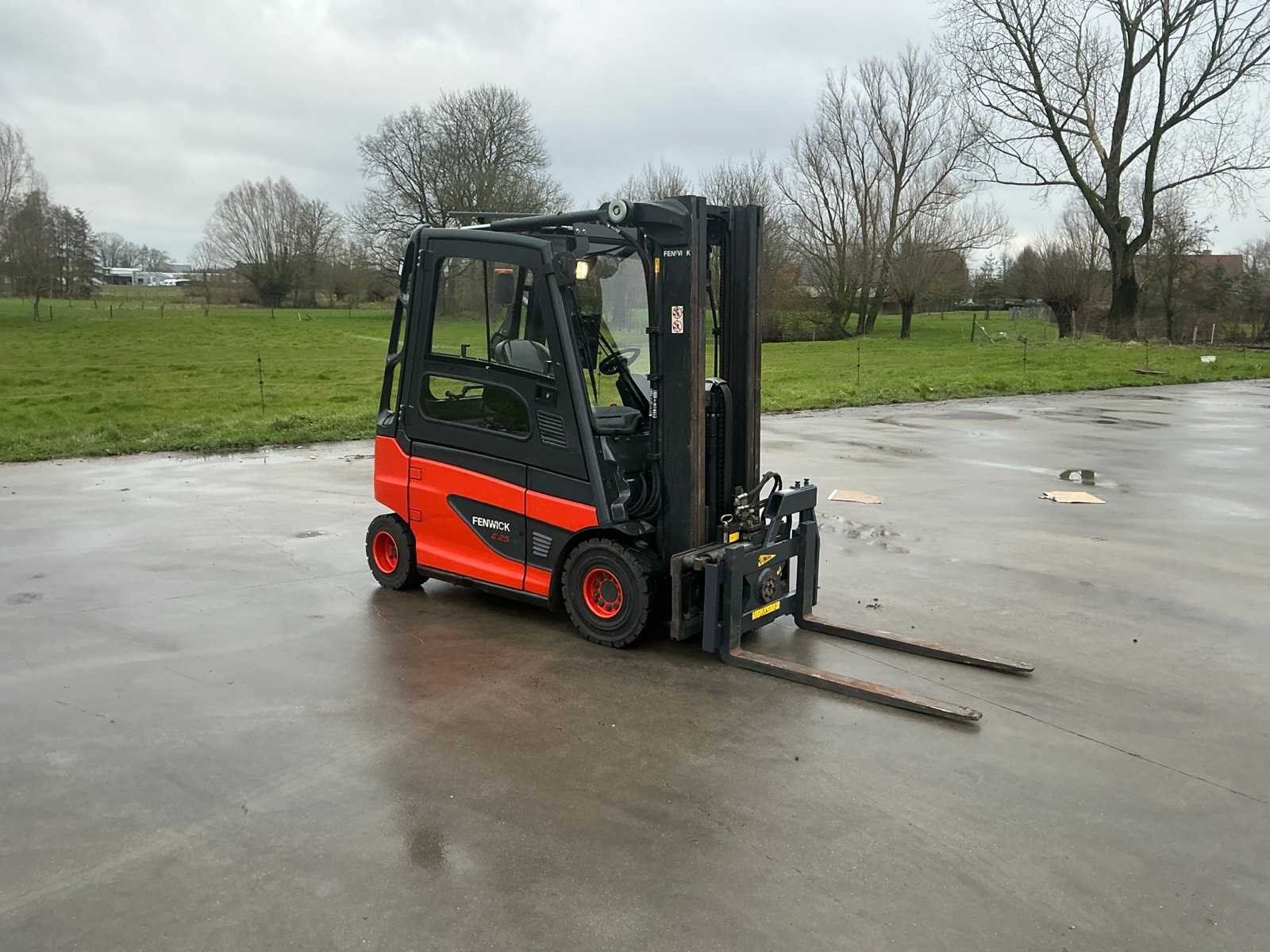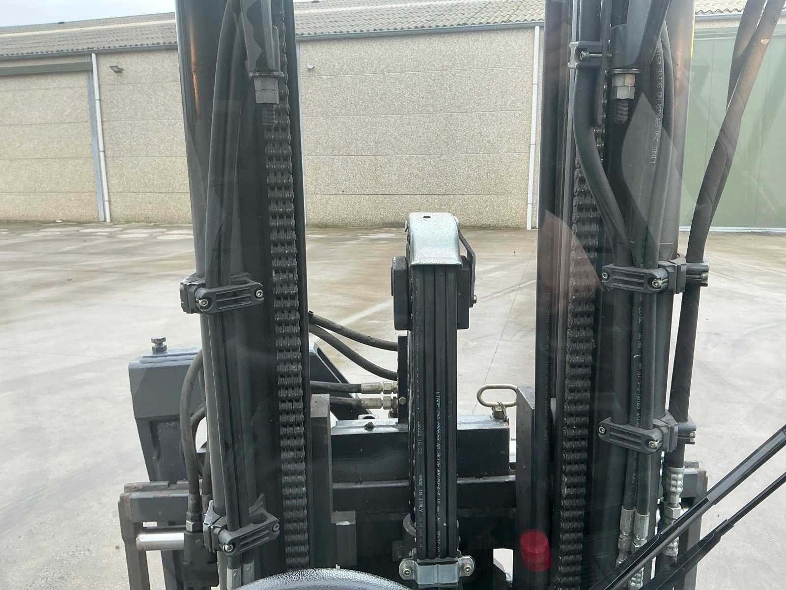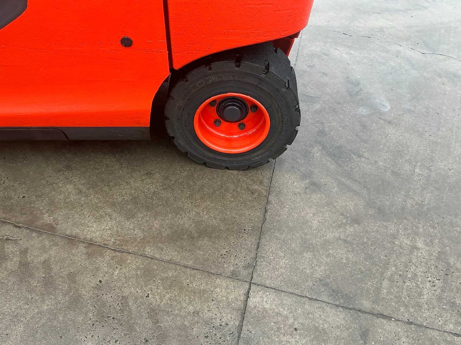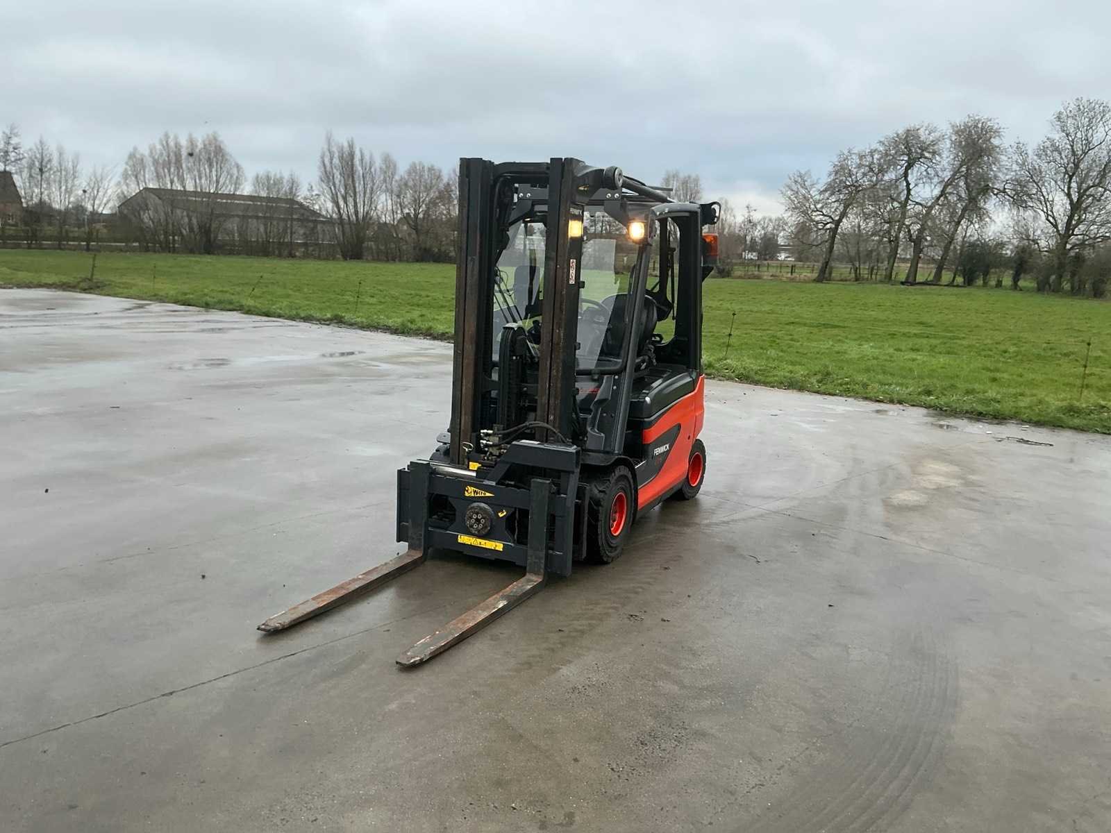 Accu met automatische vulling , zwaailicht , werklichten voor en achter , WIFO rotator , Recent nieuwe banden , 3de en 4de valve tot op vorkenbord , half gesloten verwarmde cabine Nee Merk: Linde Type: E25-01 Bouwjaar: 2017 Serienummer: H2X387H03265 Brandstof: Elektrisch Mast: Triple Soort band: Volrubber banden Aantal wielen: 4 Afgelezen urenstand: 4120 Side-shift: true Roterend vorkenbord: true Triple mast: true Eigen gewicht: 4650kg Hefvermogen: 2500kg Lepellengte: 1200mm Min. hefhoogte: 0mm Hefhoogte: 4760mm Vol rubber banden: true Totale afmeting L: 2500mm Totale afmeting Breedte: 1150mm Totale afmeting Hoogte: 2150mm Leveringsvoorwaarden: Gratis op vrachtwagen