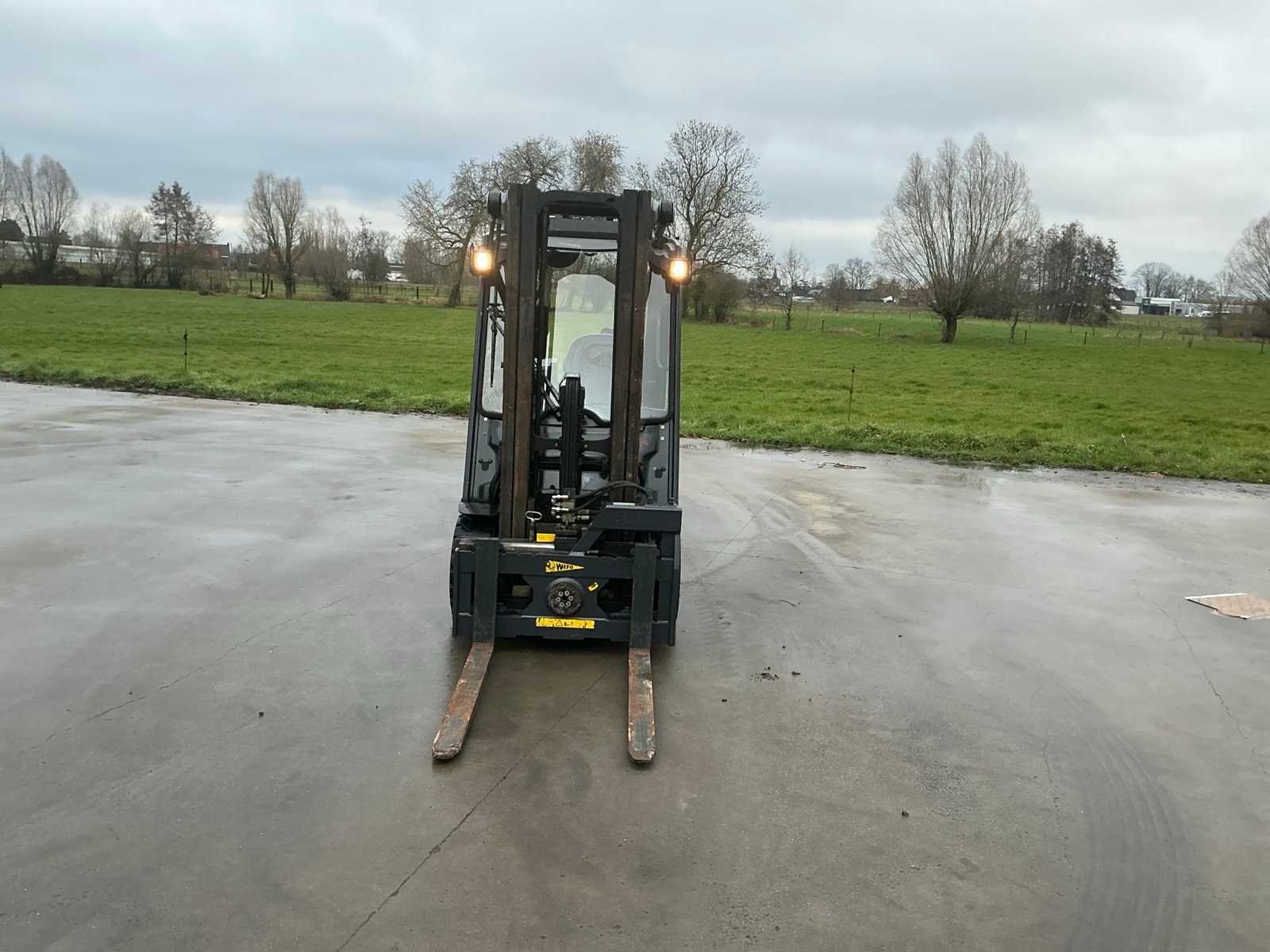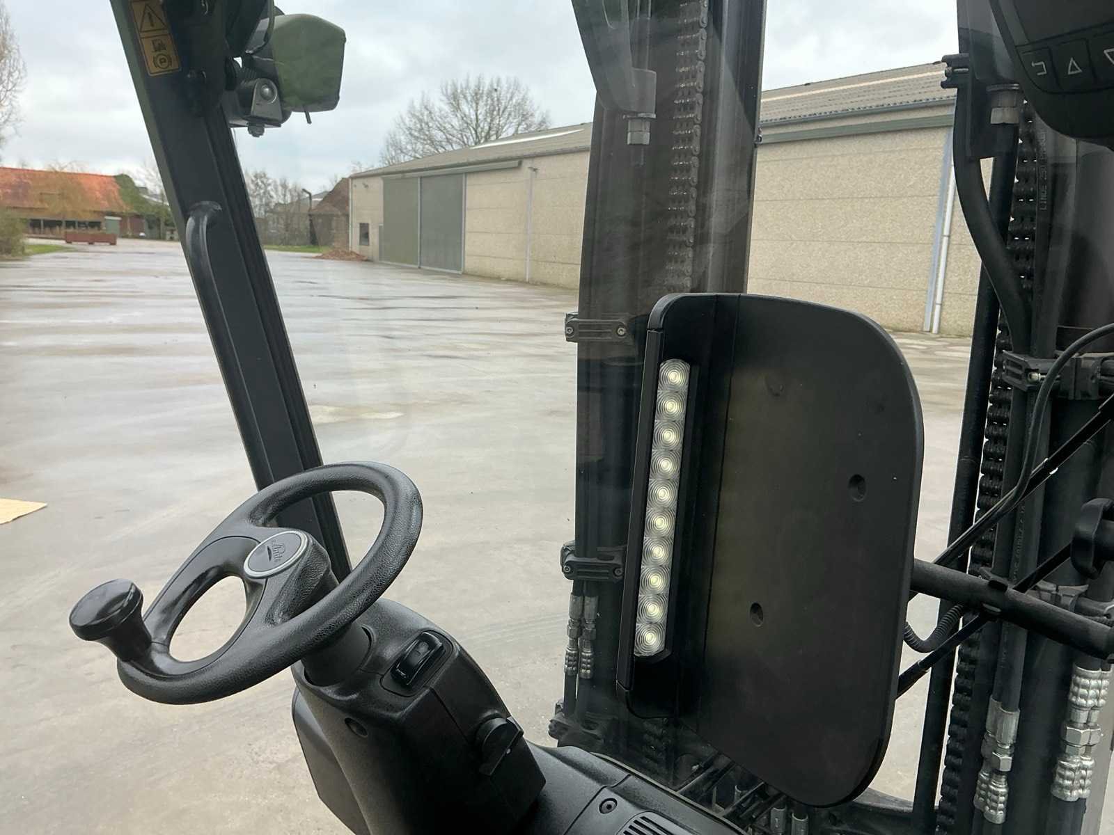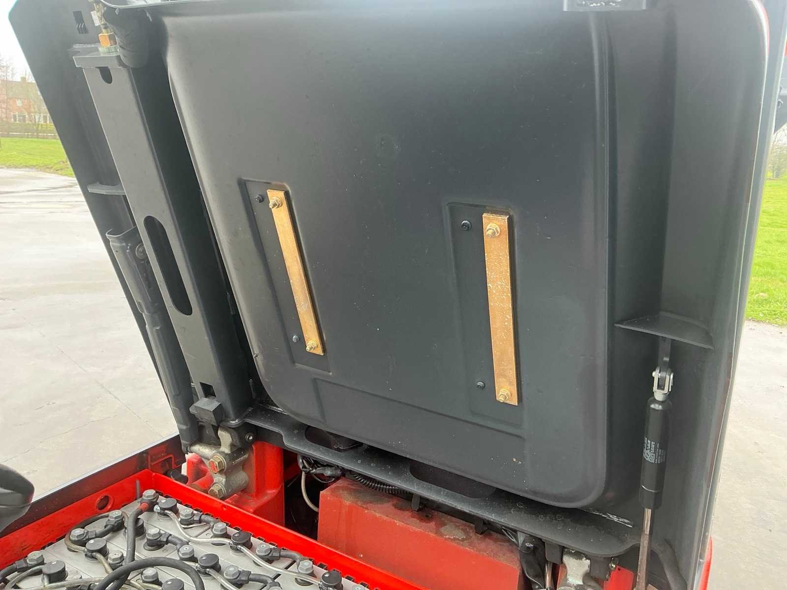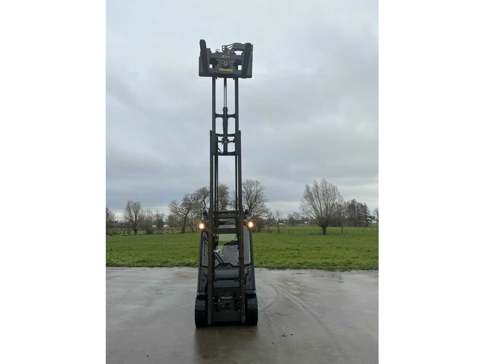 Accu met automatische vulling , zwaailicht , werklichten voor en achter , WIFO rotator , Recent nieuwe banden , 3de en 4de valve tot op vorkenbord , half gesloten verwarmde cabine Nee Merk: Linde Type: E25-01 Bouwjaar: 2017 Serienummer: H2X387H03265 Brandstof: Elektrisch Mast: Triple Soort band: Volrubber banden Aantal wielen: 4 Afgelezen urenstand: 4120 Side-shift: true Roterend vorkenbord: true Triple mast: true Eigen gewicht: 4650kg Hefvermogen: 2500kg Lepellengte: 1200mm Min. hefhoogte: 0mm Hefhoogte: 4760mm Vol rubber banden: true Totale afmeting L: 2500mm Totale afmeting Breedte: 1150mm Totale afmeting Hoogte: 2150mm Leveringsvoorwaarden: Gratis op vrachtwagen